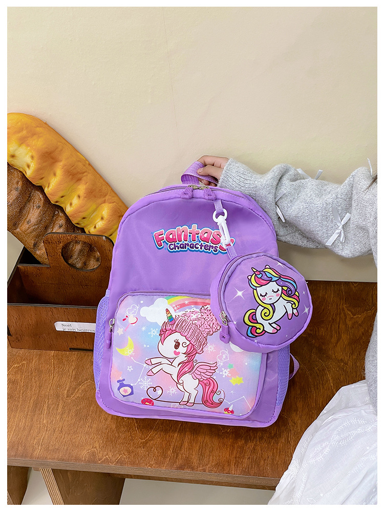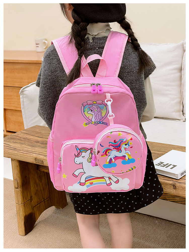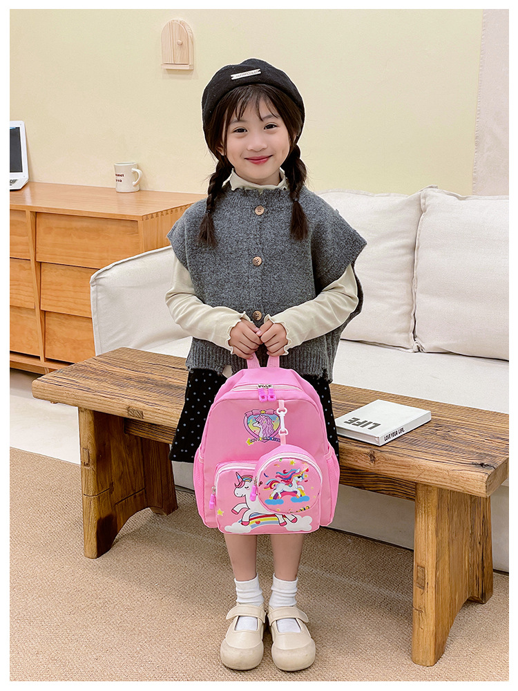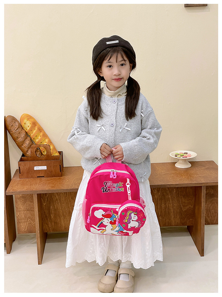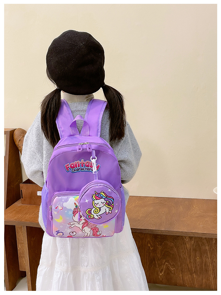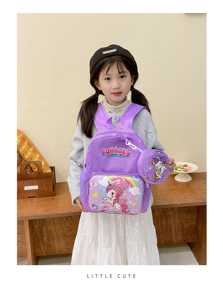 크로스 국경 어린이 배낭 2024 새로운 유치원 소녀 유니콘 배낭 작은 소녀 귀여운 만화 학교 가방