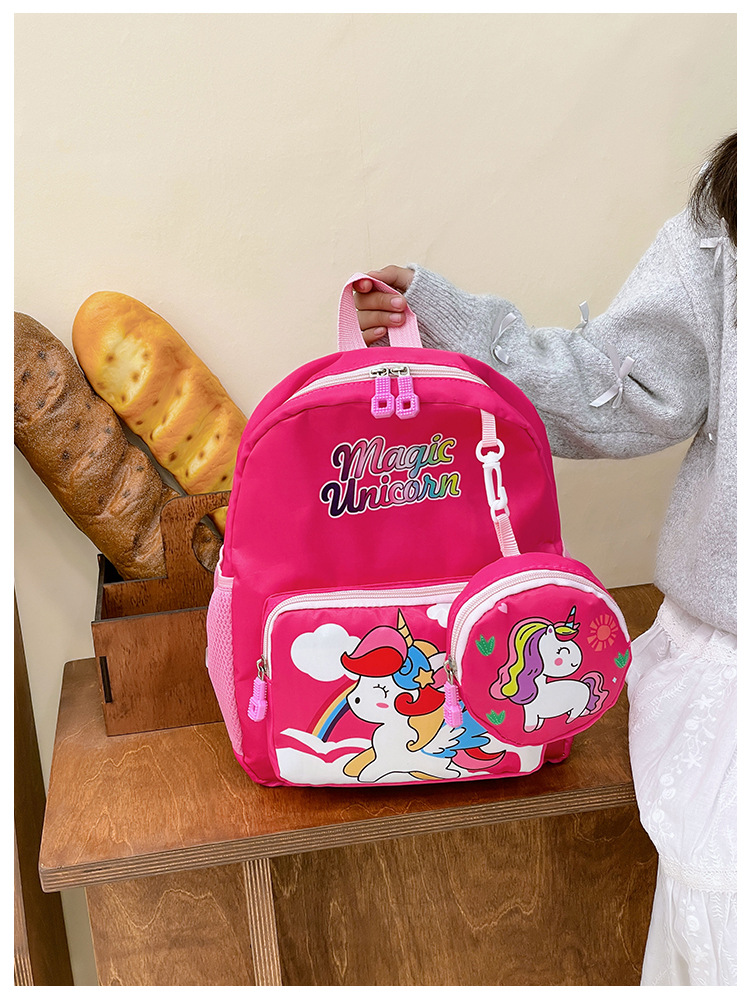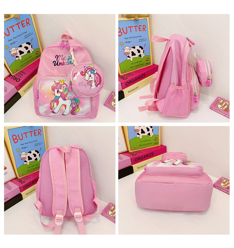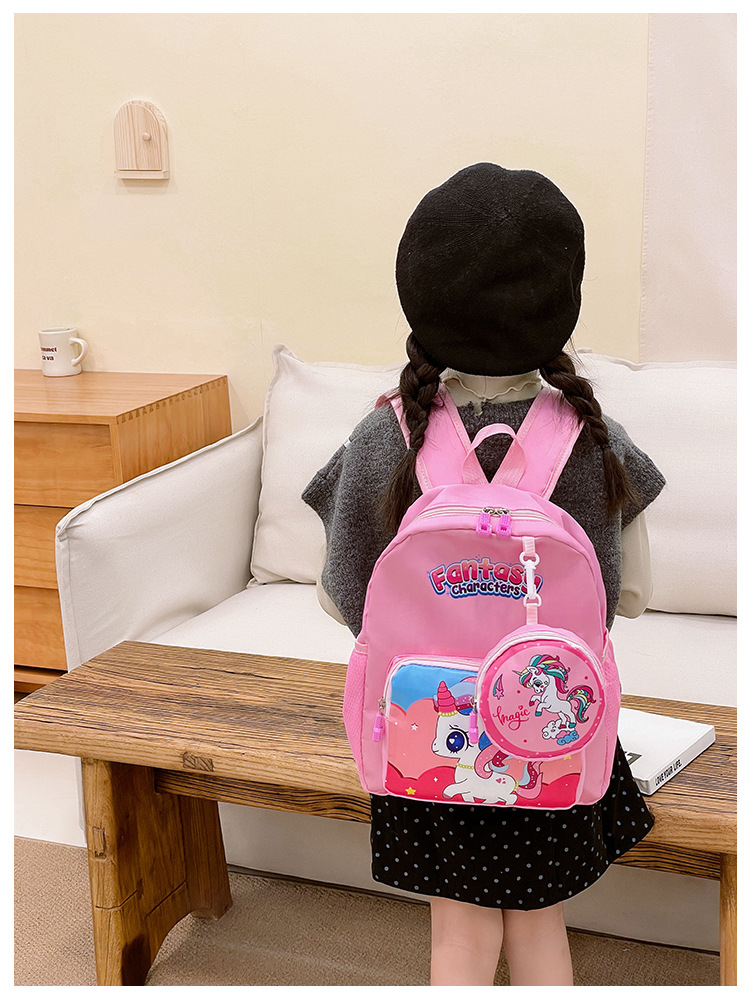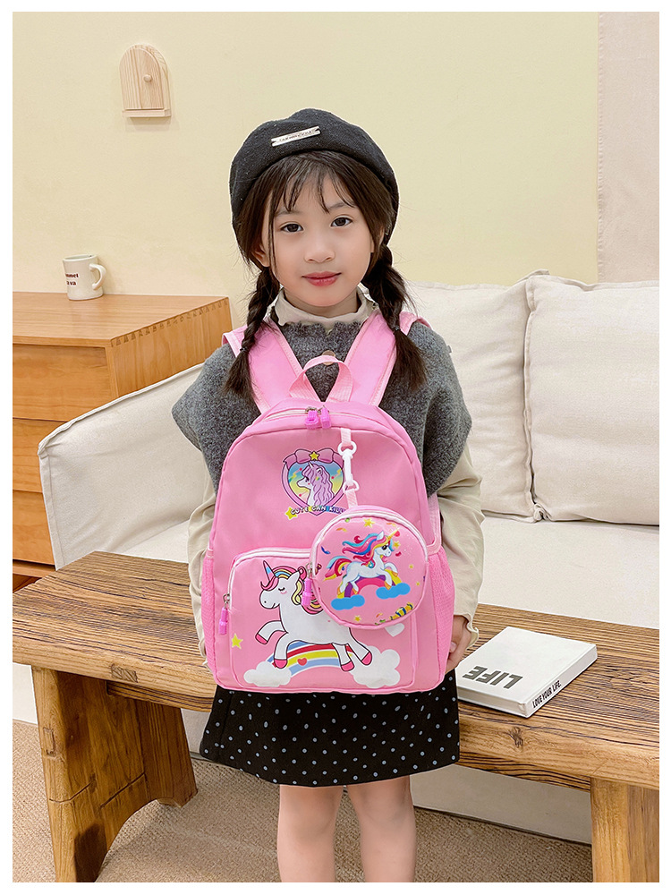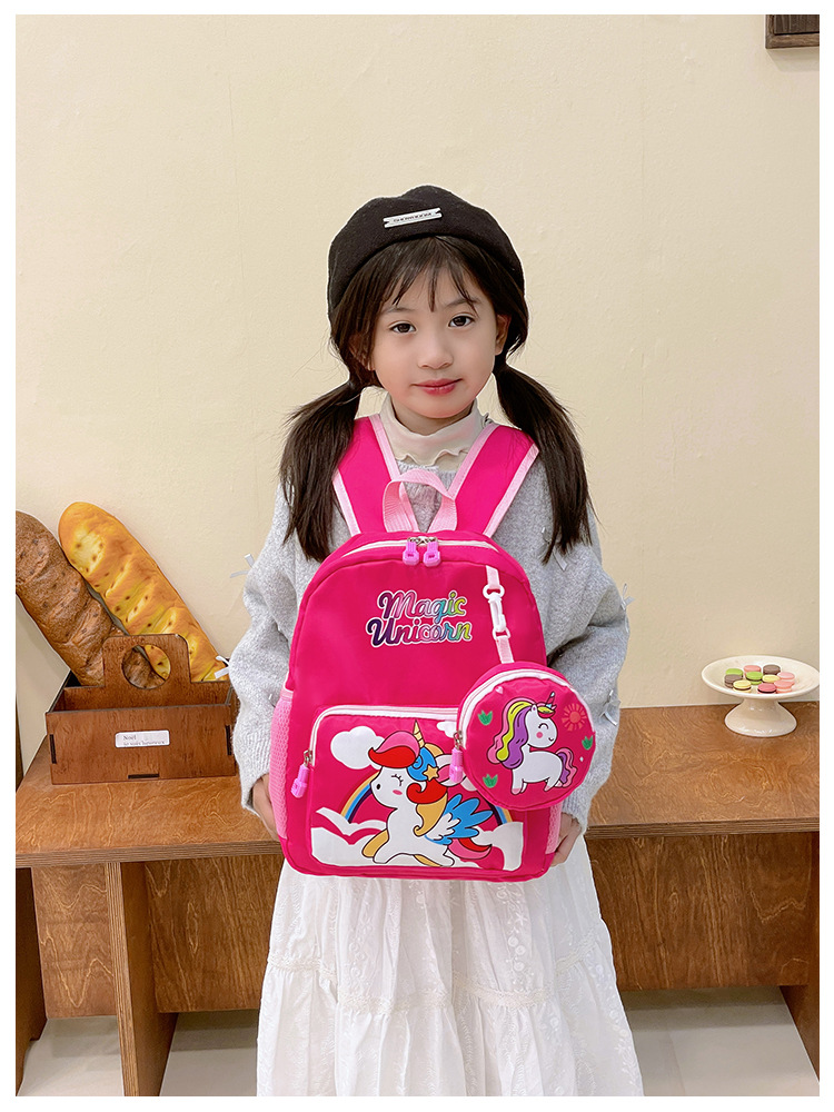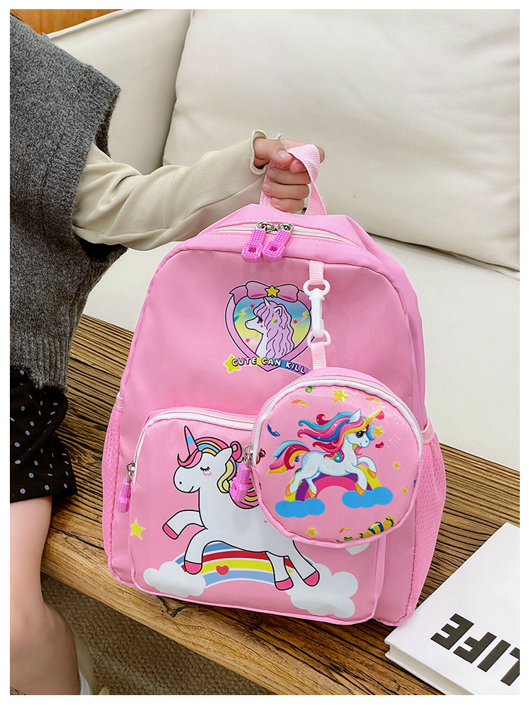 크로스 국경 어린이 배낭 2024 새로운 유치원 소녀 유니콘 배낭 작은 소녀 귀여운 만화 학교 가방