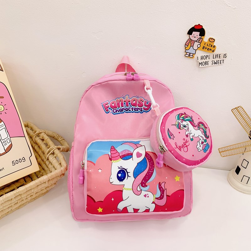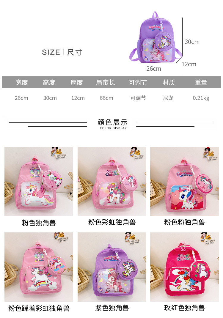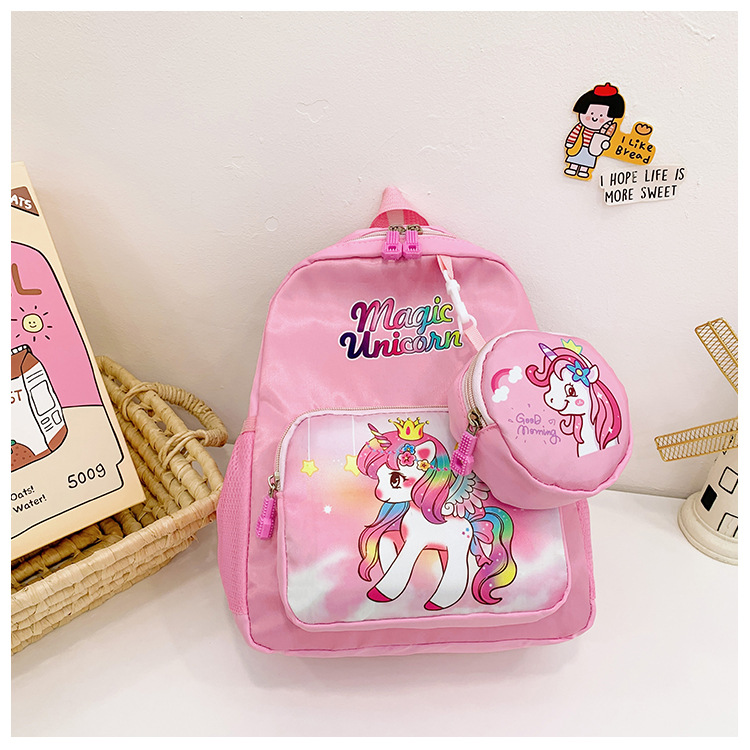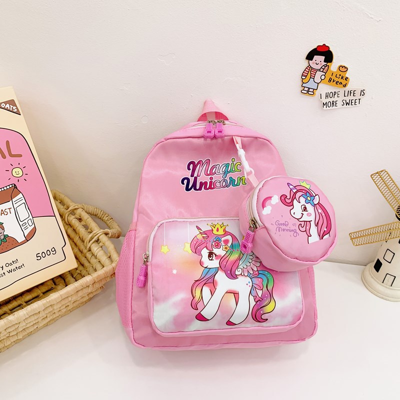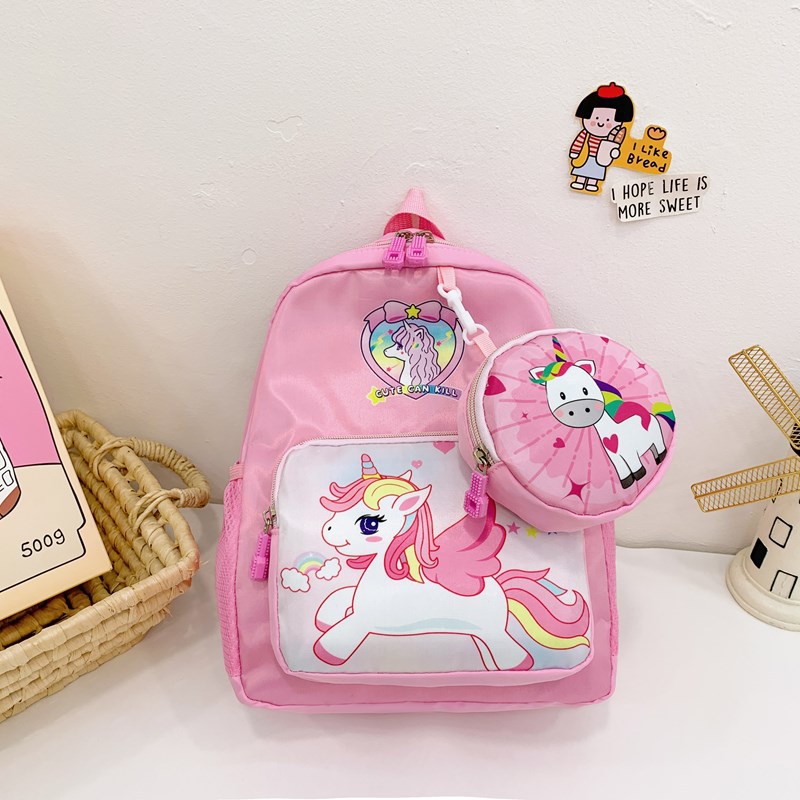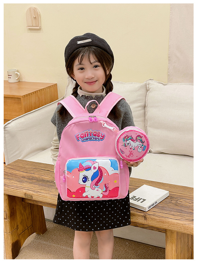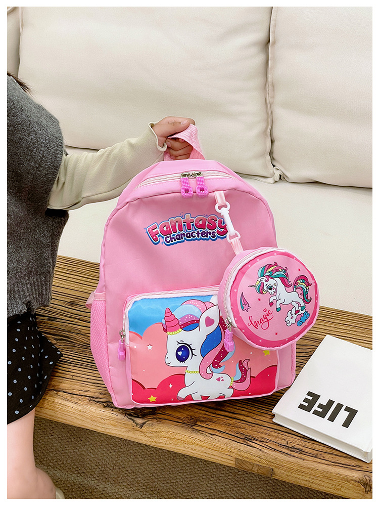 크로스 국경 어린이 배낭 2024 새로운 유치원 소녀 유니콘 배낭 작은 소녀 귀여운 만화 학교 가방