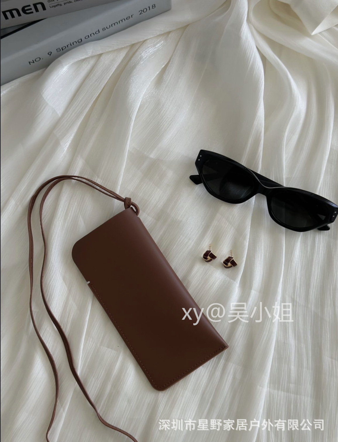 • 사선 누벅 가죽 안경가방 (브라운)