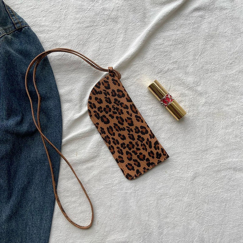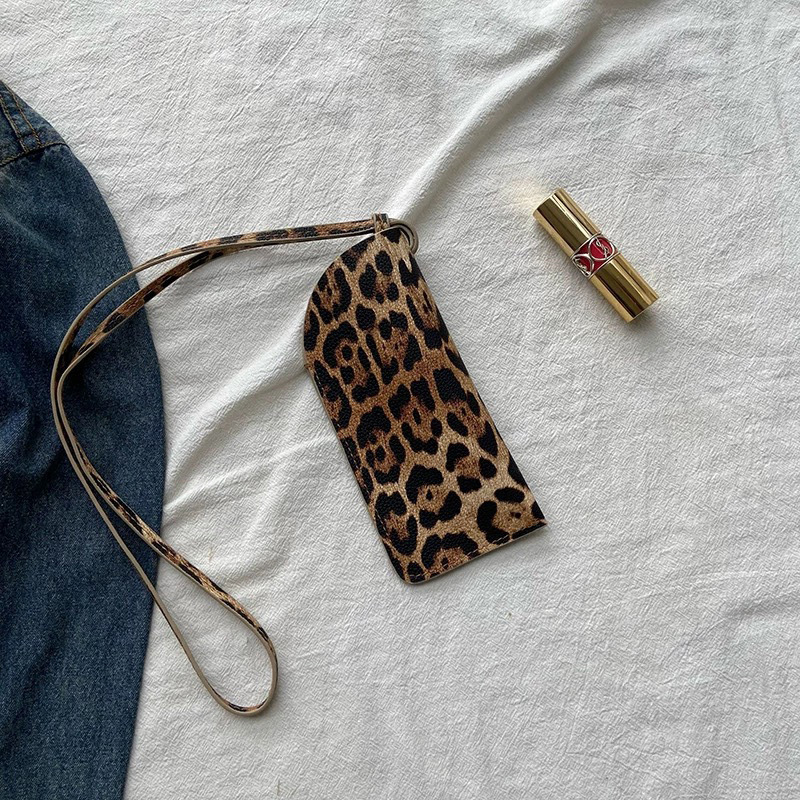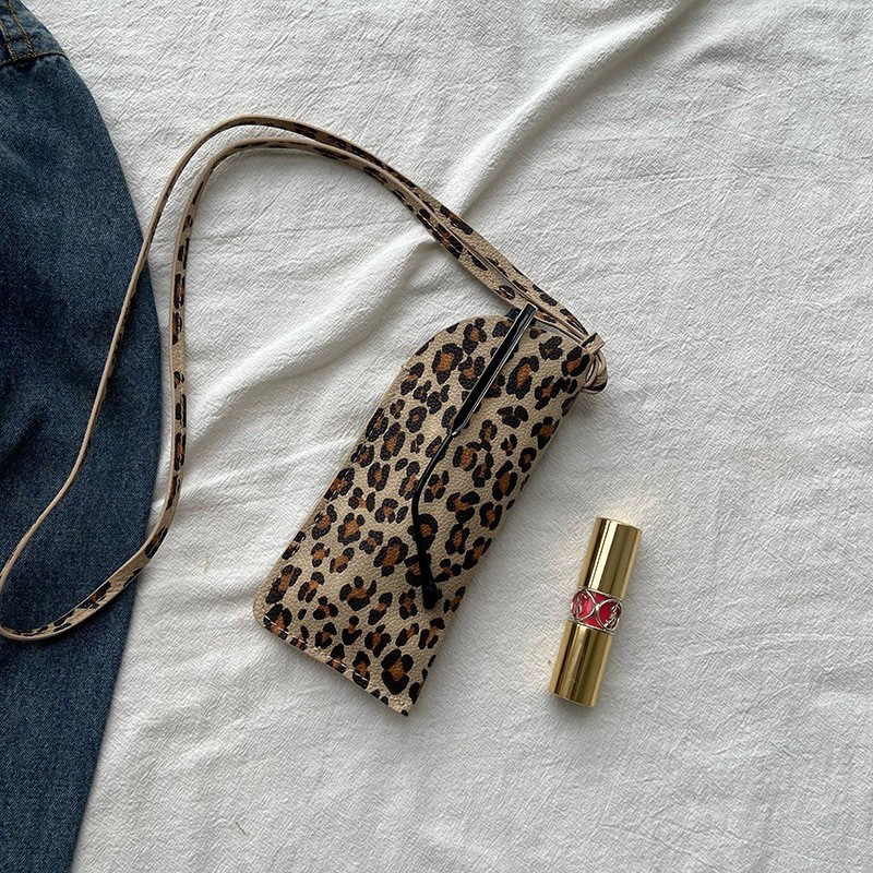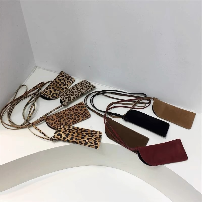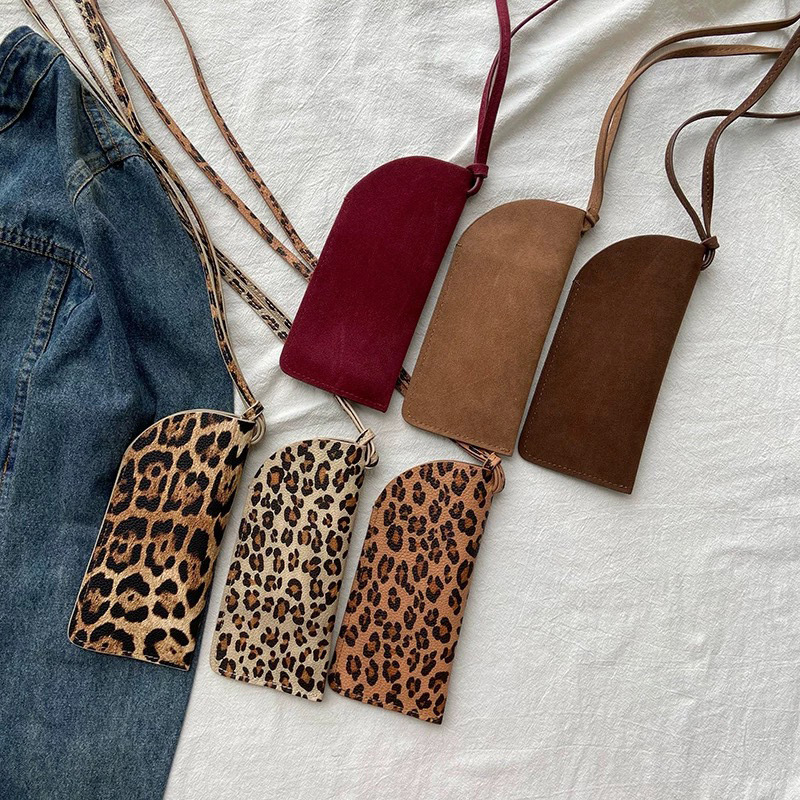 겨울 폭발 한국 인터넷 연예인 같은 스타일의 안경 가방 레오파드 스웨이드 목에 매달려 미니 비스듬한 안경 가방