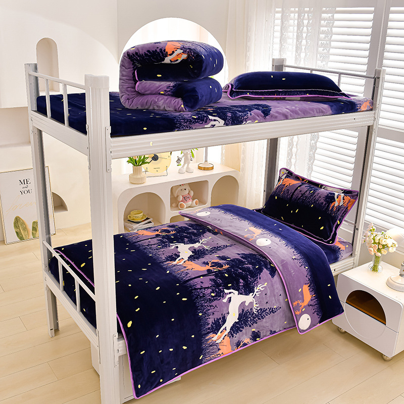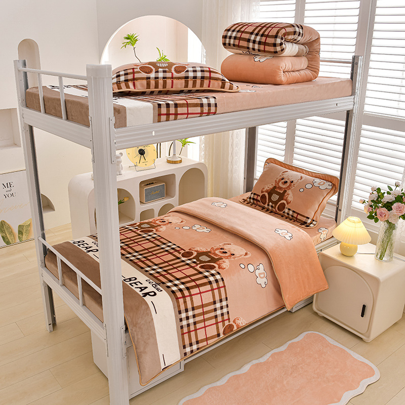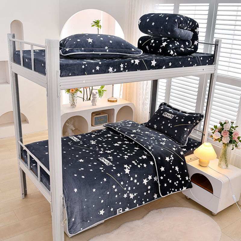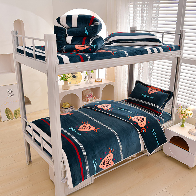 클래스 겨울 우유 벨벳 학생 기숙사 3 피스 세트 두꺼운 남녀 대학생 유니버설 상하 버드 스페셜 0.9 침대