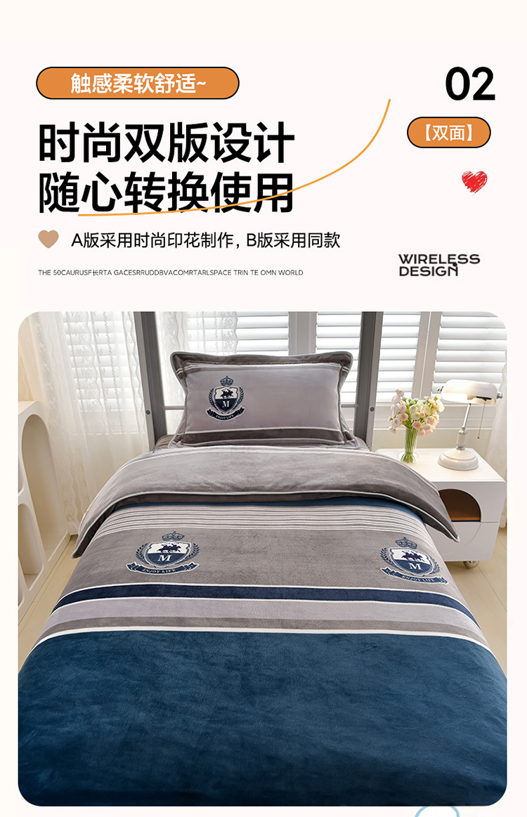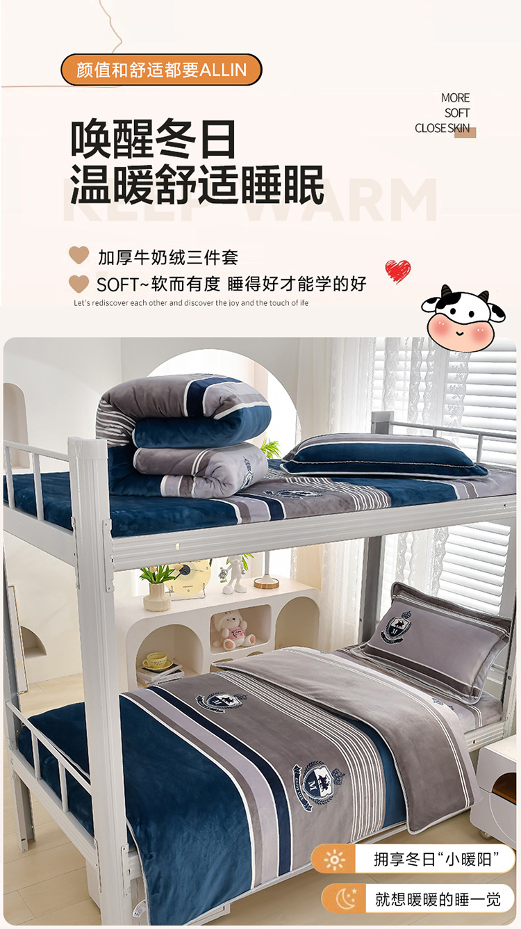 클래스 겨울 우유 벨벳 학생 기숙사 3 피스 세트 두꺼운 남녀 대학생 유니버설 상하 버드 스페셜 0.9 침대스토어 가기