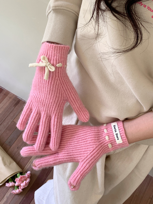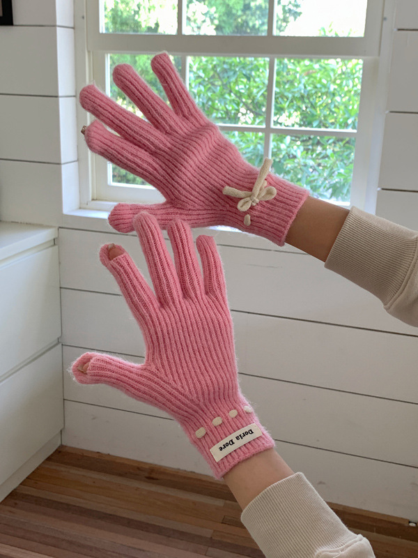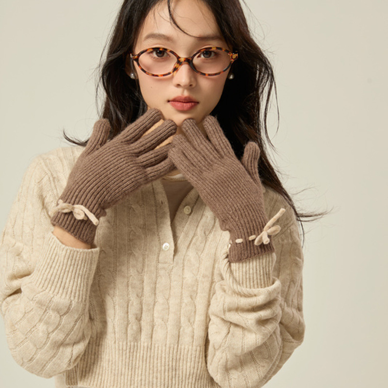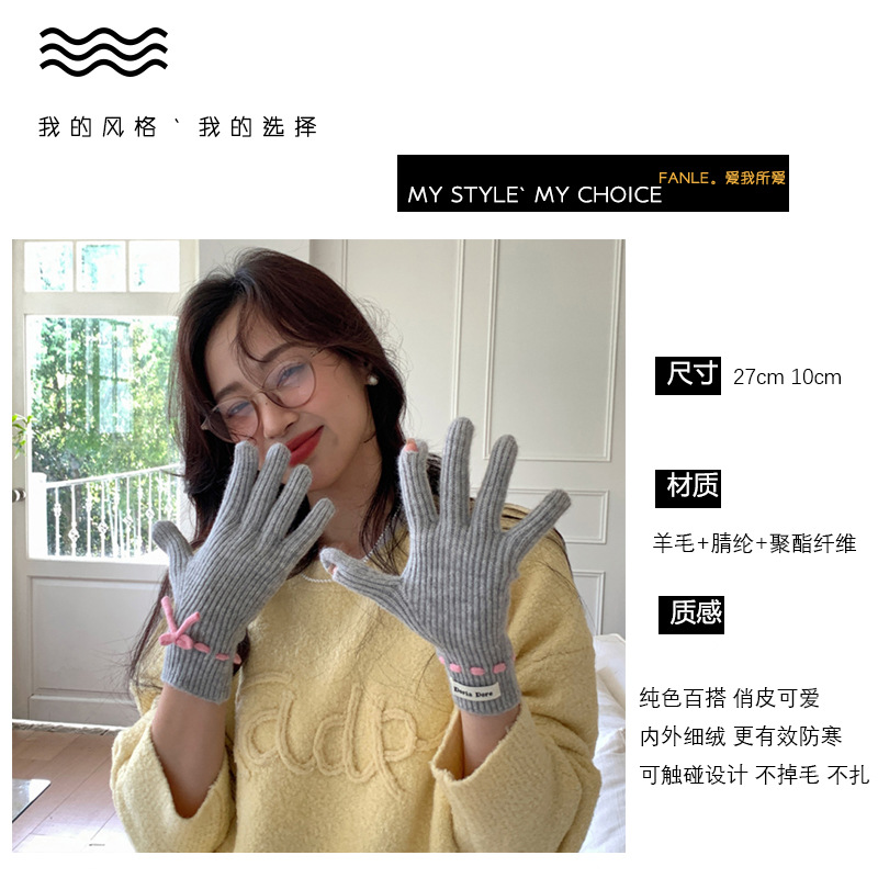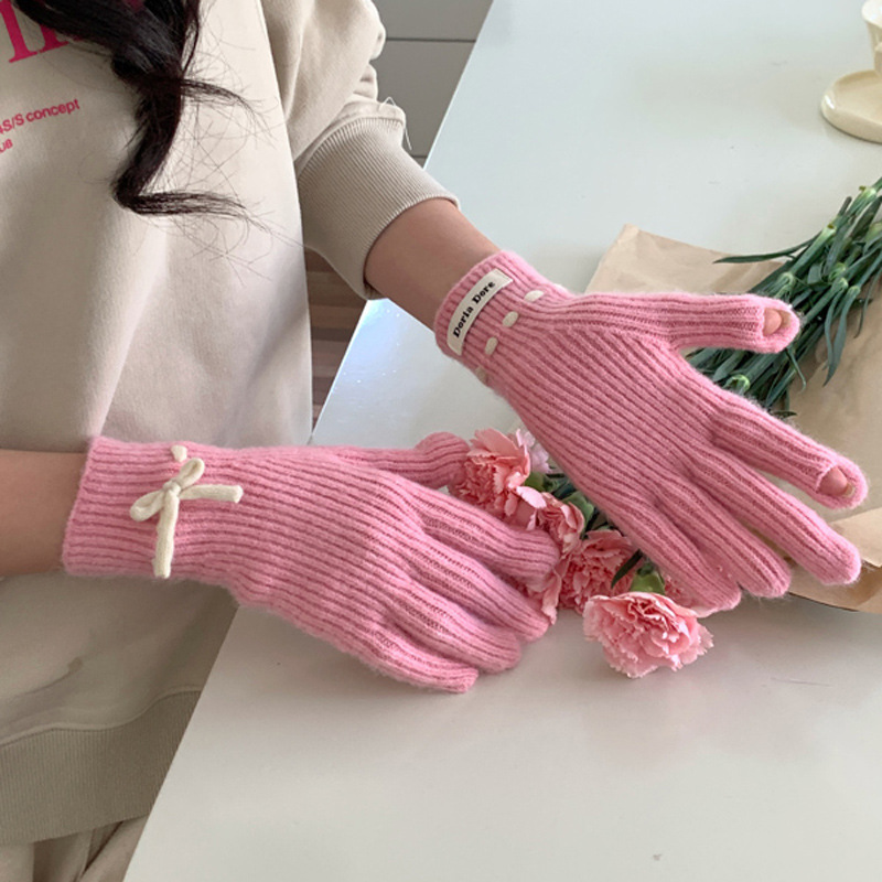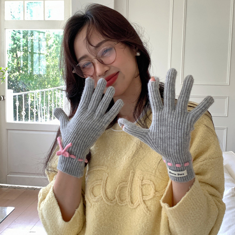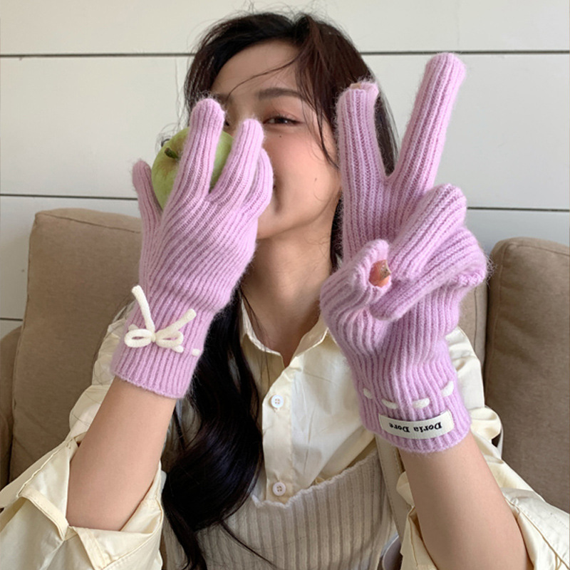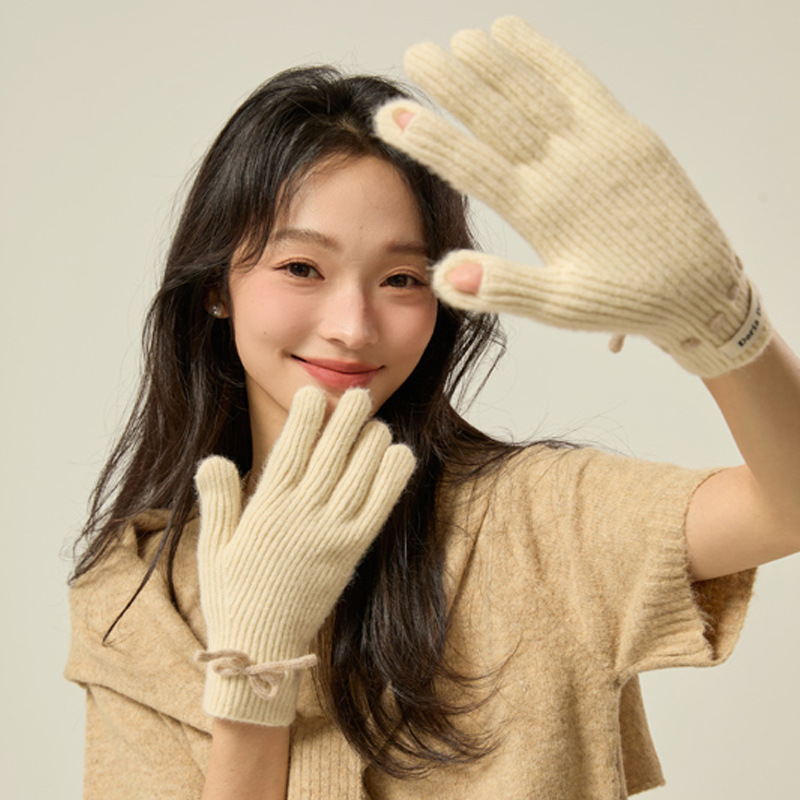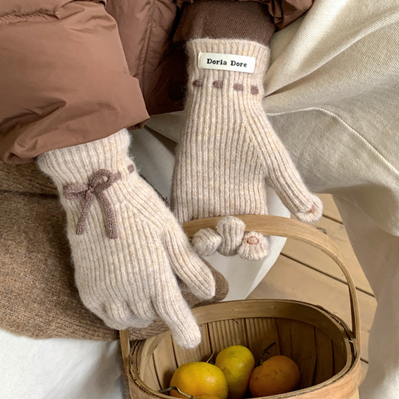 니트 장갑 여성의 겨울 새로운 귀여운 터치 스크린 두꺼운 따뜻한 감기 방지 승마 손가락 활 양모 장갑스토어 가기