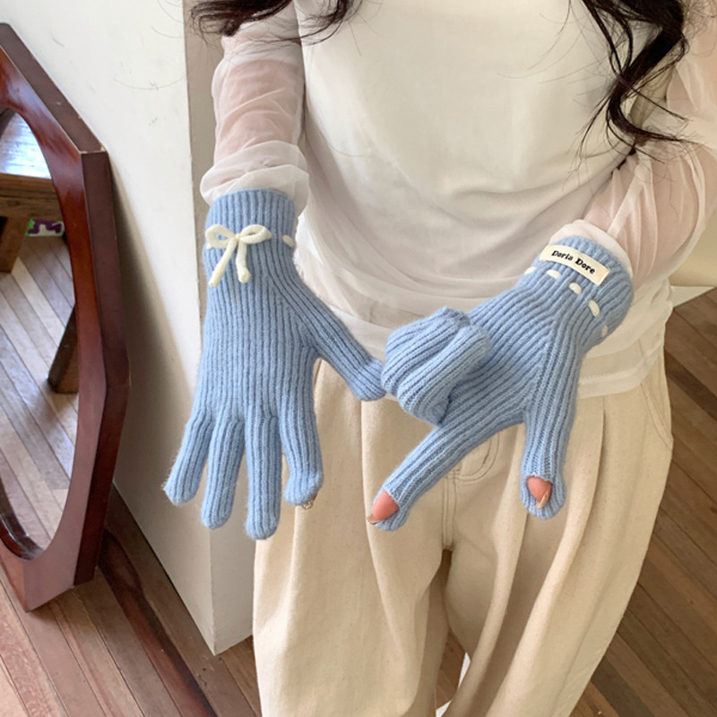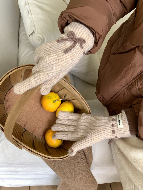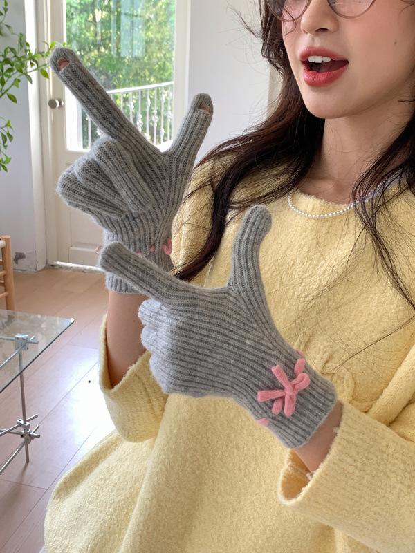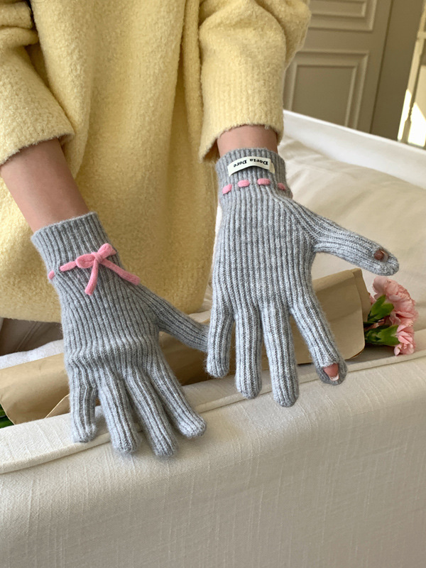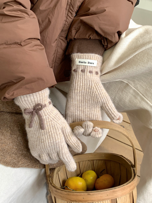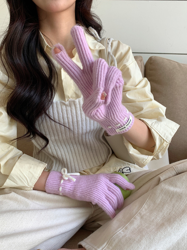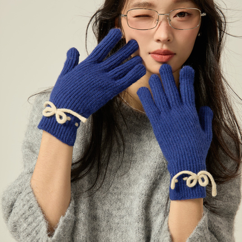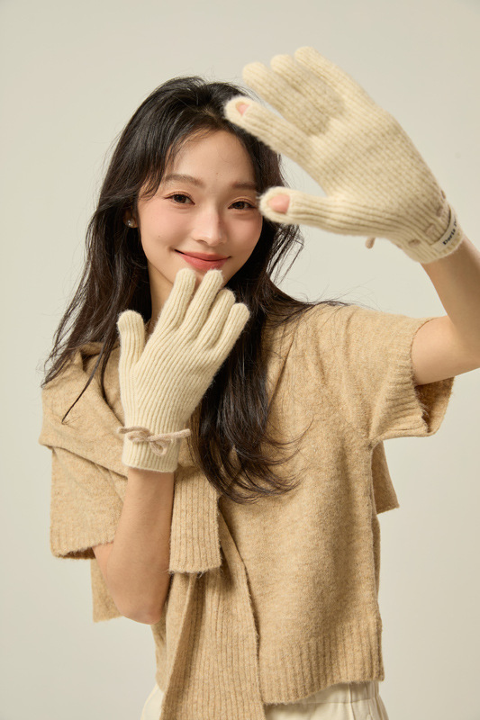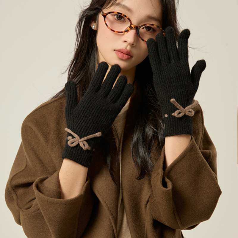 니트 장갑 여성의 겨울 새로운 귀여운 터치 스크린 두꺼운 따뜻한 감기 방지 승마 손가락 활 양모 장갑스토어 가기