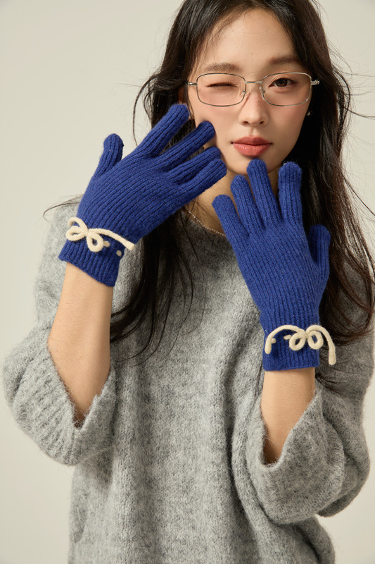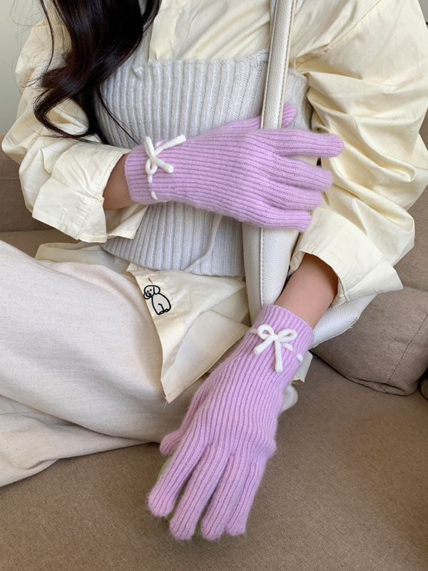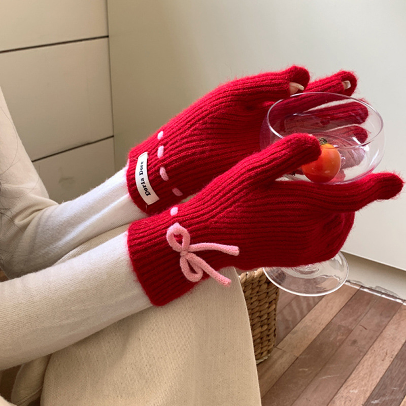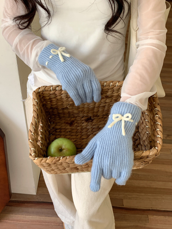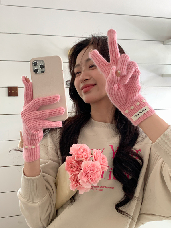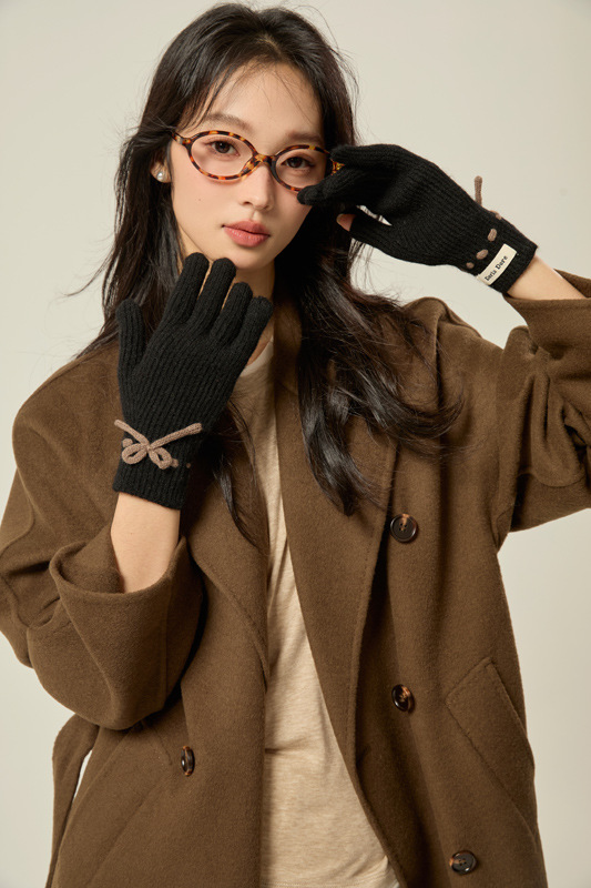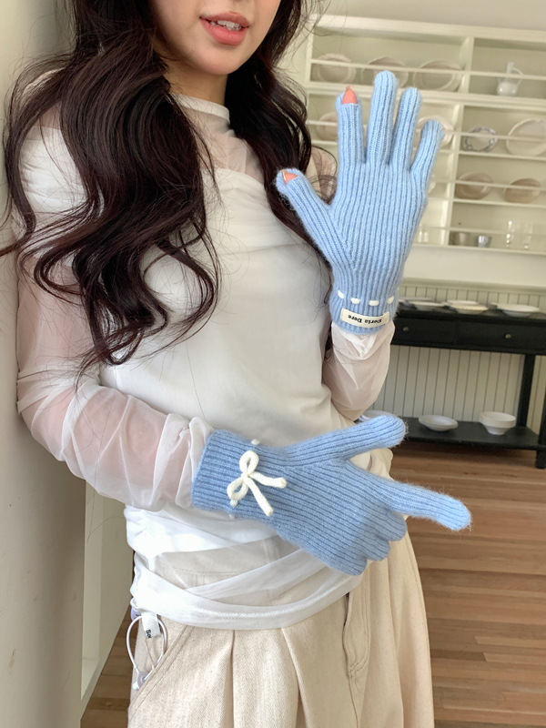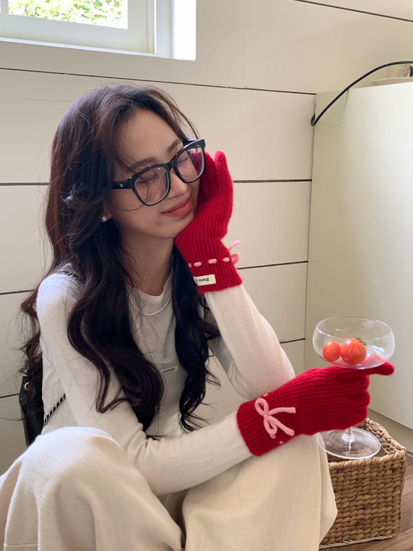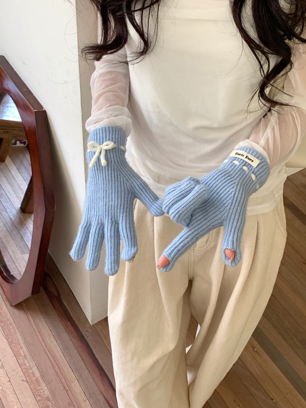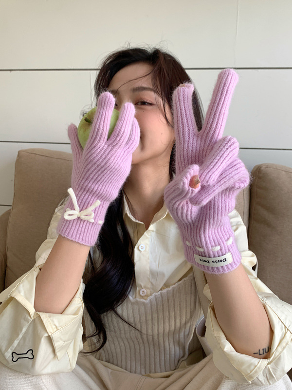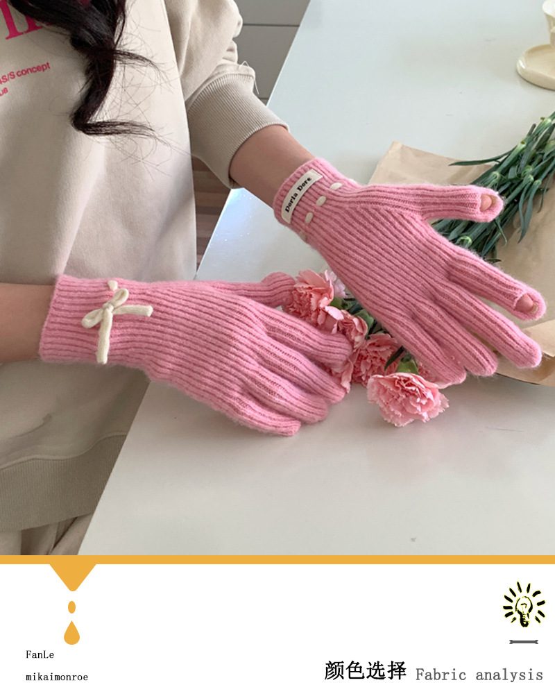 니트 장갑 여성의 겨울 새로운 귀여운 터치 스크린 두꺼운 따뜻한 감기 방지 승마 손가락 활 양모 장갑스토어 가기