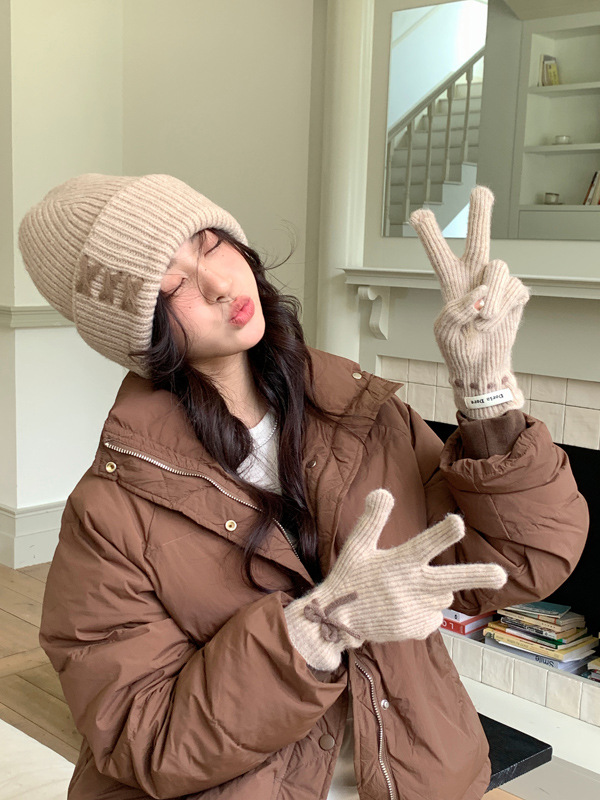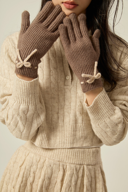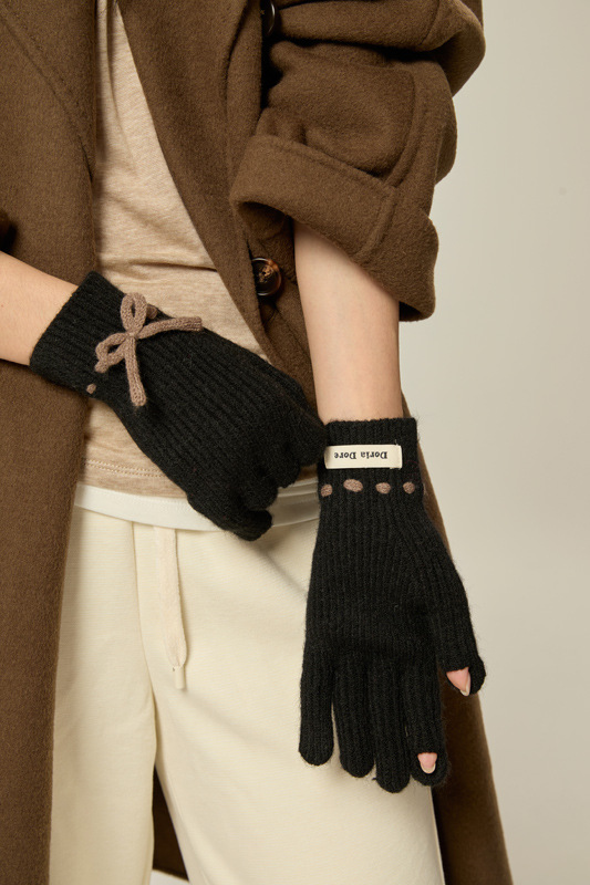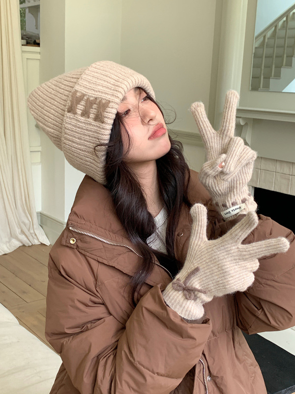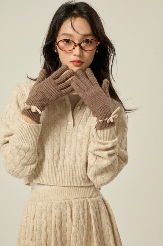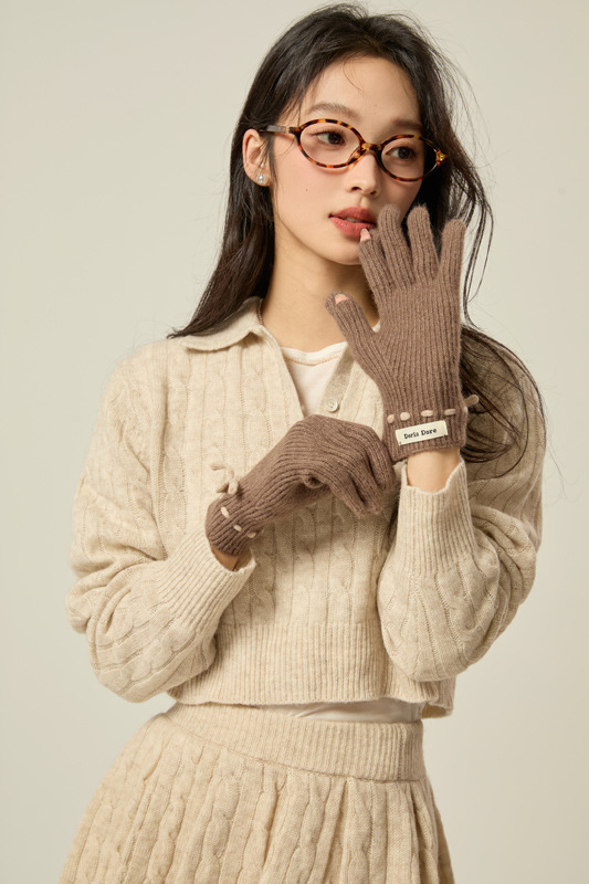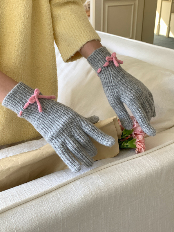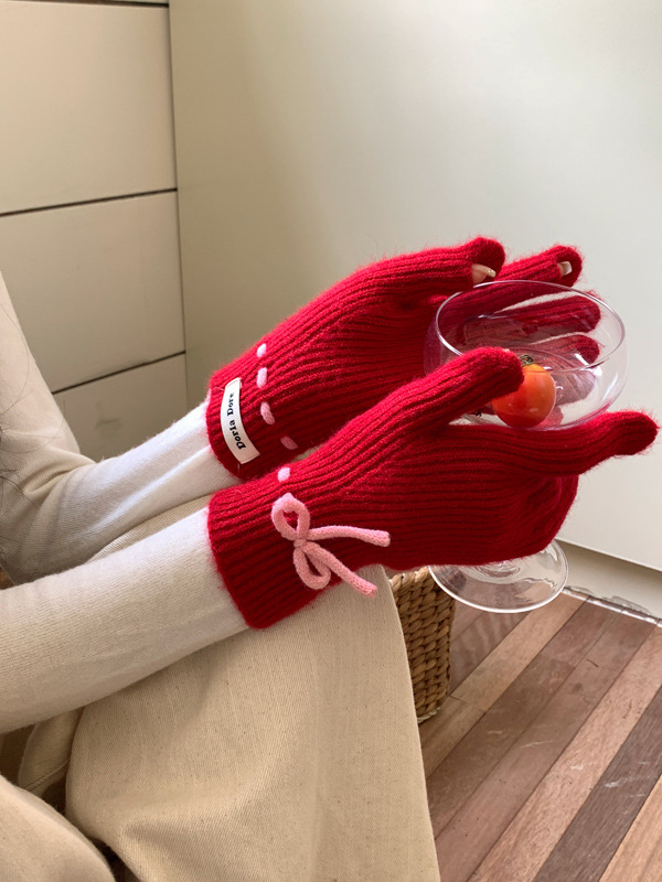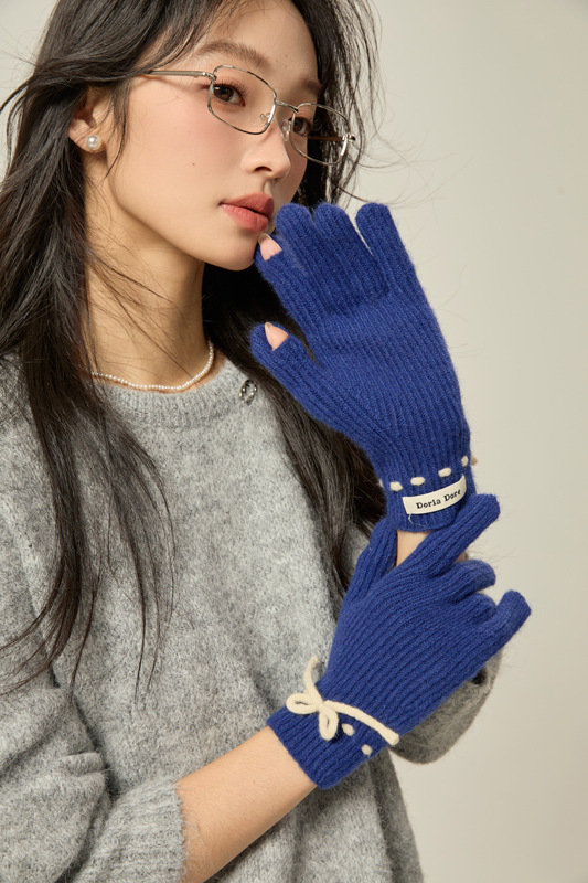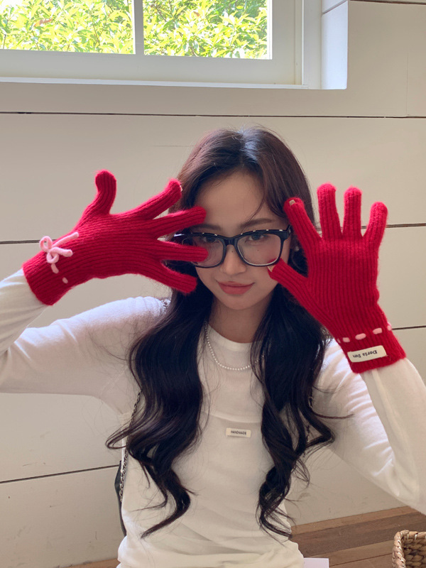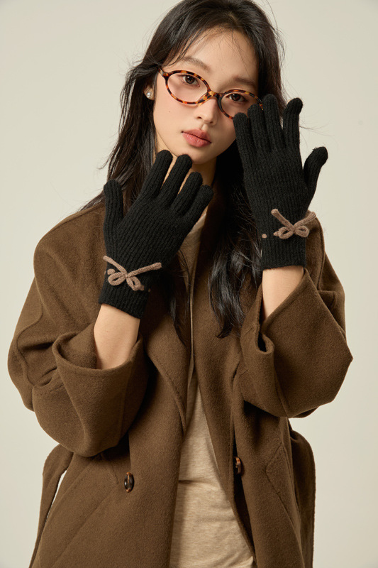 니트 장갑 여성의 겨울 새로운 귀여운 터치 스크린 두꺼운 따뜻한 감기 방지 승마 손가락 활 양모 장갑스토어 가기