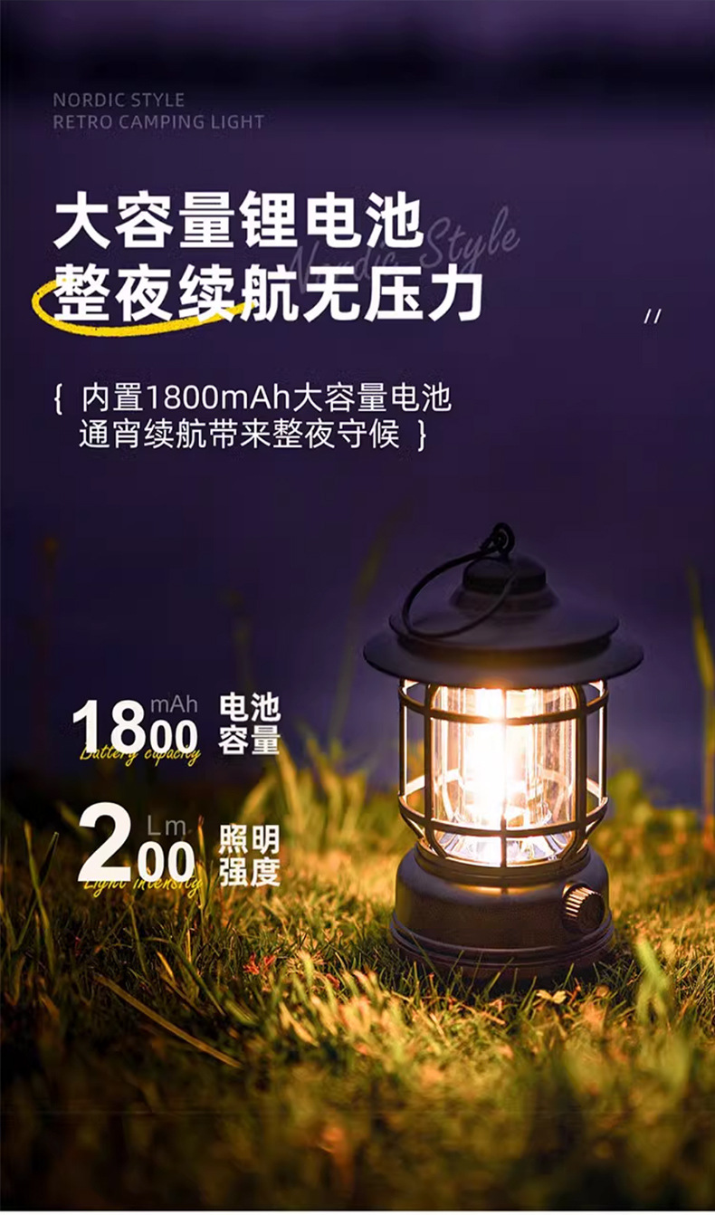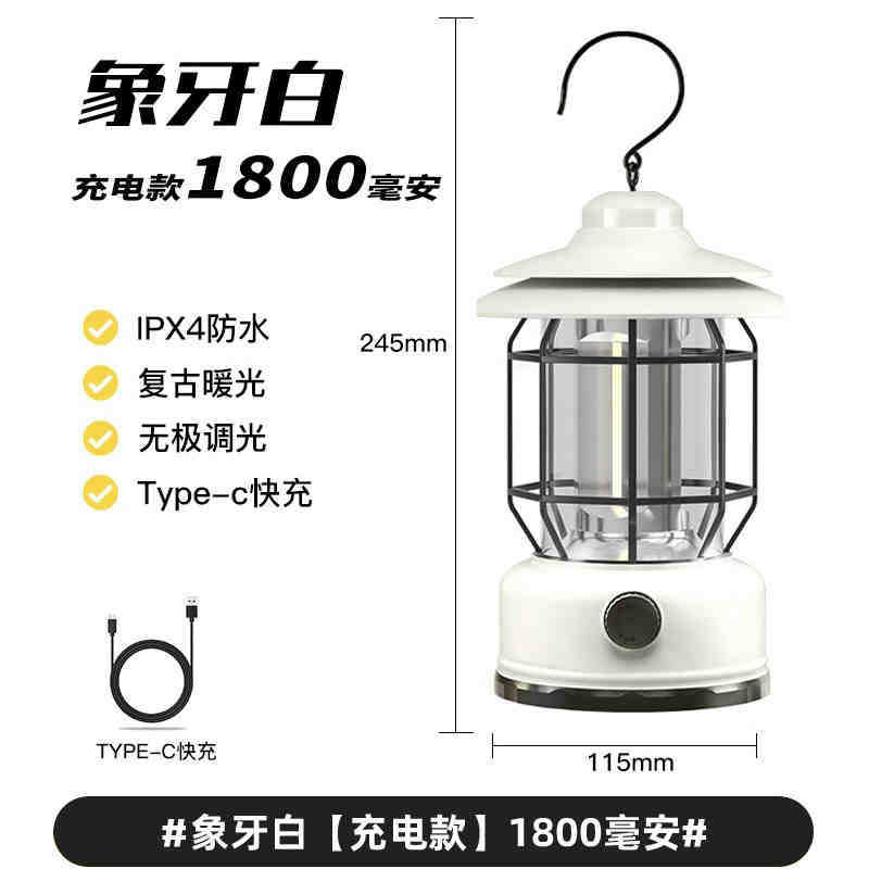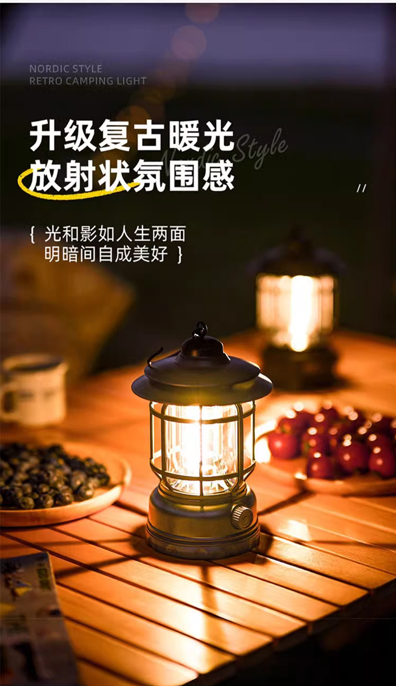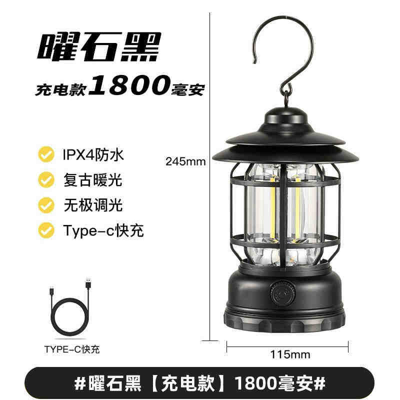 캠핑 조명, 실외 조명, 말 랜턴, 매우 긴 배터리 수명, 충전식 캠핑 분위기 조명, 복고풍 교수형 야외 텐트 조명