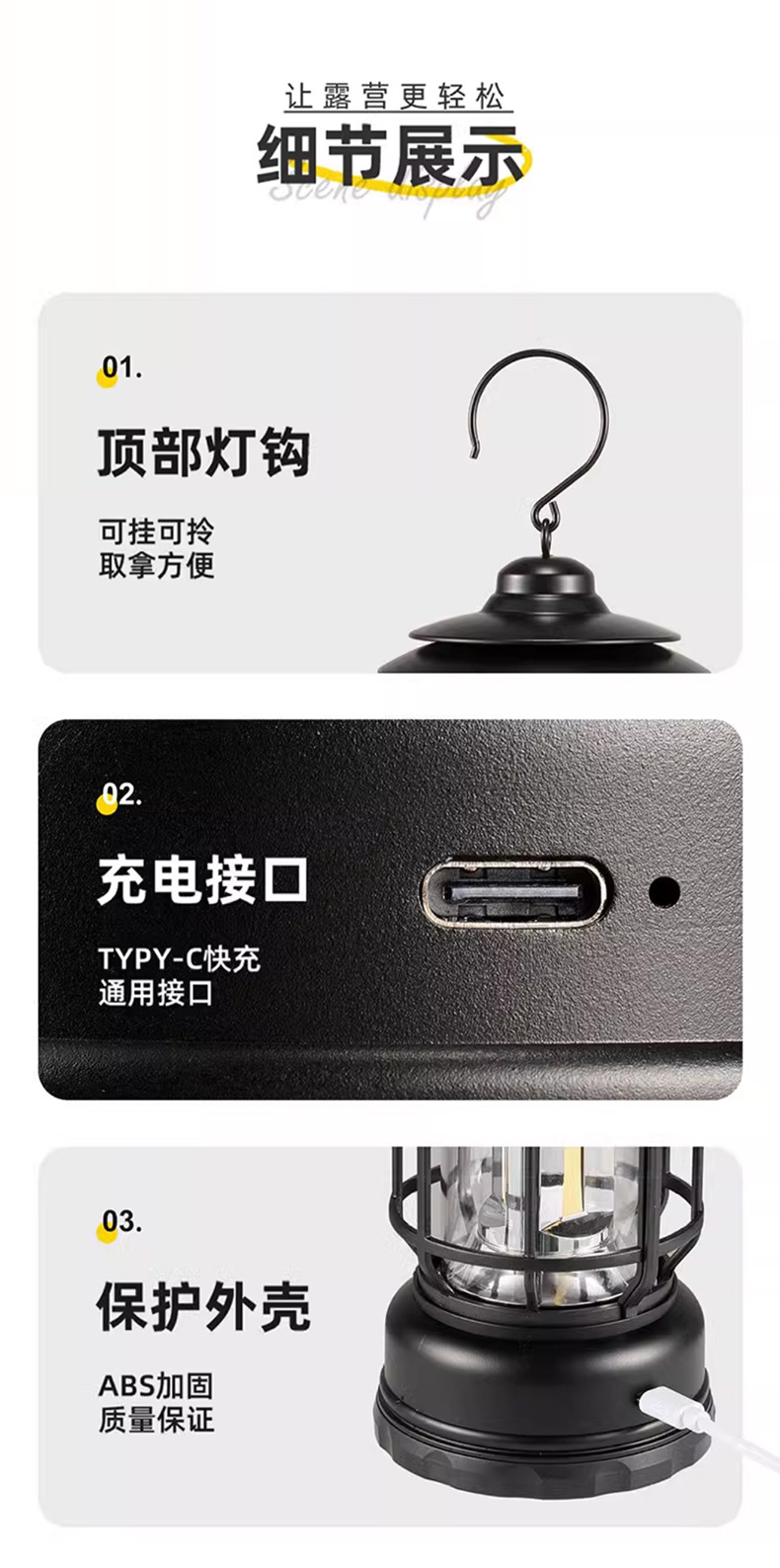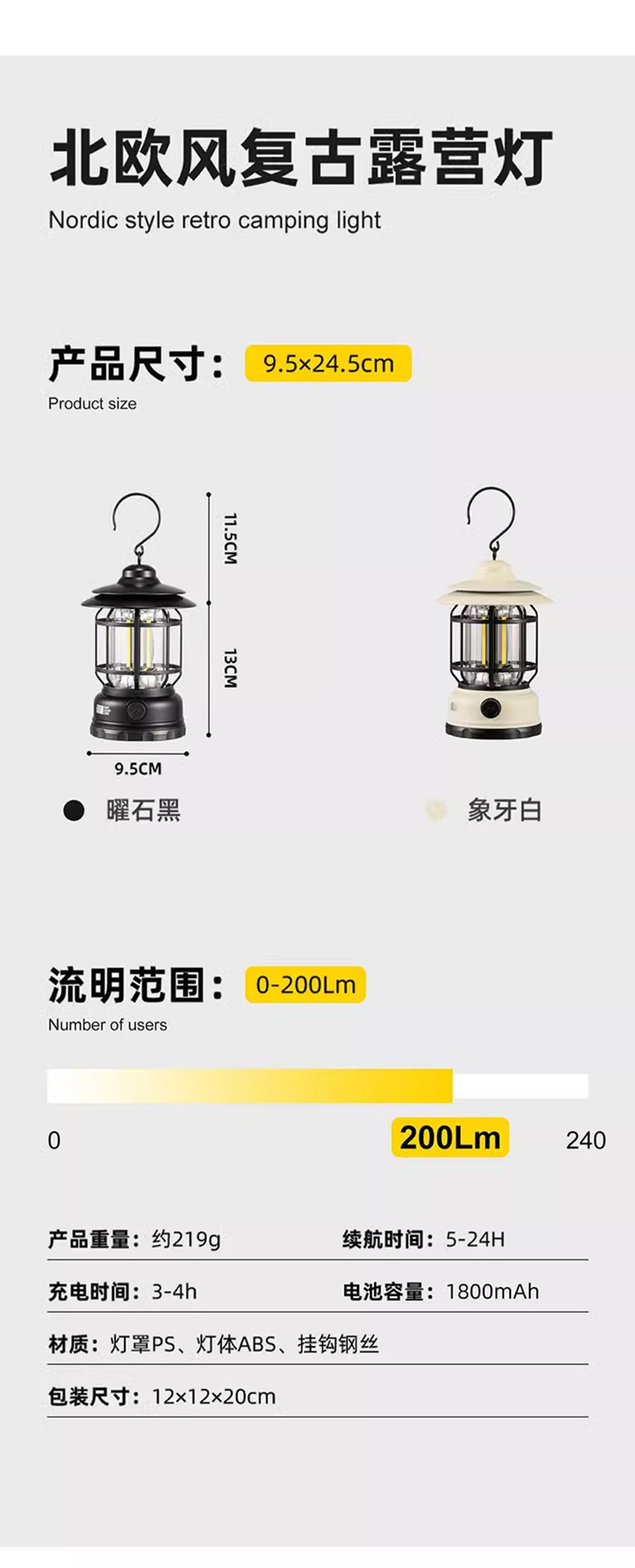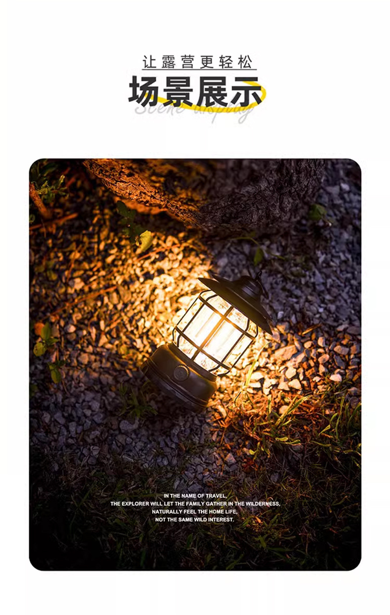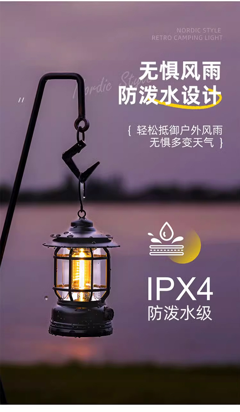 캠핑 조명, 실외 조명, 말 랜턴, 매우 긴 배터리 수명, 충전식 캠핑 분위기 조명, 복고풍 교수형 야외 텐트 조명