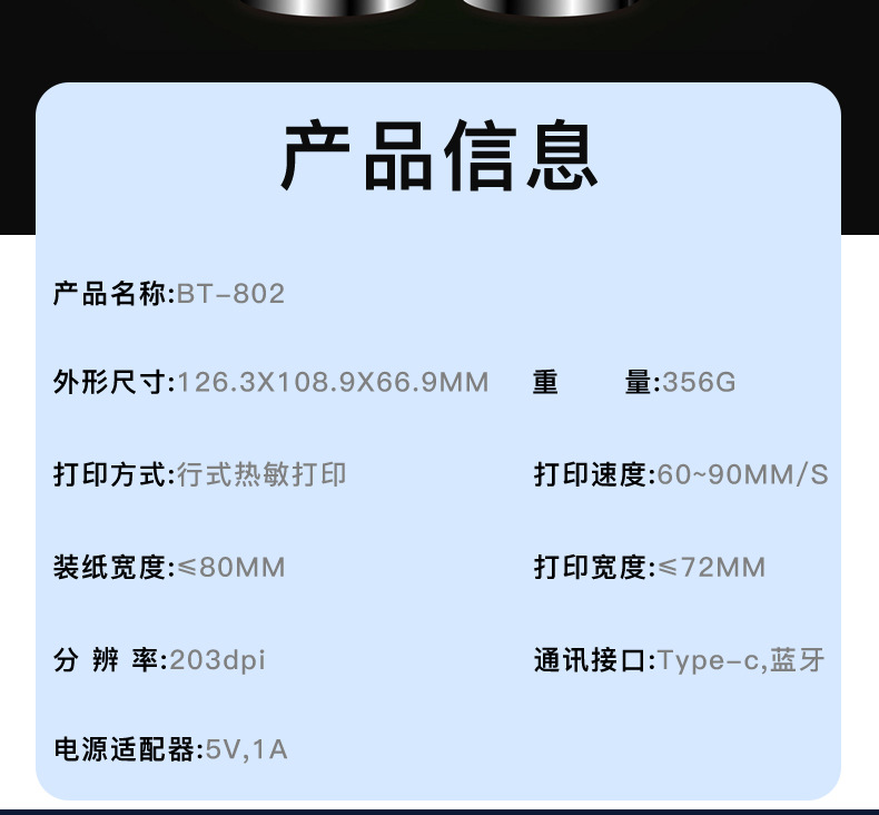공장 직접 80mm 휴대용 열 블루투스 영수증 표준 프린터 대외 무역 수출 국경 간 라벨 인쇄스토어 가기