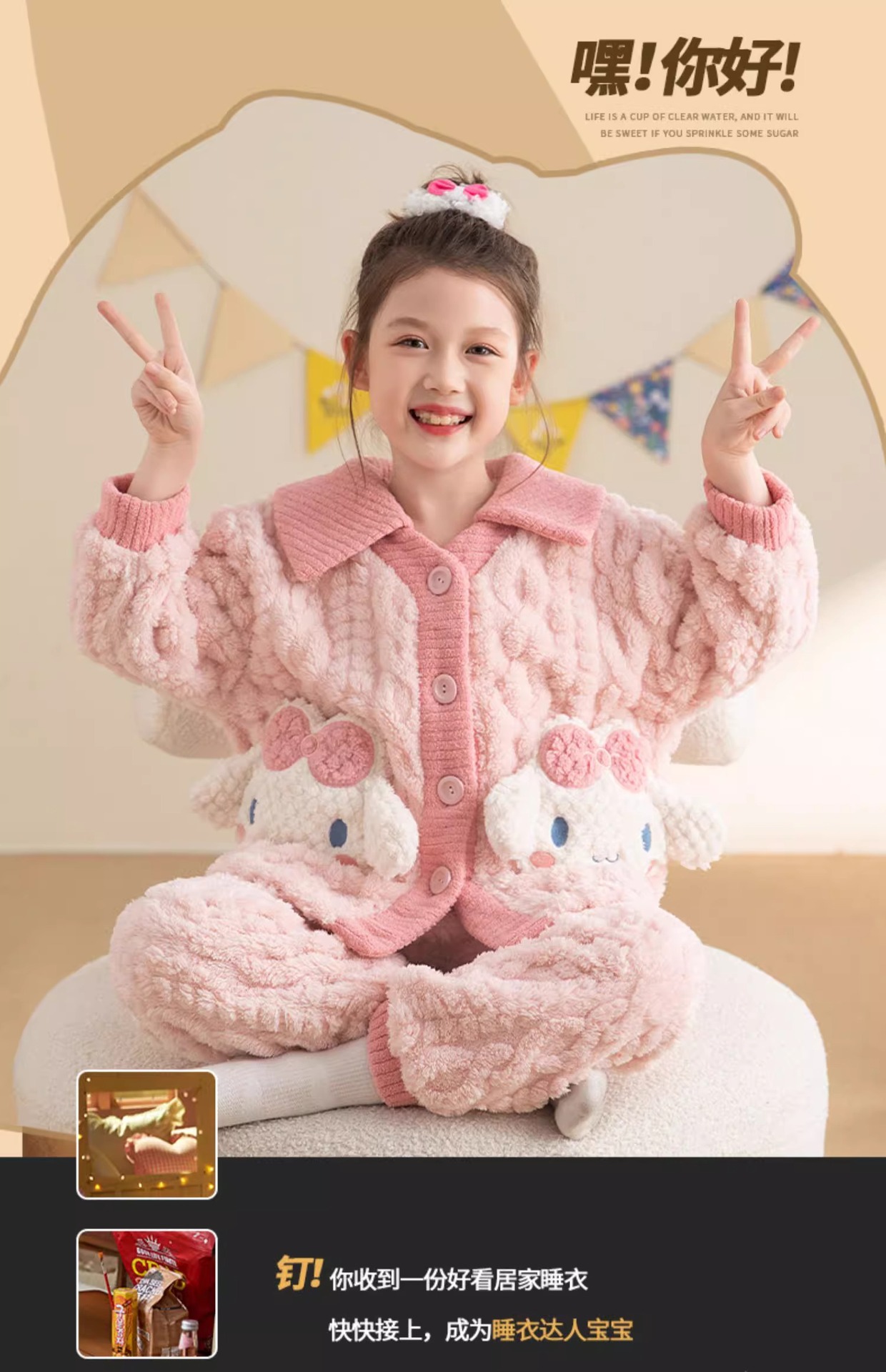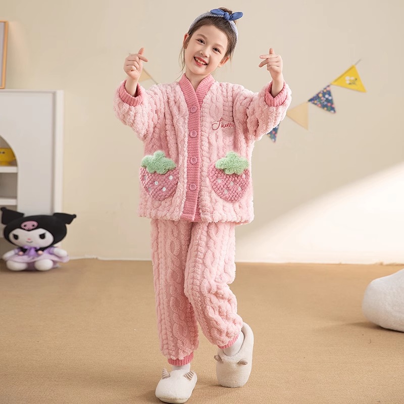 어린이 잠옷 겨울 산호 양털 두꺼운 소녀 세트 가을과 겨울 플란넬 소녀 서양식 아기 집 옷스토어 가기