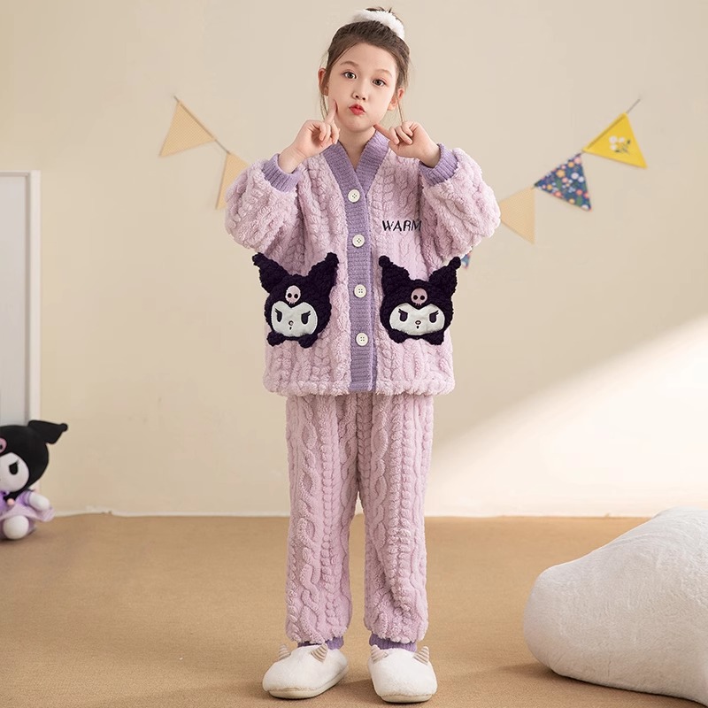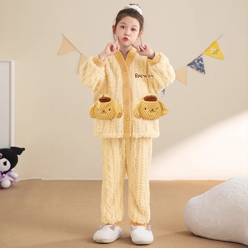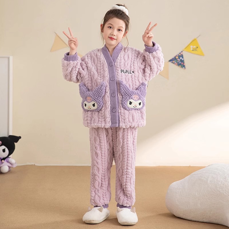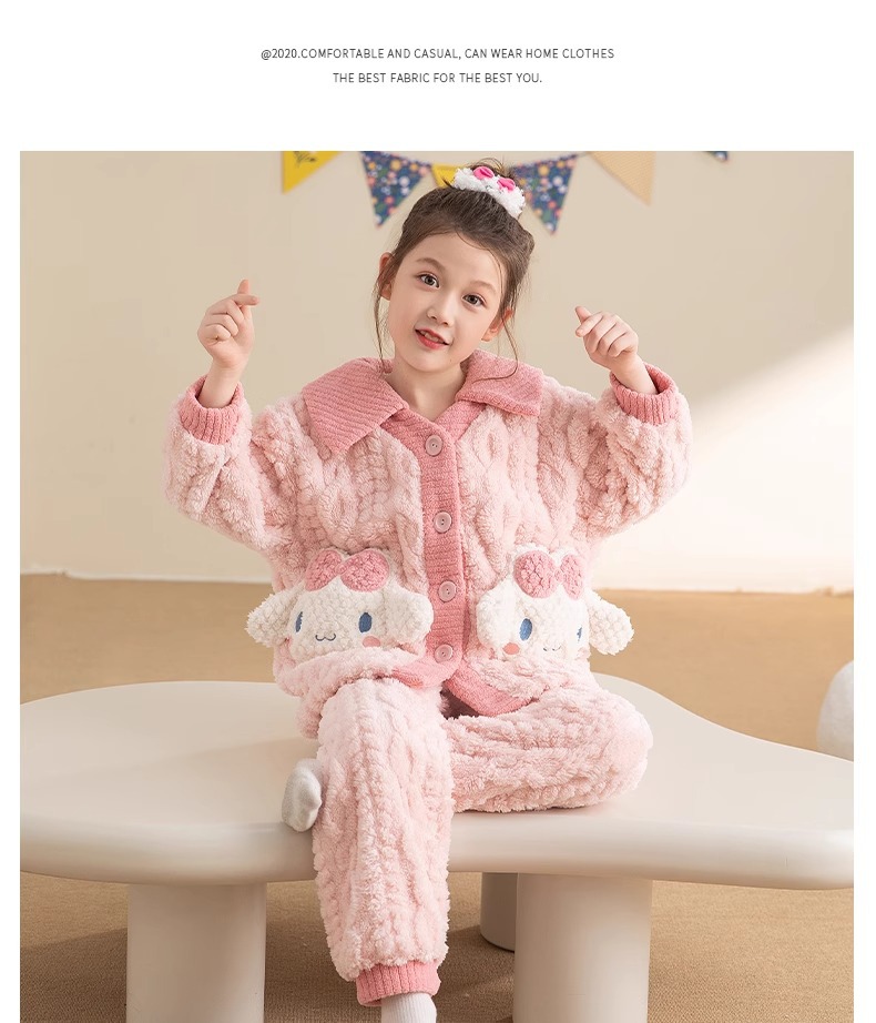 어린이 잠옷 겨울 산호 양털 두꺼운 소녀 세트 가을과 겨울 플란넬 소녀 서양식 아기 집 옷
