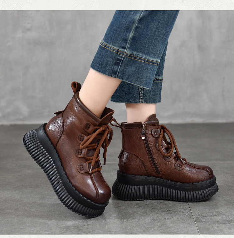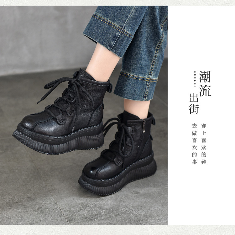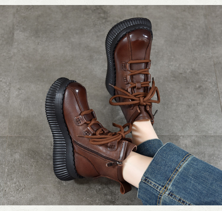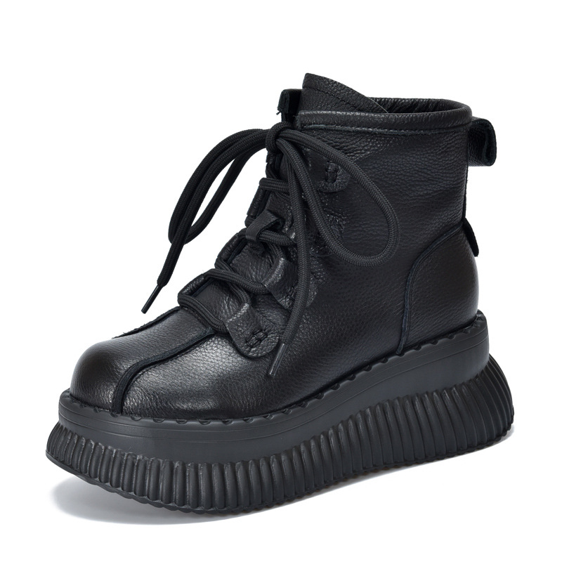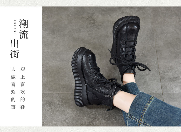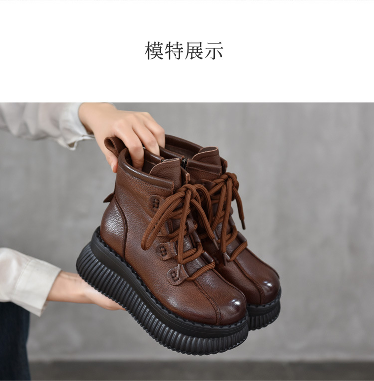【이벤트 가격 165】 여성용 천연가죽 숏부츠, 겨울용 플리스 안감 따뜻한 면부츠, 소가죽 마틴부츠스토어 가기