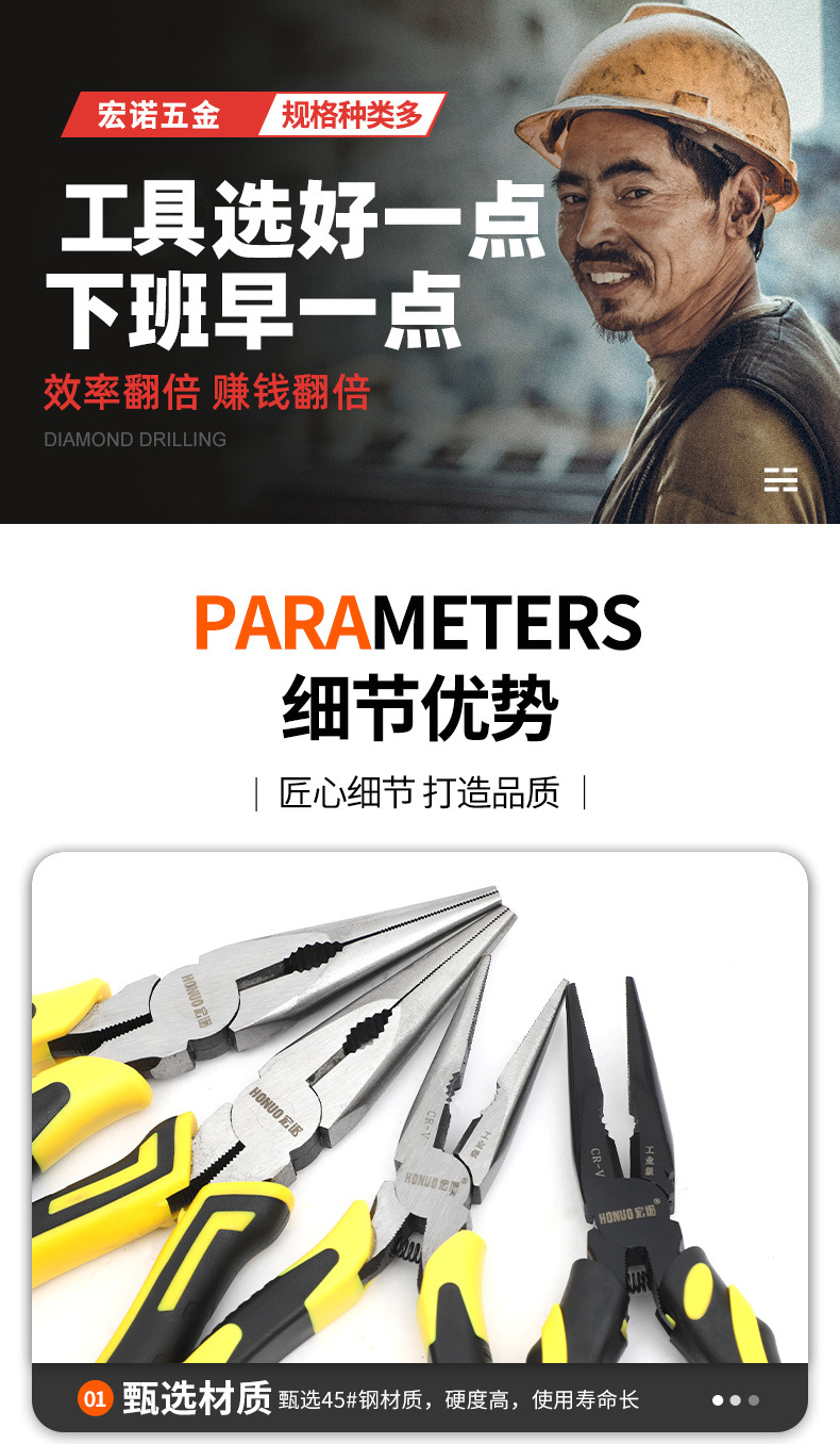 6inch 포인트 플라이어 수공구 하드웨어 도구 전기공 와이어 스트리퍼 아메리칸 스타일 포인트 플라이어 편심형 노동 절약형 포인트 플라이어스토어 가기