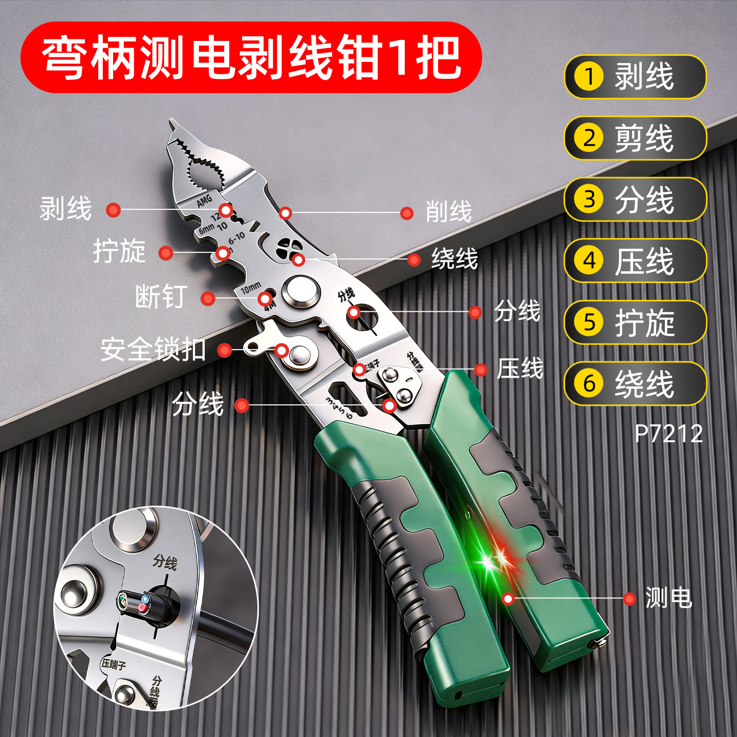 • 유도형 전기 테스트 및 스트리핑 플라이어 [녹색 28-in-1]