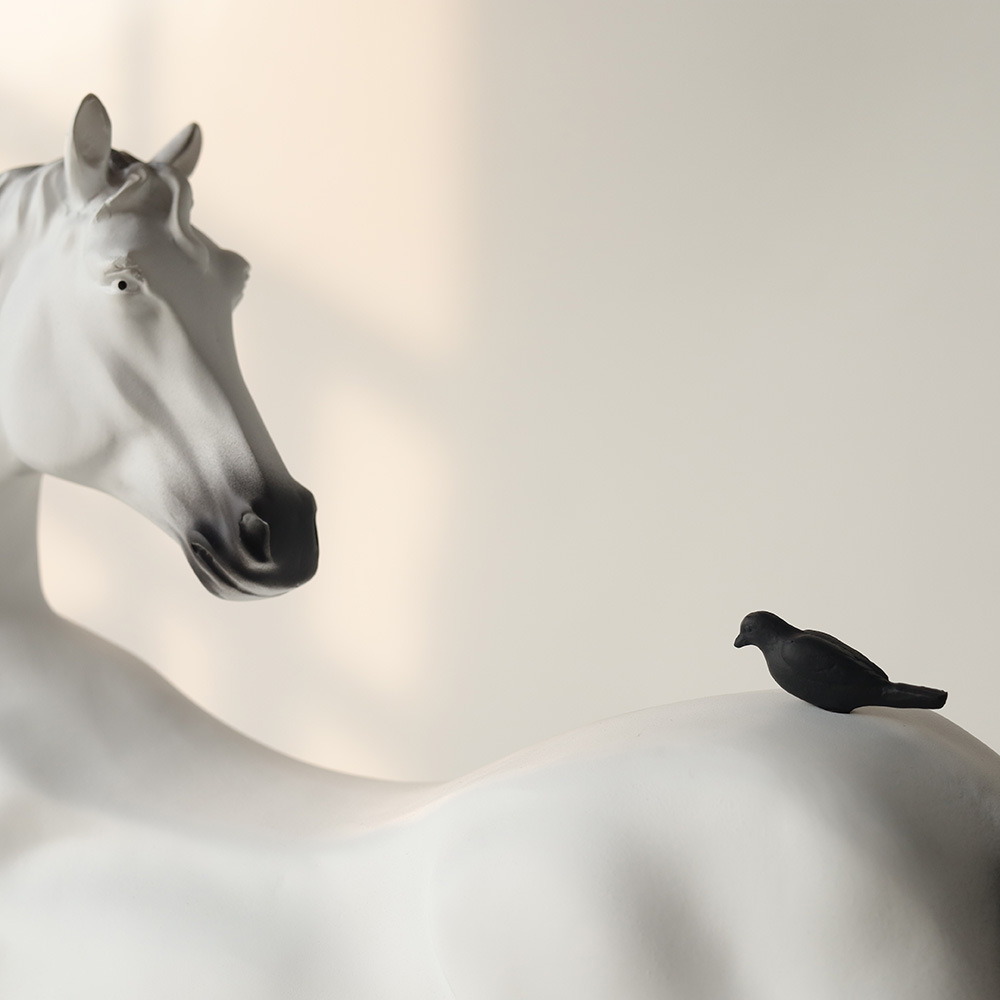 북유럽 창조적 인 추상 수지 흰 말 동물 조각 장식품 거실 복도 연구 호텔 홈 액세서리