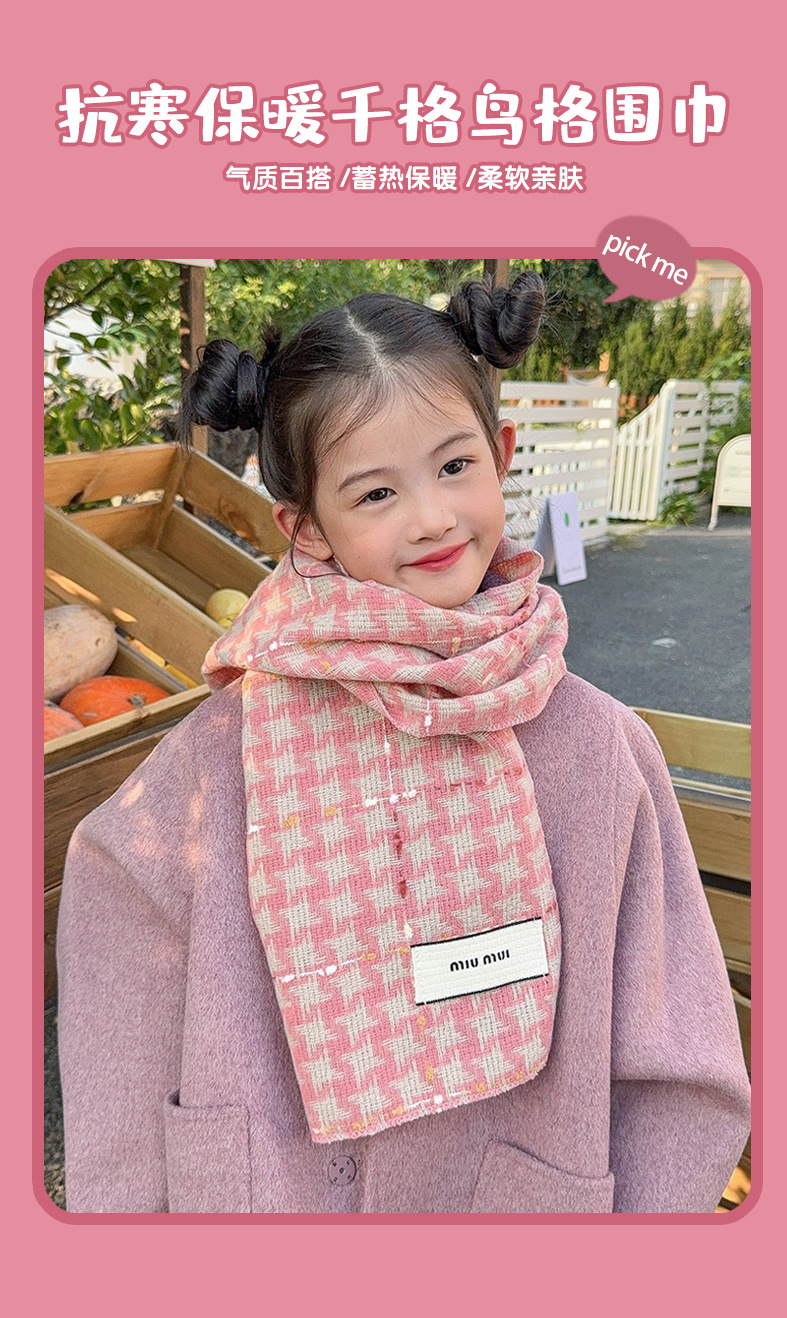 어린이 스카프 2024 새로운 소녀 따뜻한 아기 복고풍 소년과 소녀 겨울을위한 가을과 겨울 하운드 양모 스카프스토어 가기