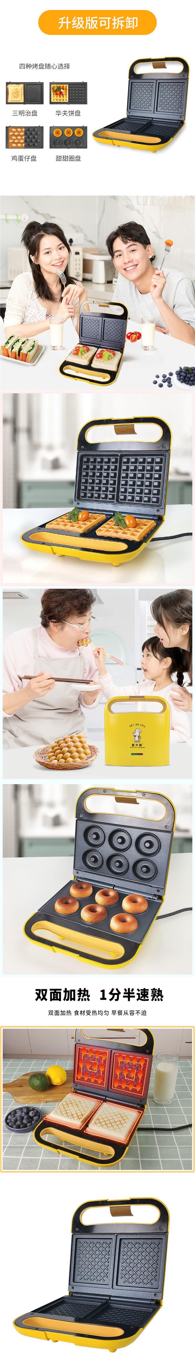 요리사 카이 샌드위치 기계 아침 식사 기계 가벼운 식품 기계 가정용 전기 케이크 팬 작은 파니니 샌드위치 와플 메이커