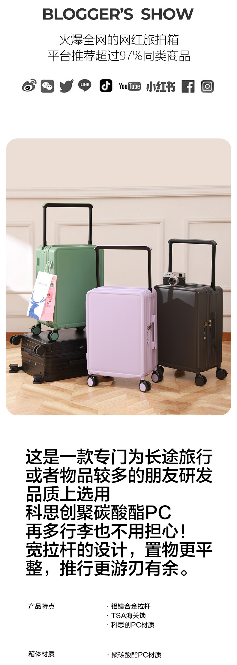 2024 새로운 레저 여행 와이드 로드 PC 트롤리 케이스 유니버설 휠 대용량 가방/인쇄 가능한 패턴