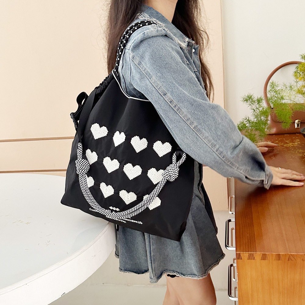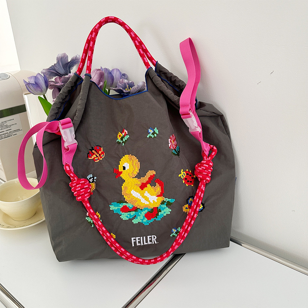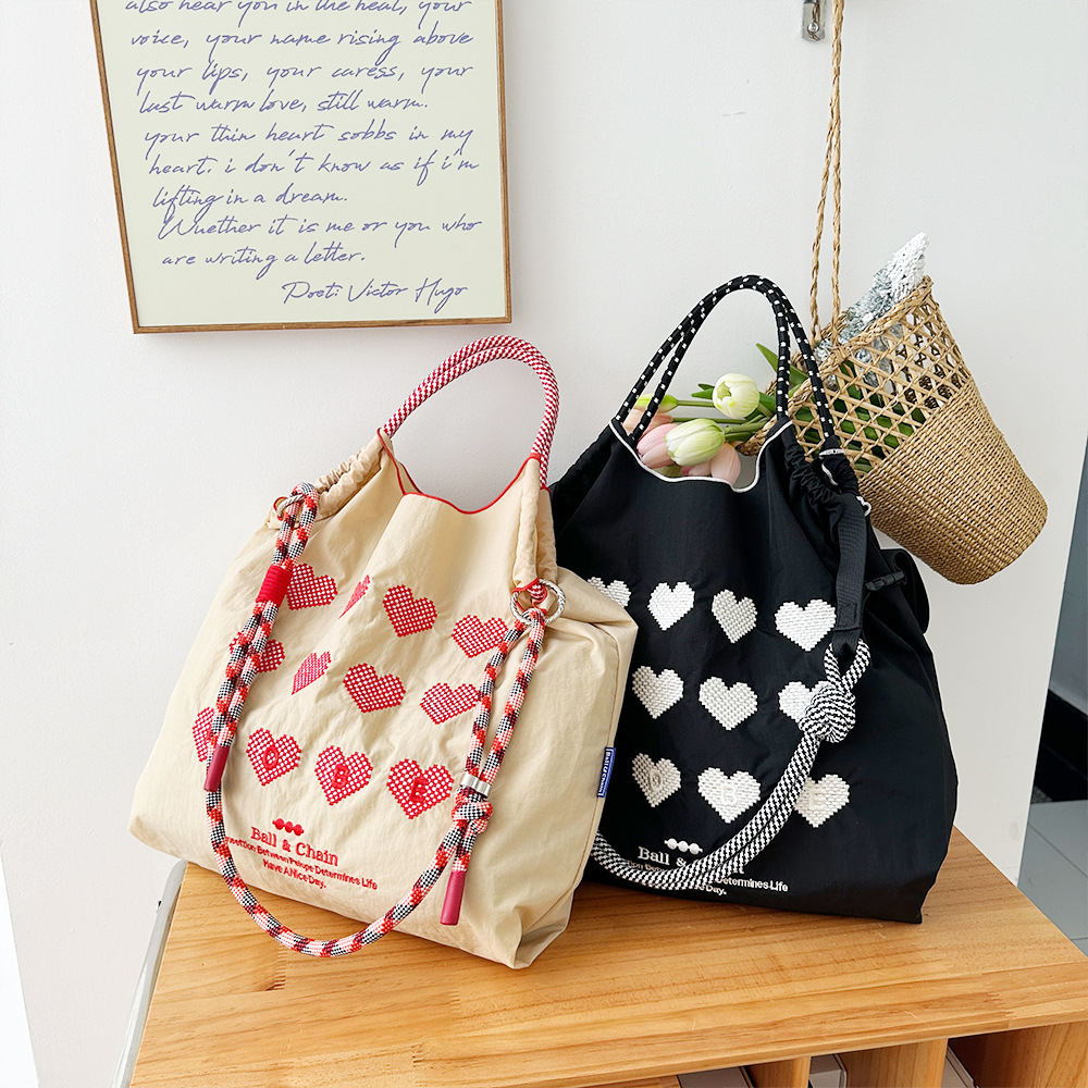 일본 볼 체인 캔버스 가방 나일론 자수 친환경 쇼핑백 숄더백 여성용 통근 토트 백