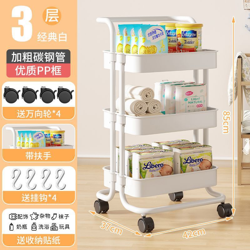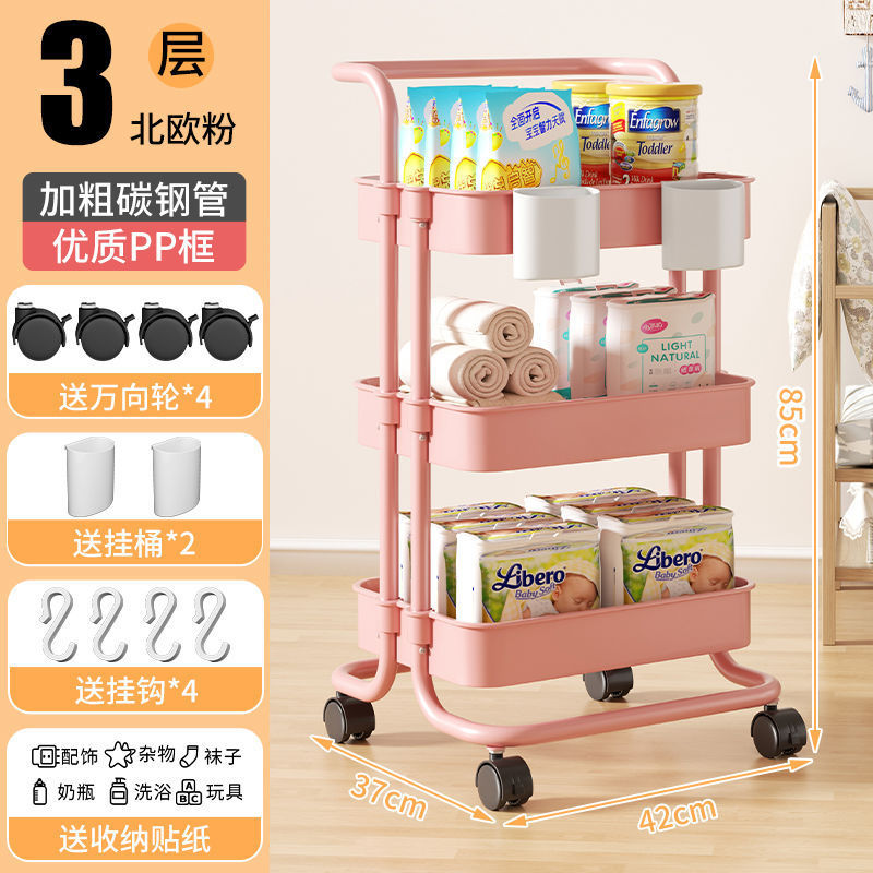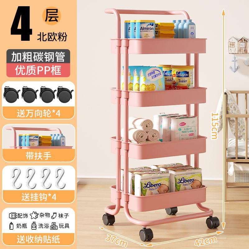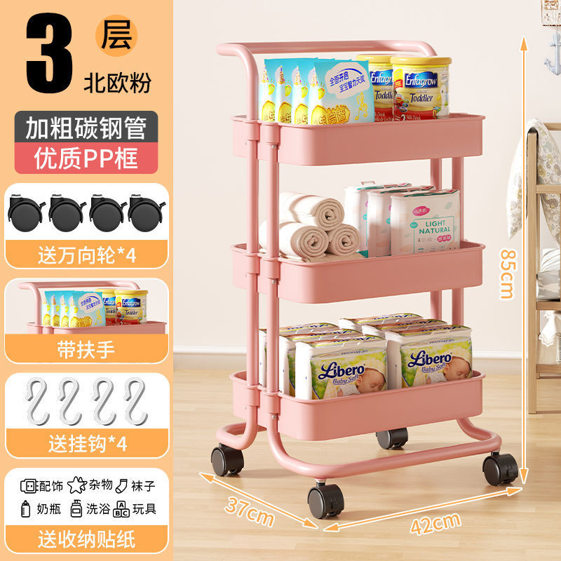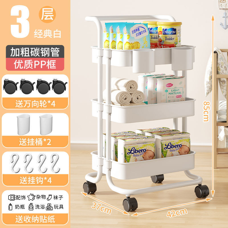 트롤리 스토리지 랙 바닥 다층 주방 신생아 침실 아기 용품 모바일 스낵 스토리지 랙