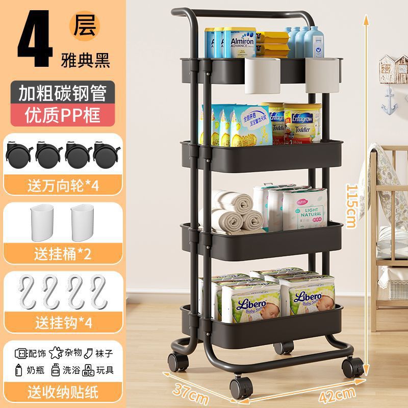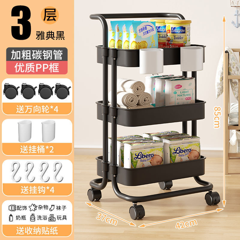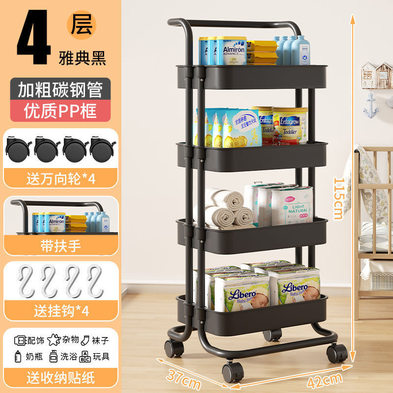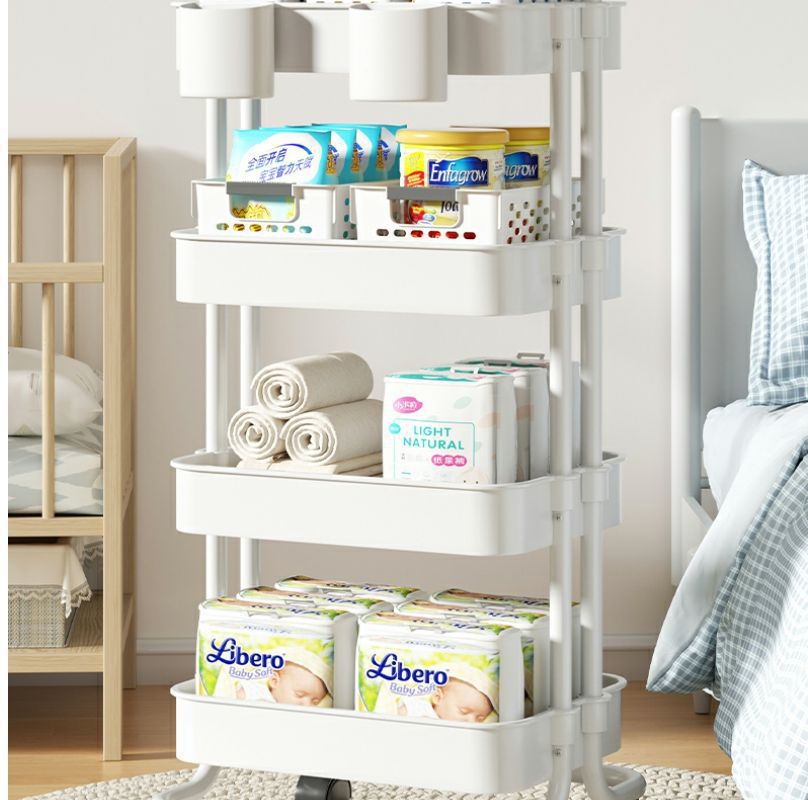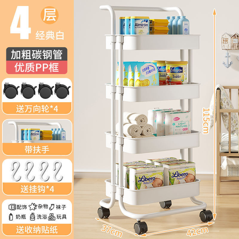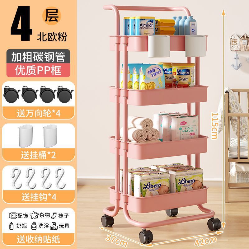 트롤리 스토리지 랙 바닥 다층 주방 신생아 침실 아기 용품 모바일 스낵 스토리지 랙