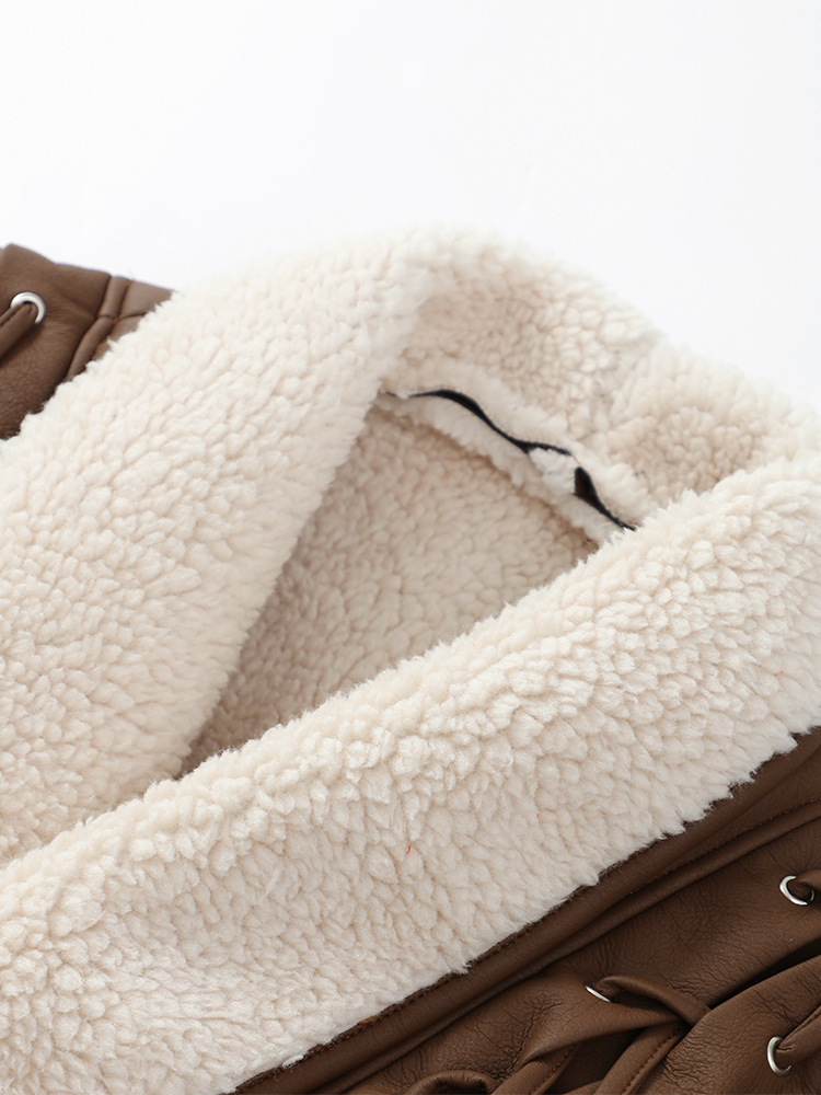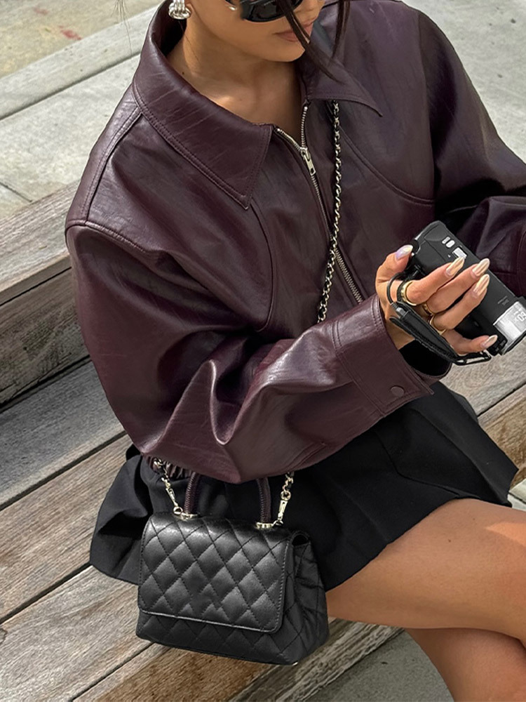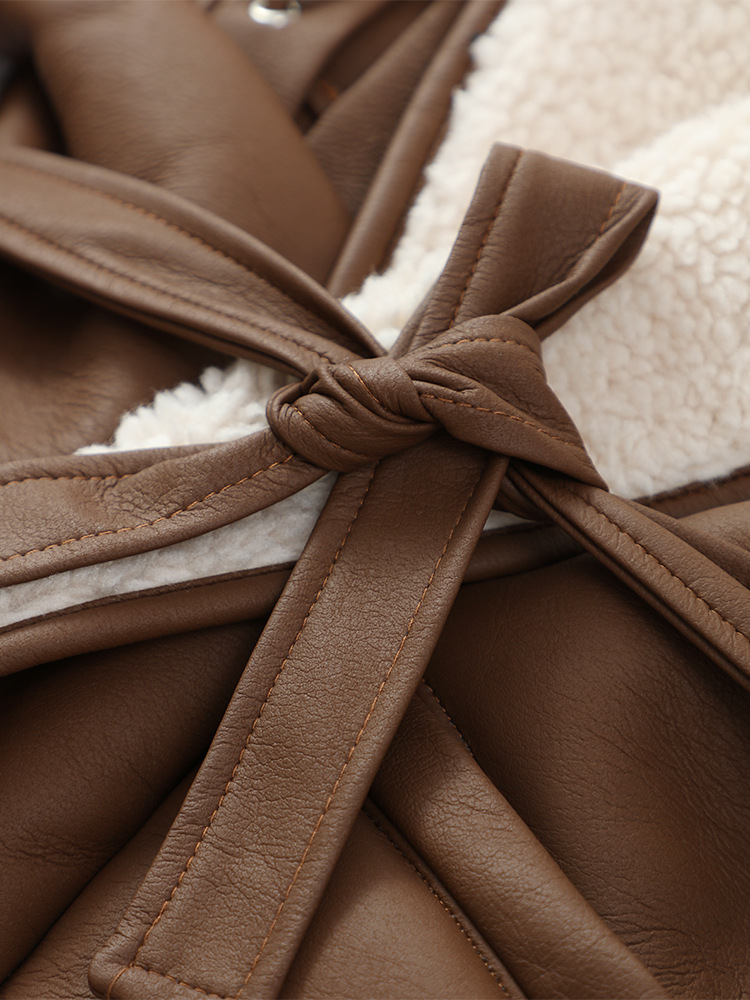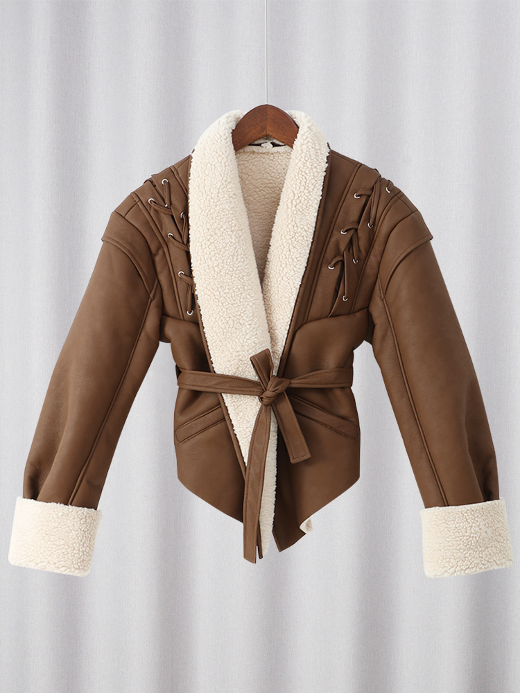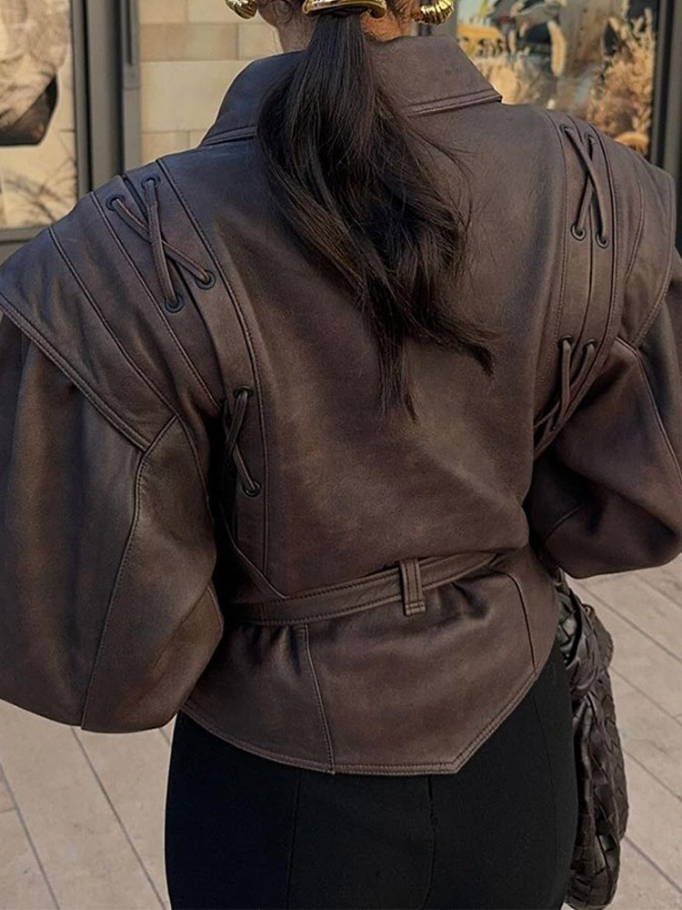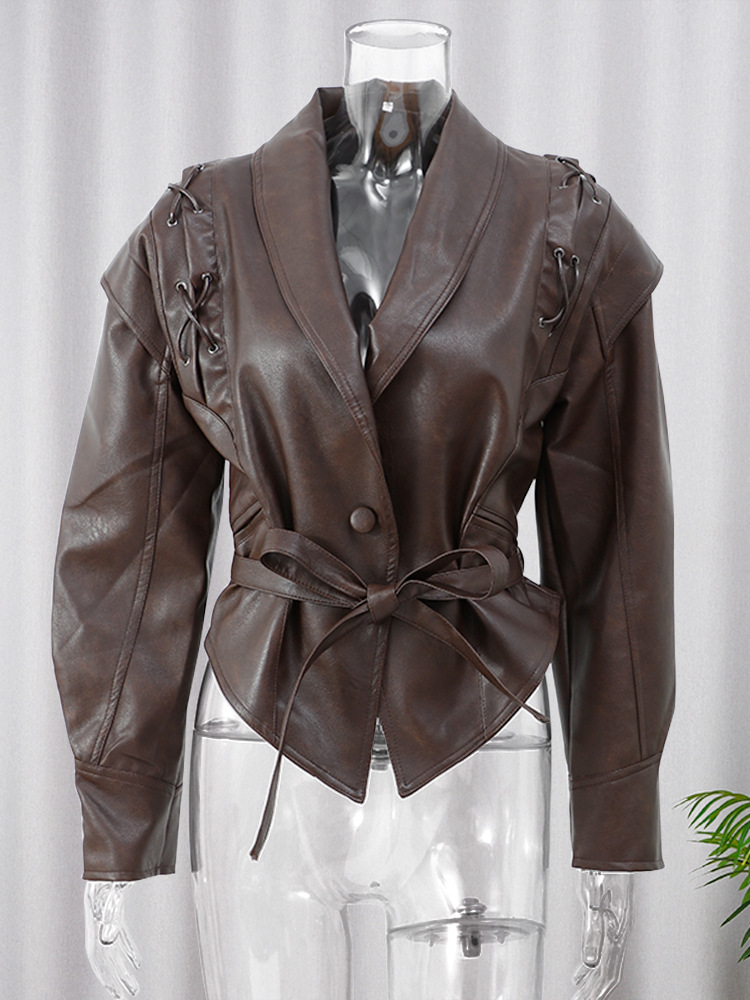 진짜 샷-베스트 셀러 레이스 업 짧은 가죽 자켓 코트 2024 가을과 겨울 크로스 보더 숙녀의 거리 개성 가죽 코트