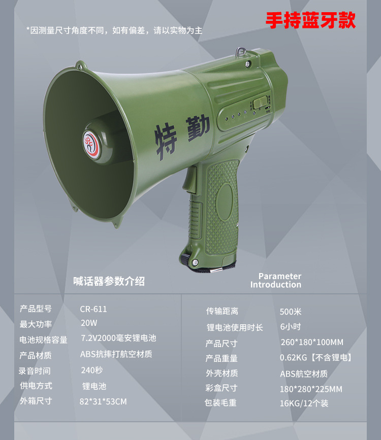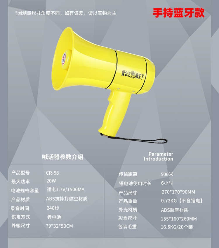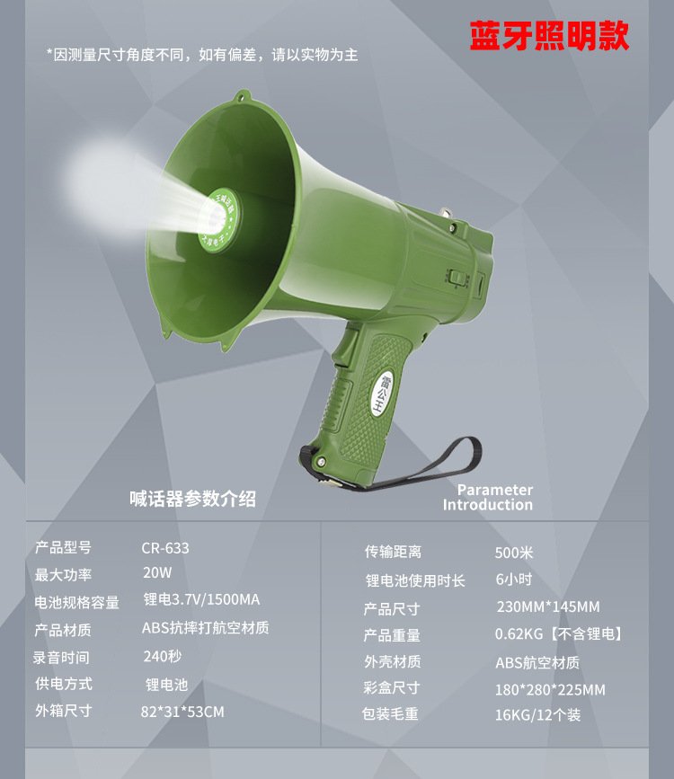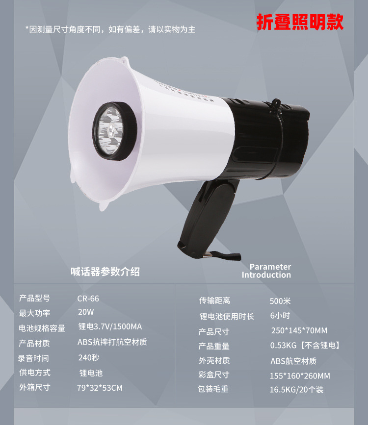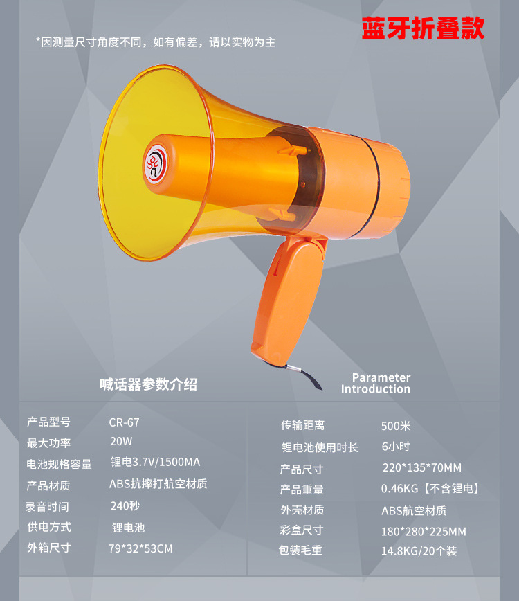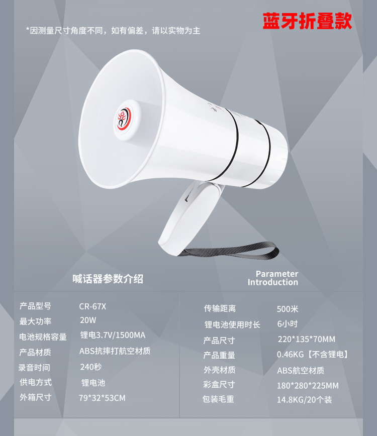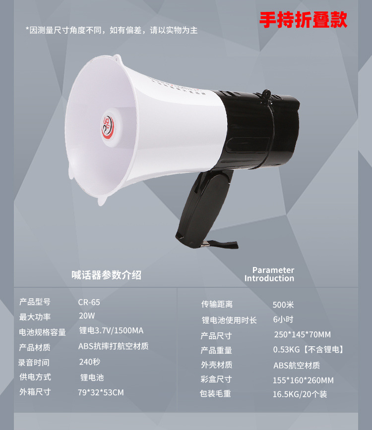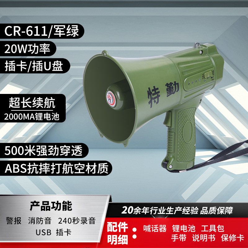 Thunder King 20W 휴대용 메가폰 야외 스피커 메가폰 다기능 접이식 메가폰 도매스토어 가기