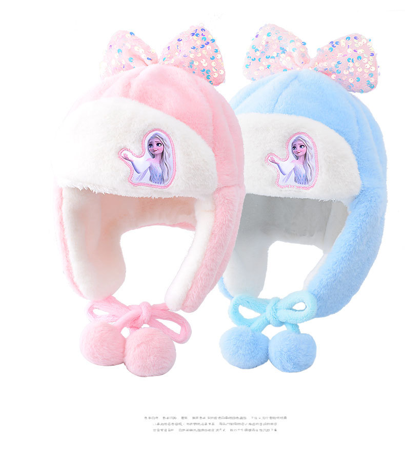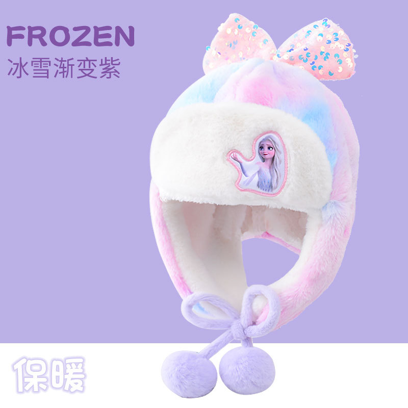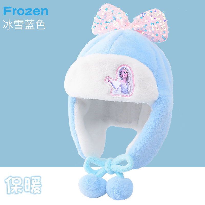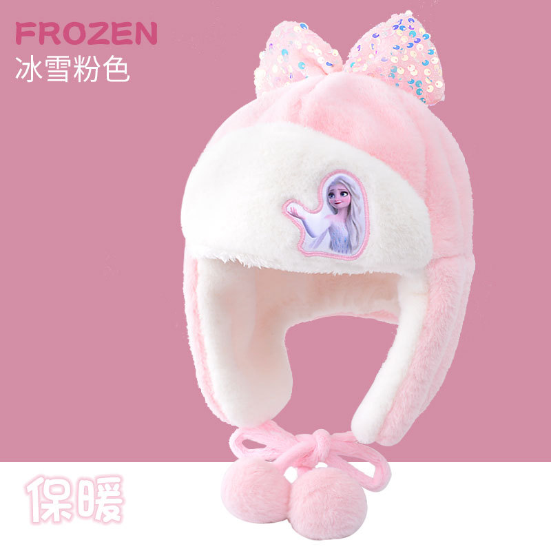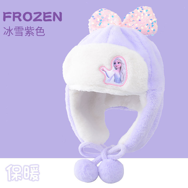 디즈니 어린이 귀 보호 모자 소녀 겨울 기모 따뜻한 봉제 모자 소녀 유치원 감기 방지 레이 펑 모자