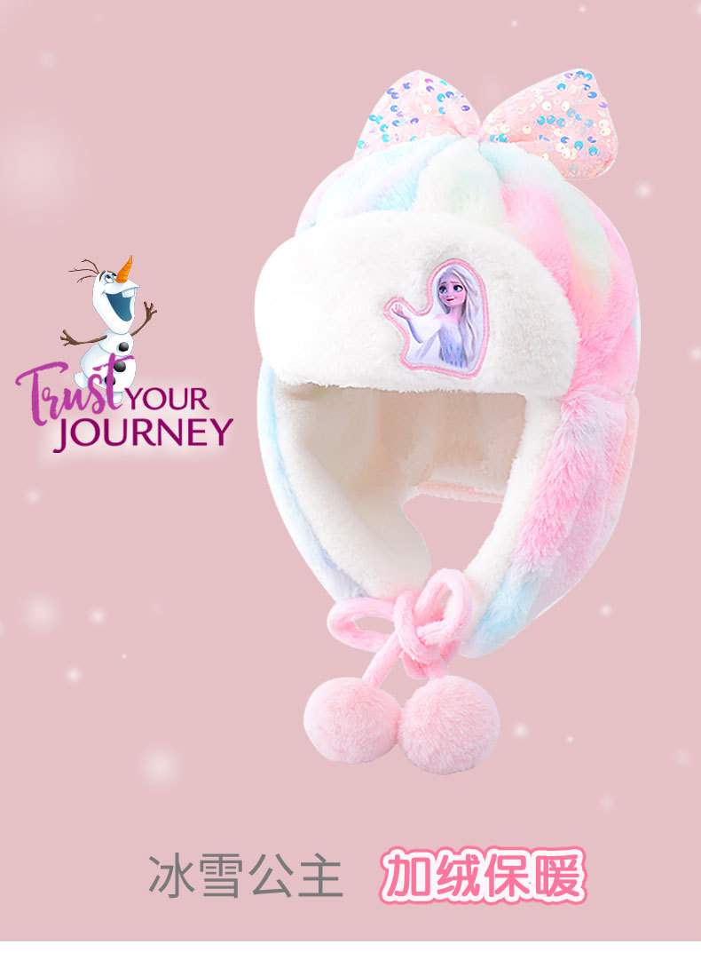디즈니 어린이 귀 보호 모자 소녀 겨울 기모 따뜻한 봉제 모자 소녀 유치원 감기 방지 레이 펑 모자스토어 가기