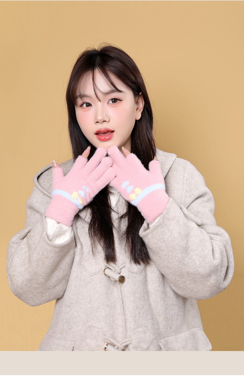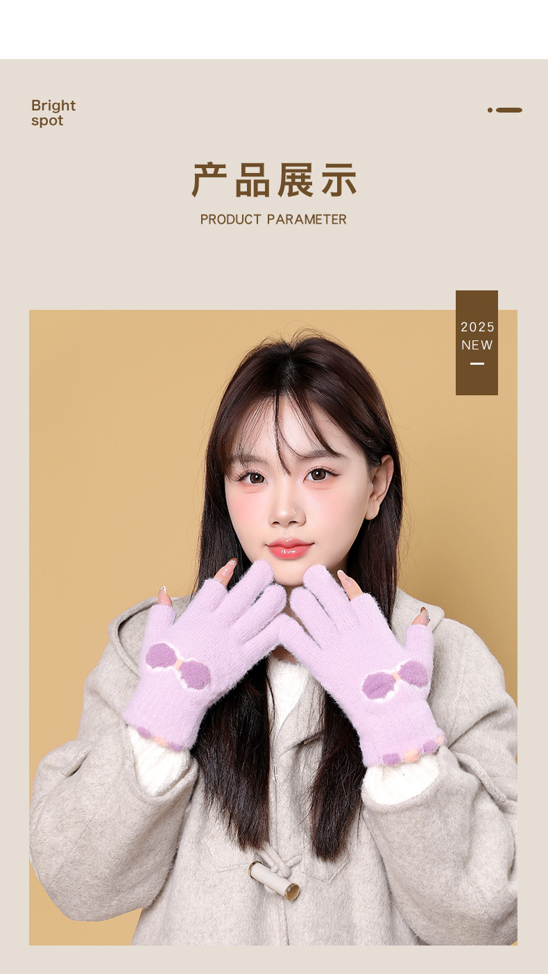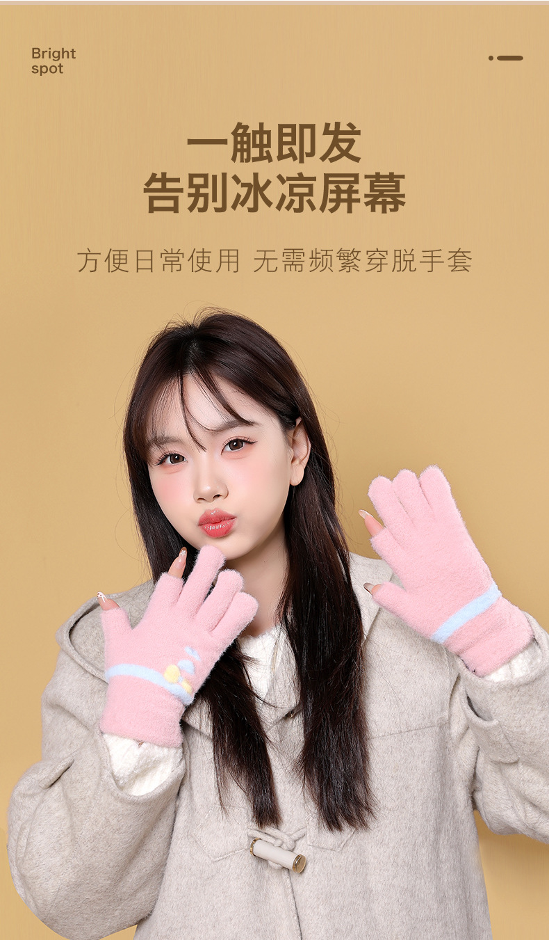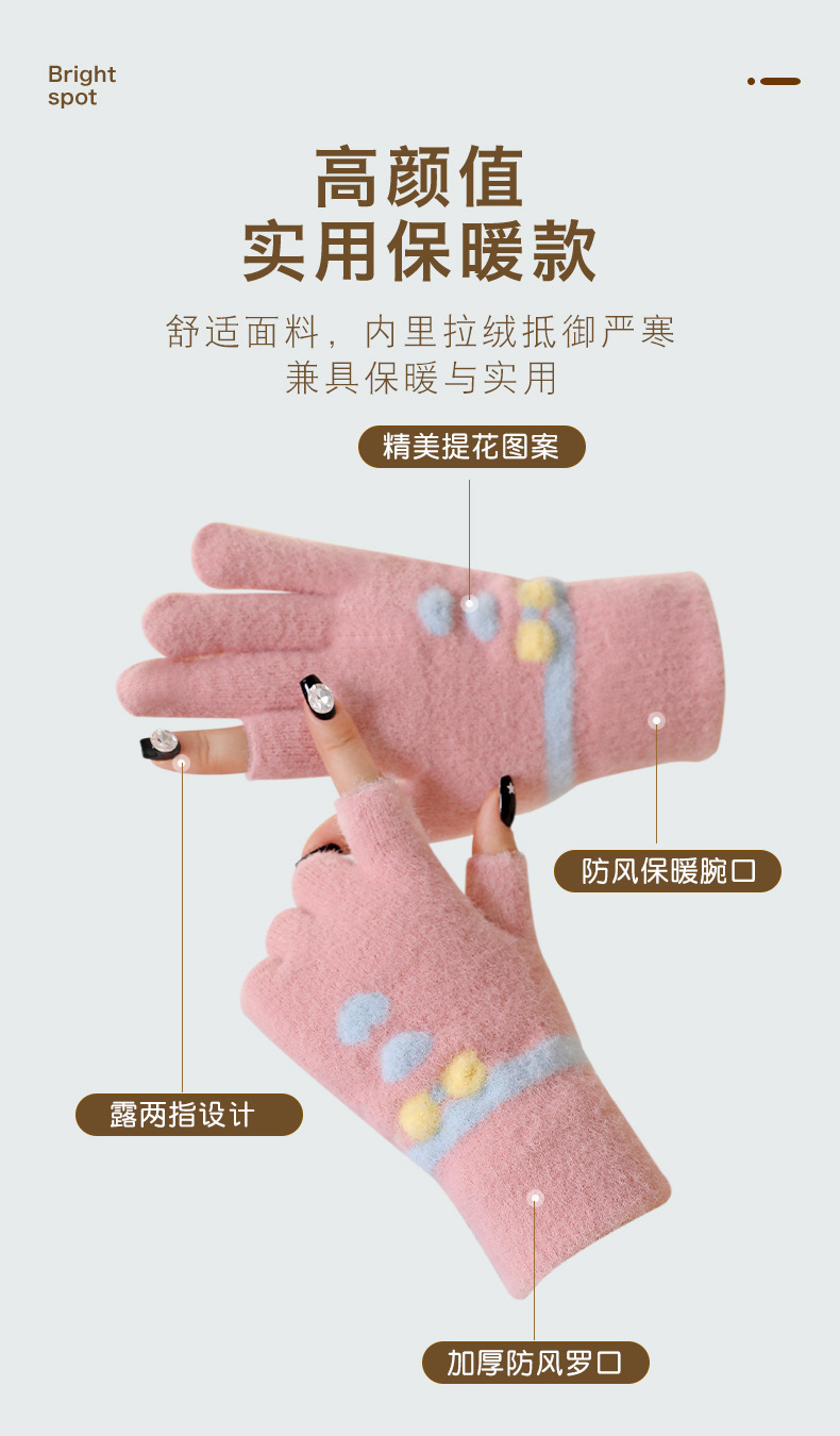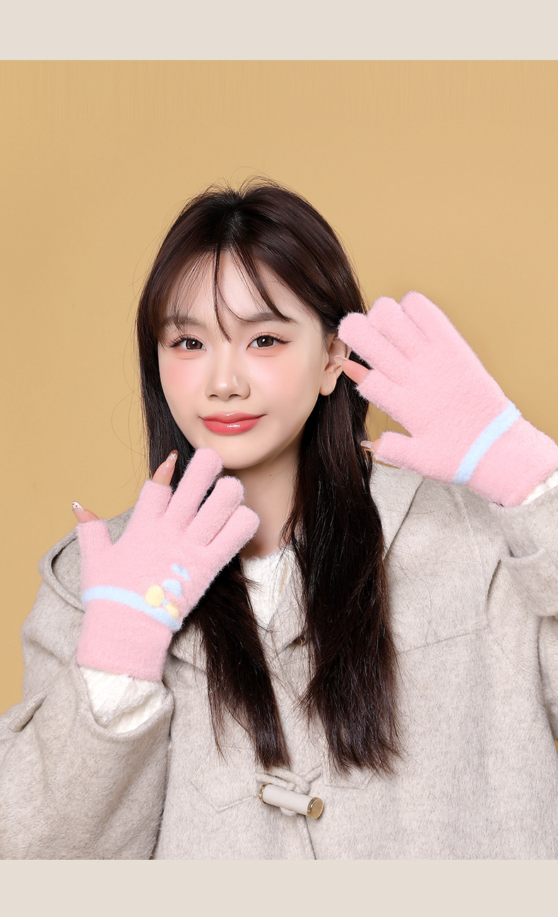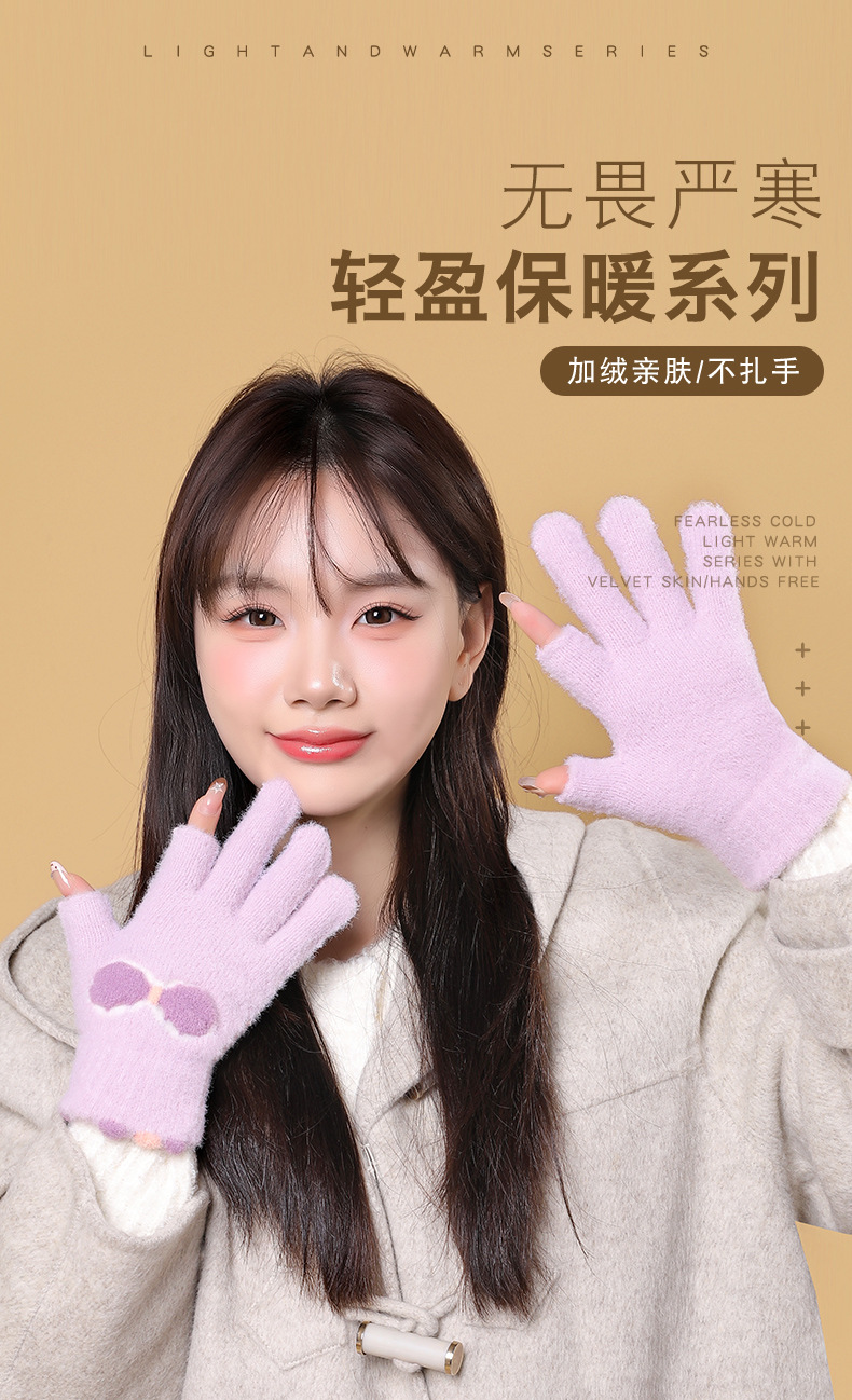 여성용 겨울용 따뜻한 니트 양모 장갑, 두 손가락 노출, 방한, 그림 그리기, 글쓰기, 학생용, 두 손가락으로 휴대폰 사용 가능