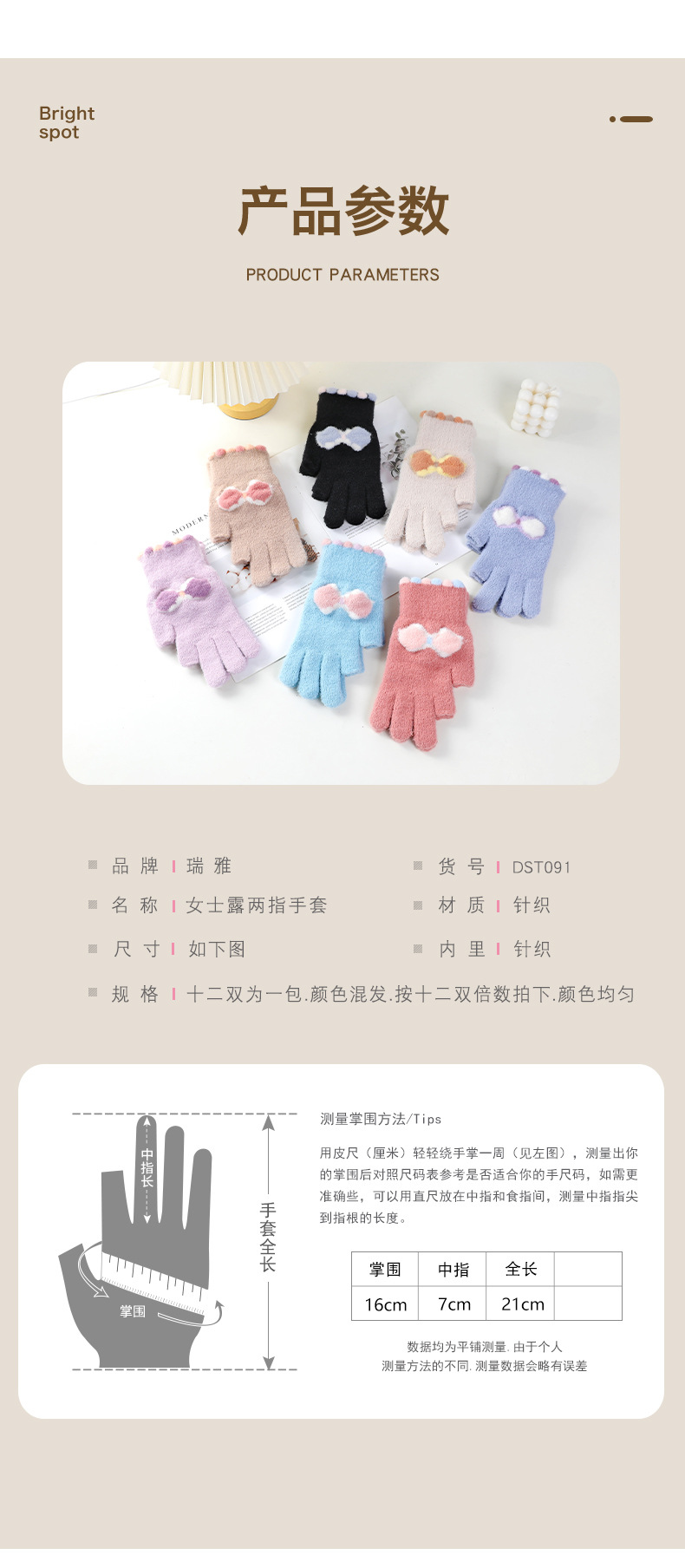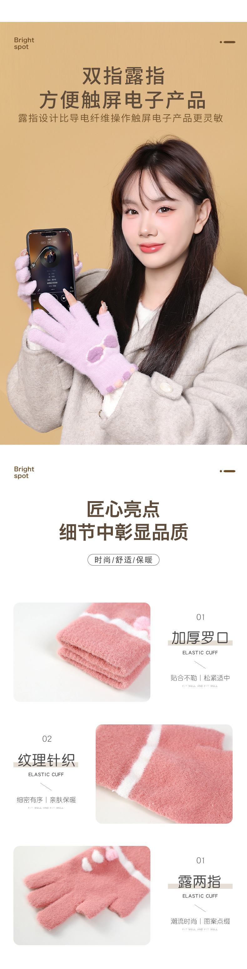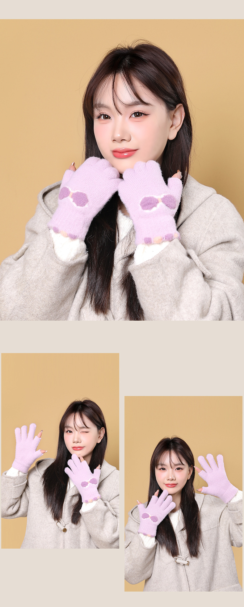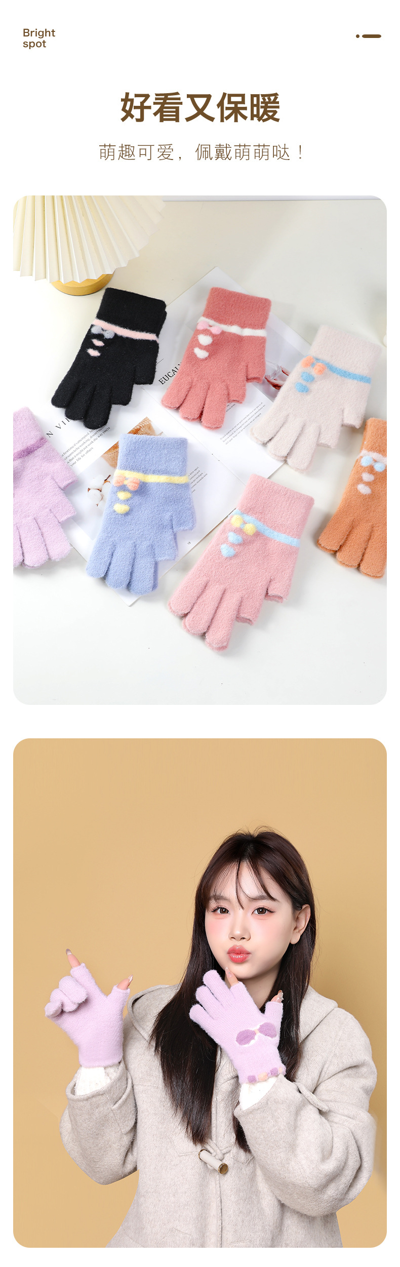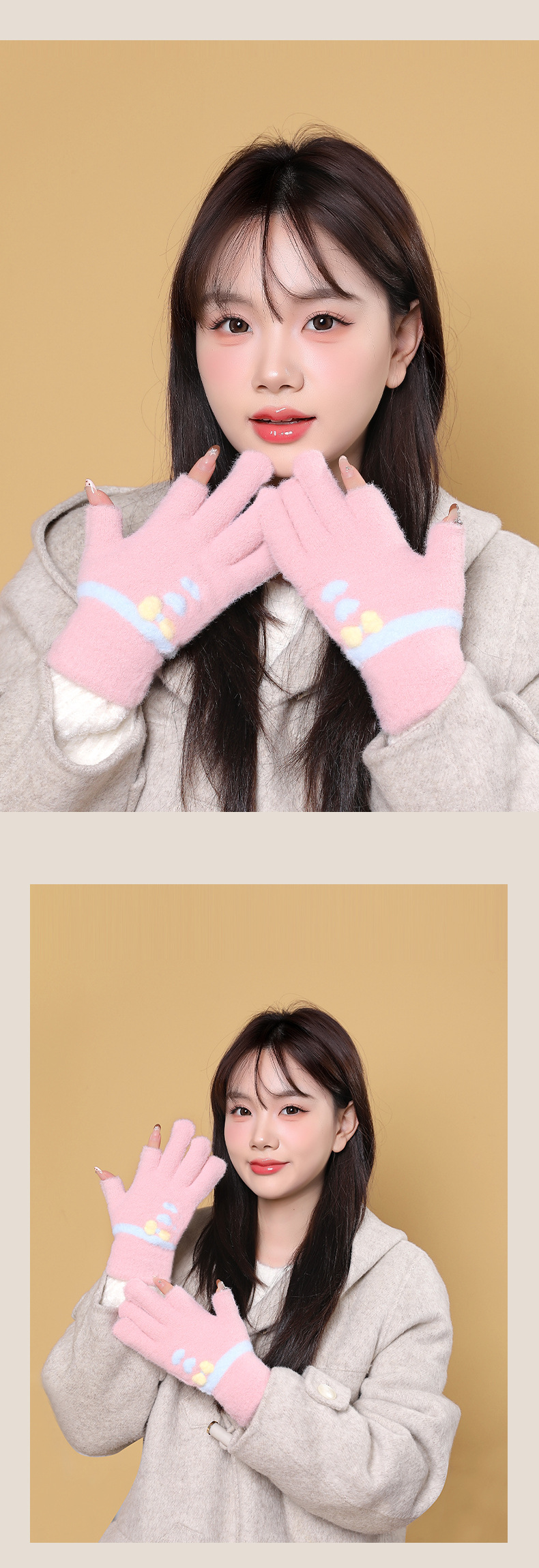 여성용 겨울용 따뜻한 니트 양모 장갑, 두 손가락 노출, 방한, 그림 그리기, 글쓰기, 학생용, 두 손가락으로 휴대폰 사용 가능