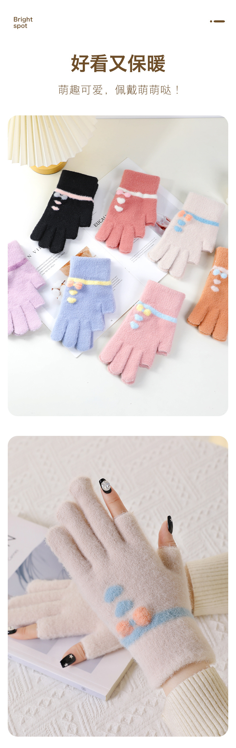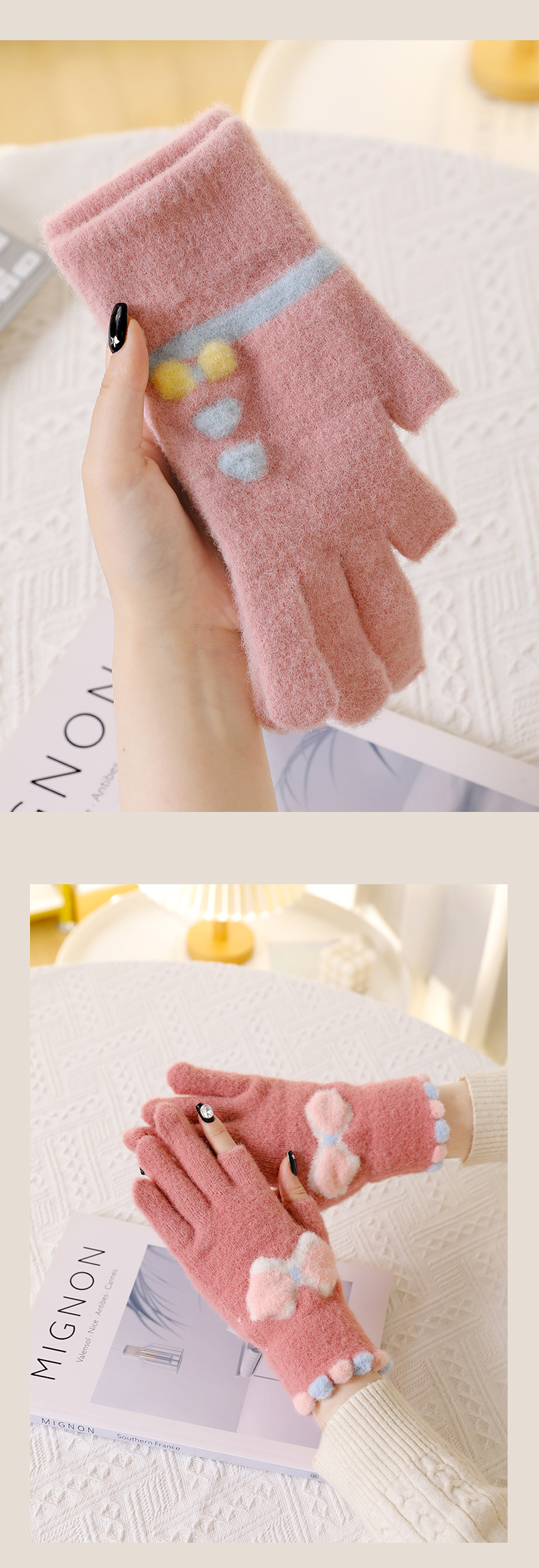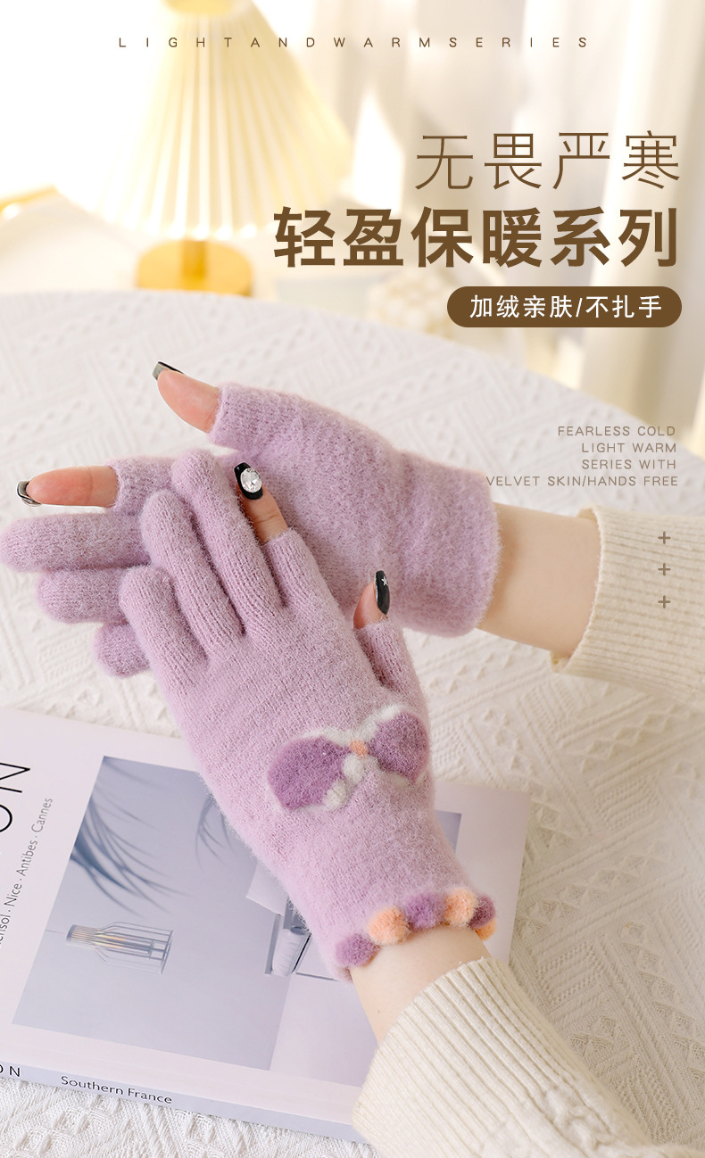 겨울철 두 손가락을 드러낸 여성용 모직장갑, 따뜻한 니트 방한, 학생들이 두 손가락으로 그림을 그리고 글을 쓰고, 가을에 휴대폰을 가지고 놀 수 있는 두 손가락스토어 가기