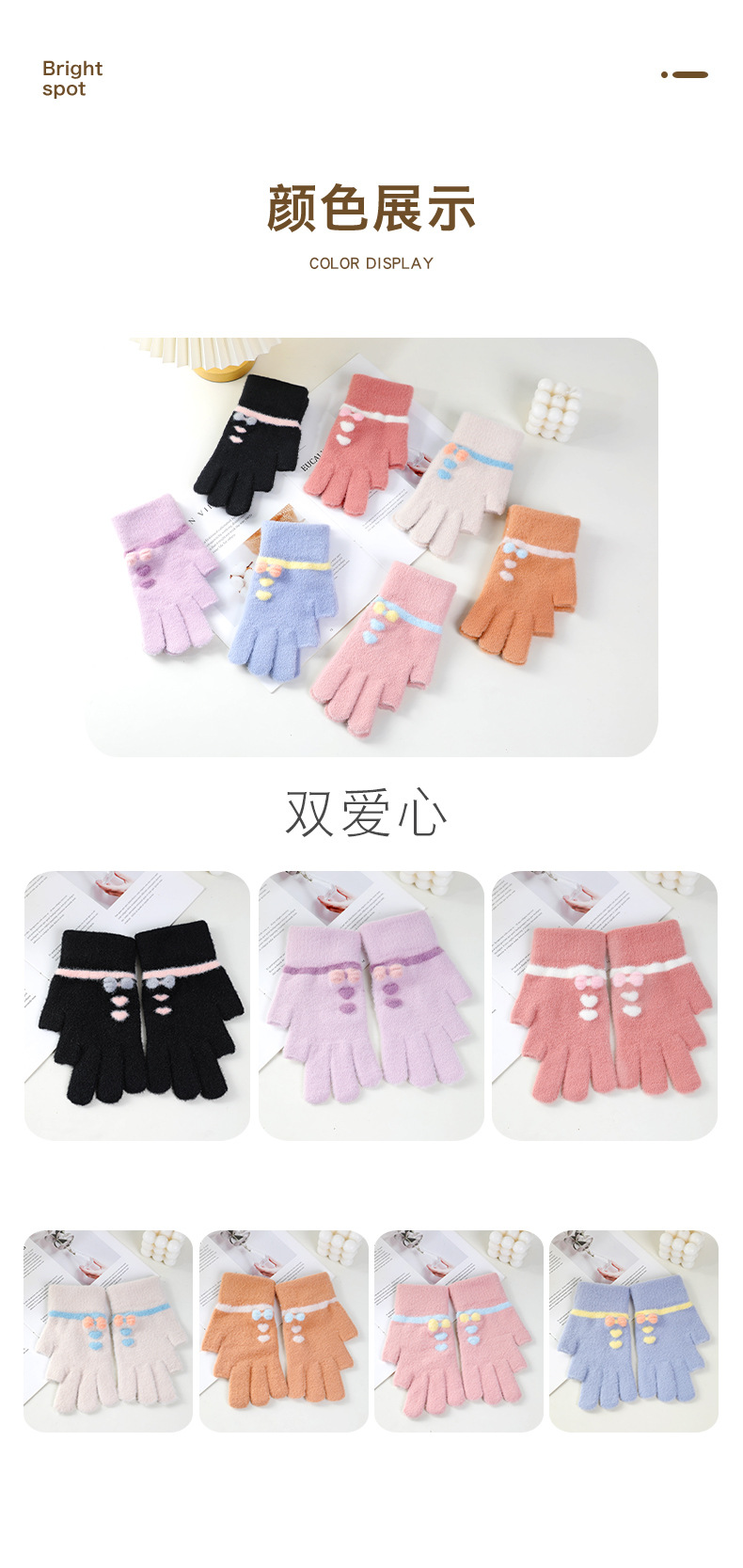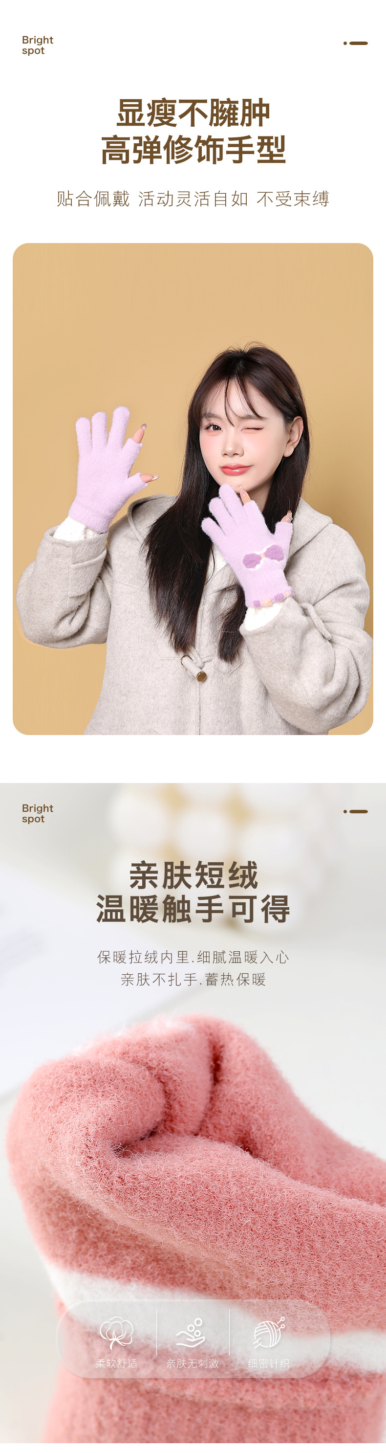 여성용 겨울용 따뜻한 니트 양모 장갑, 두 손가락 노출, 방한, 그림 그리기, 글쓰기, 학생용, 두 손가락으로 휴대폰 사용 가능스토어 가기