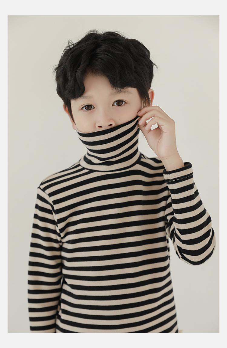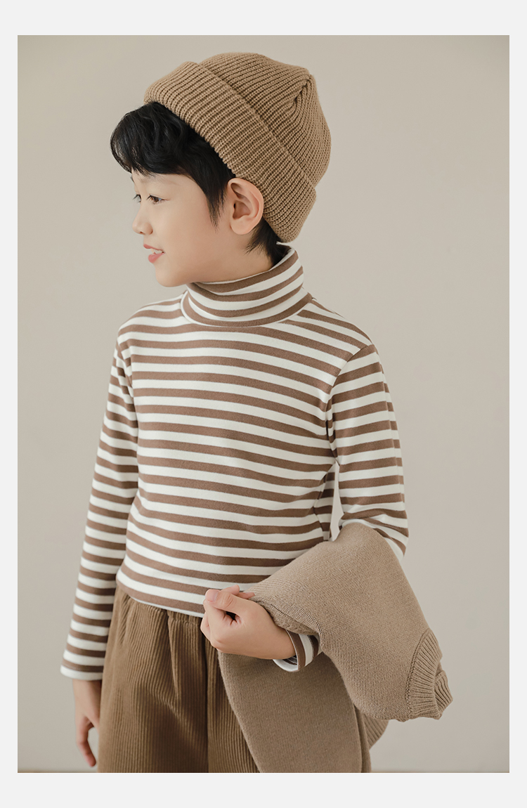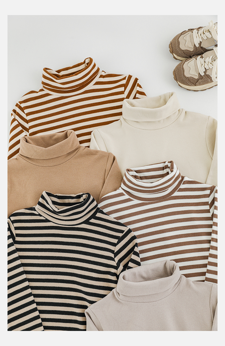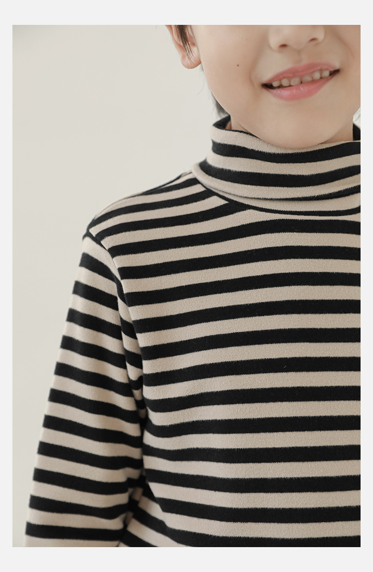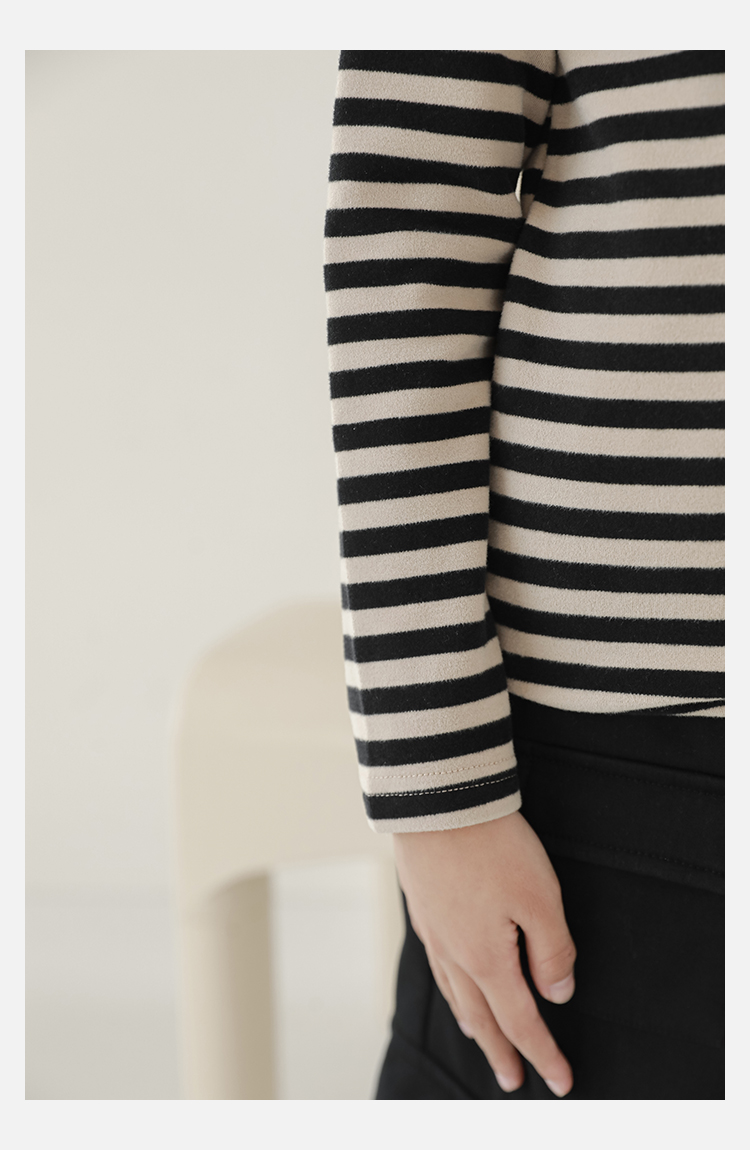 • 터틀넥 밑단 셔츠 라이트 브라운 베이지 스트라이프 LQ0027