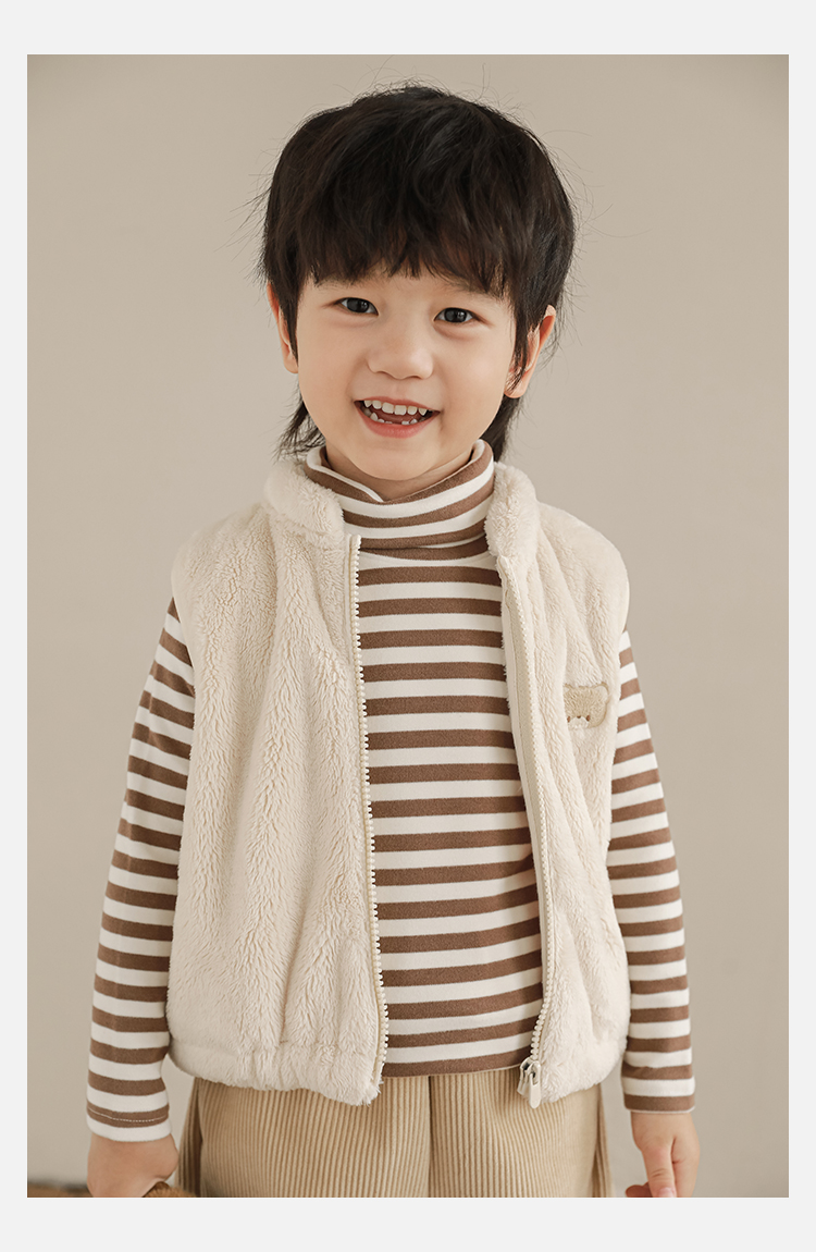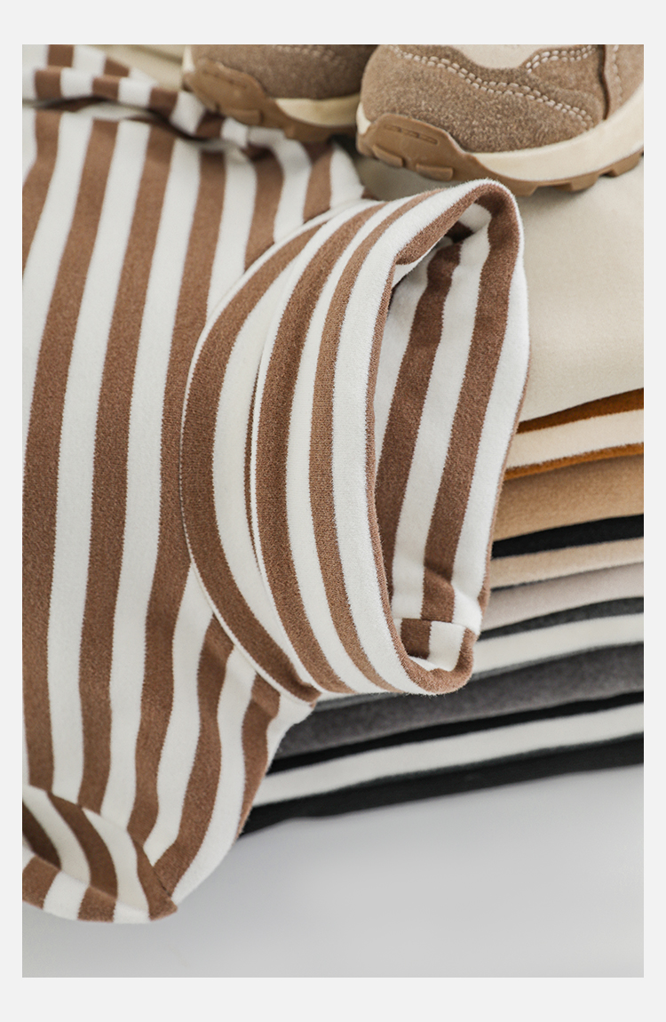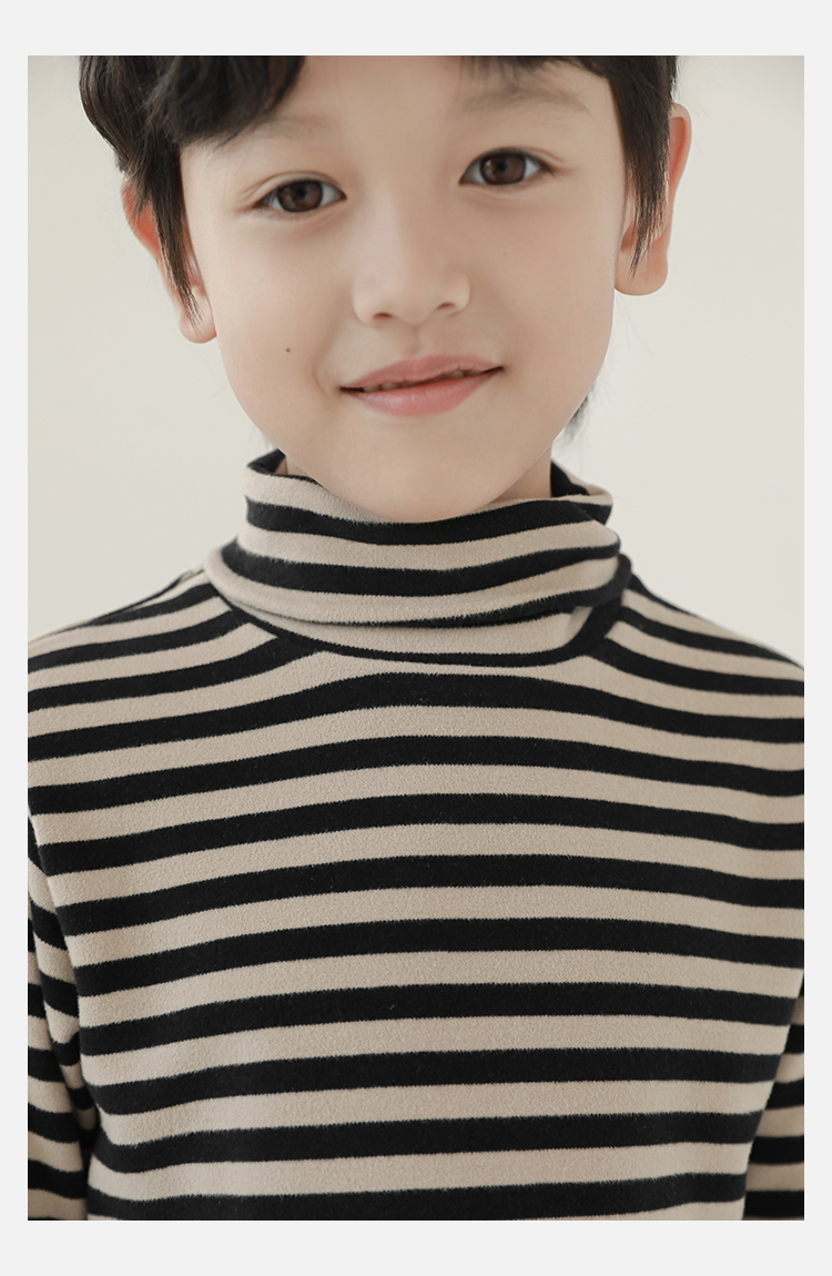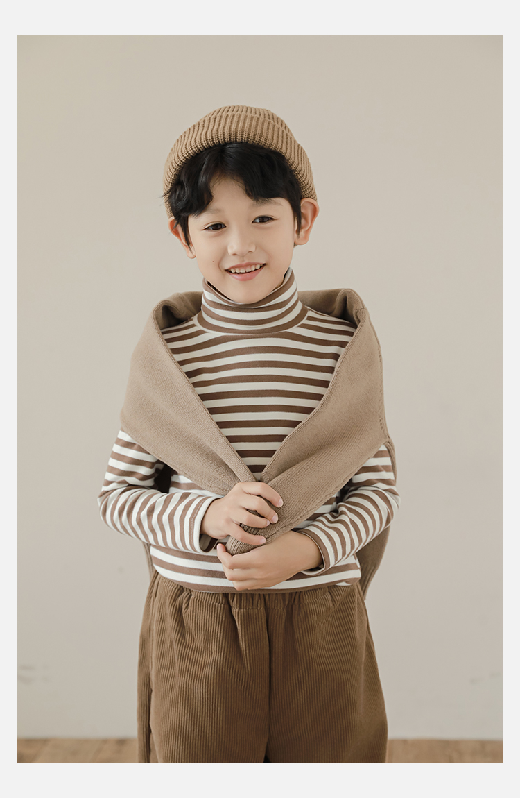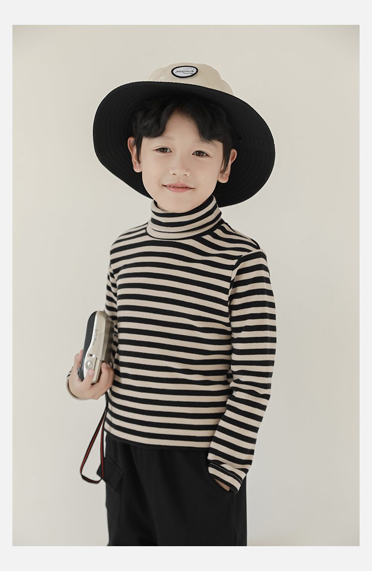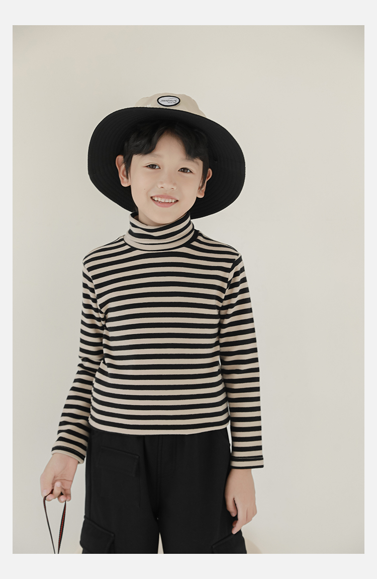 • 터틀넥 밑단 셔츠 라이트 브라운 베이지 스트라이프 LQ0027