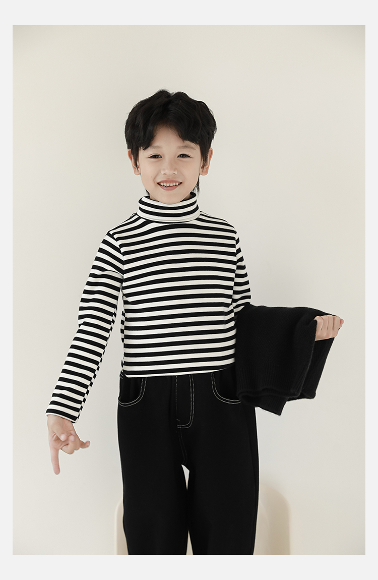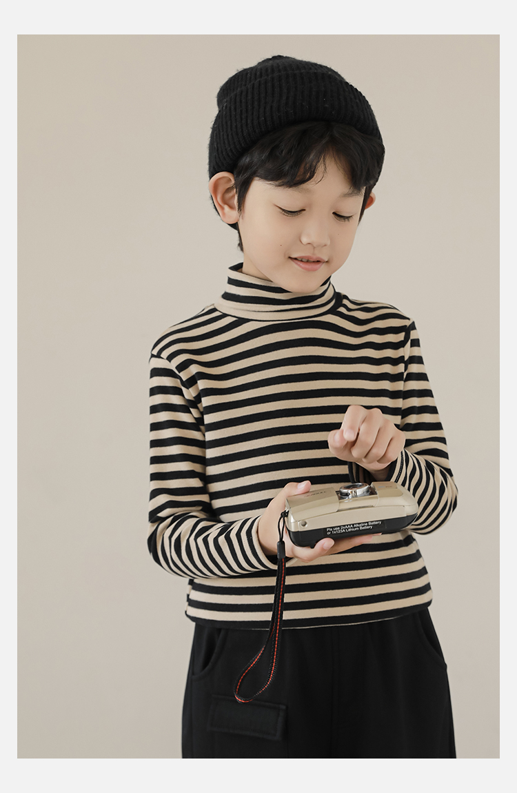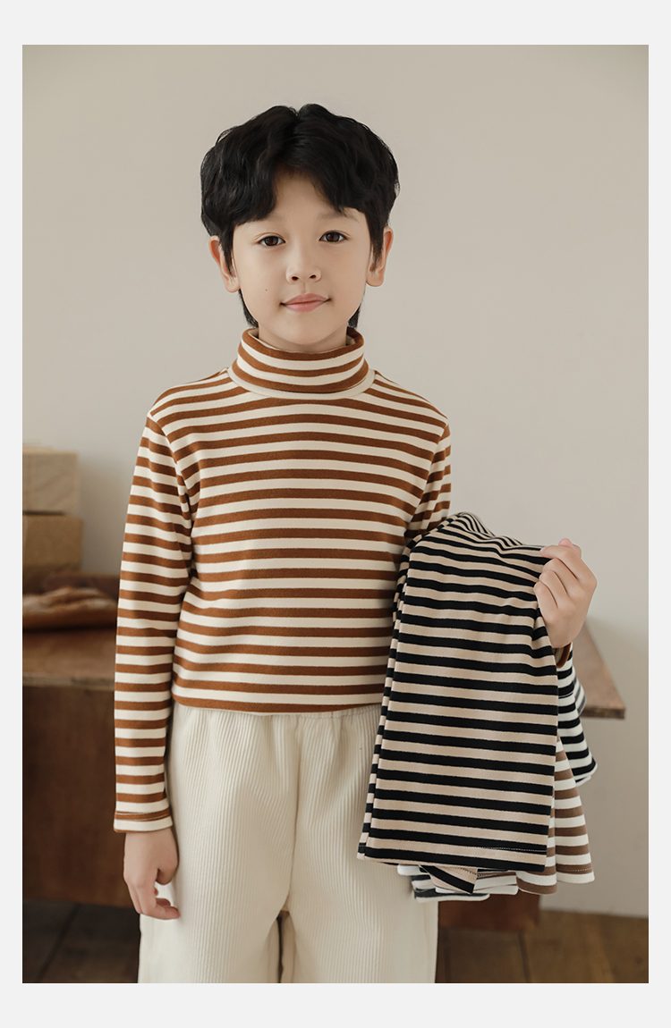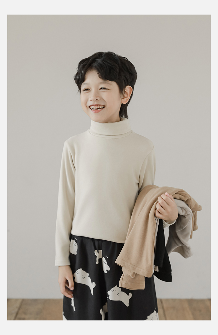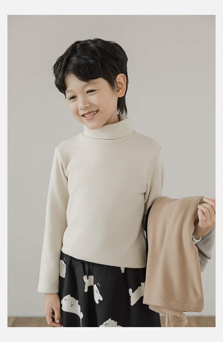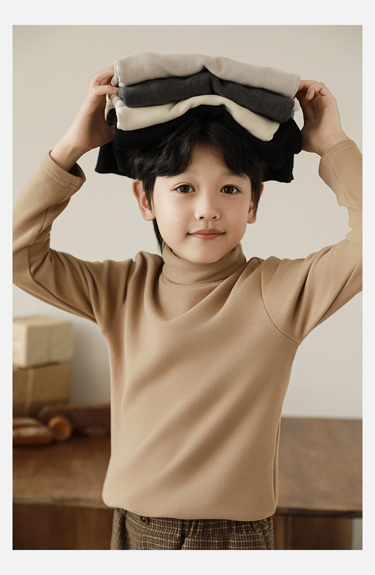 Wulibuyi Boys 2025 새로운 긴팔 터틀넥 양면 벨벳 바닥 셔츠 겨울 패션 캐주얼 다목적 티셔츠스토어 가기
