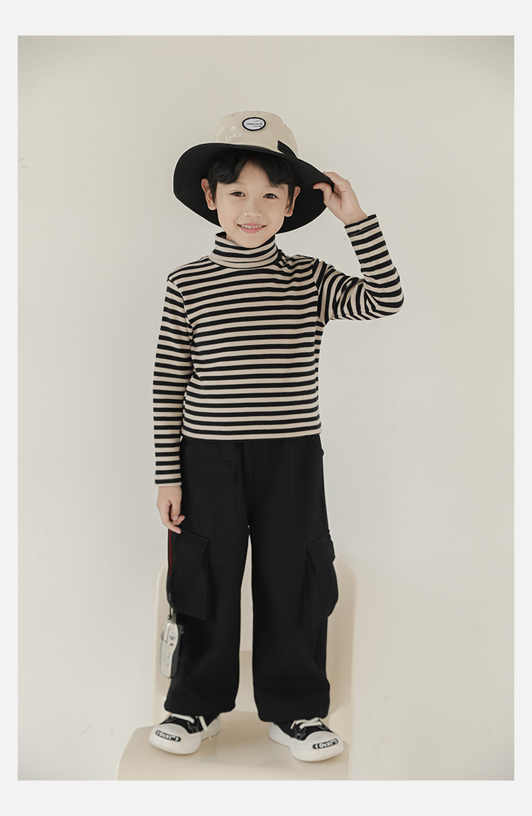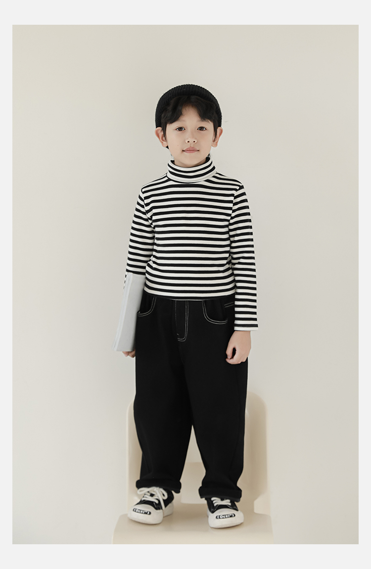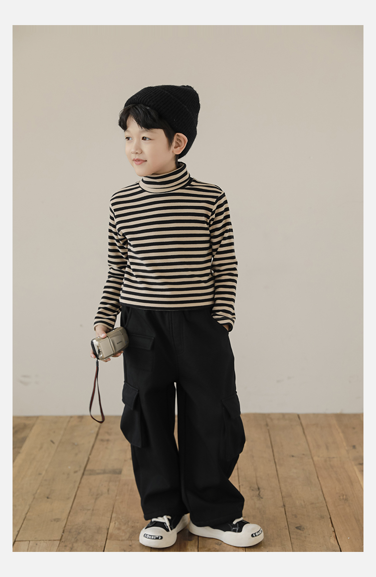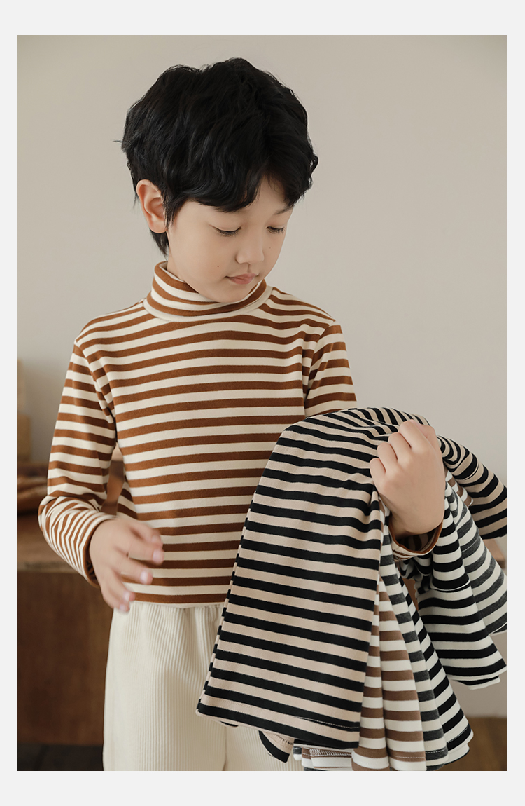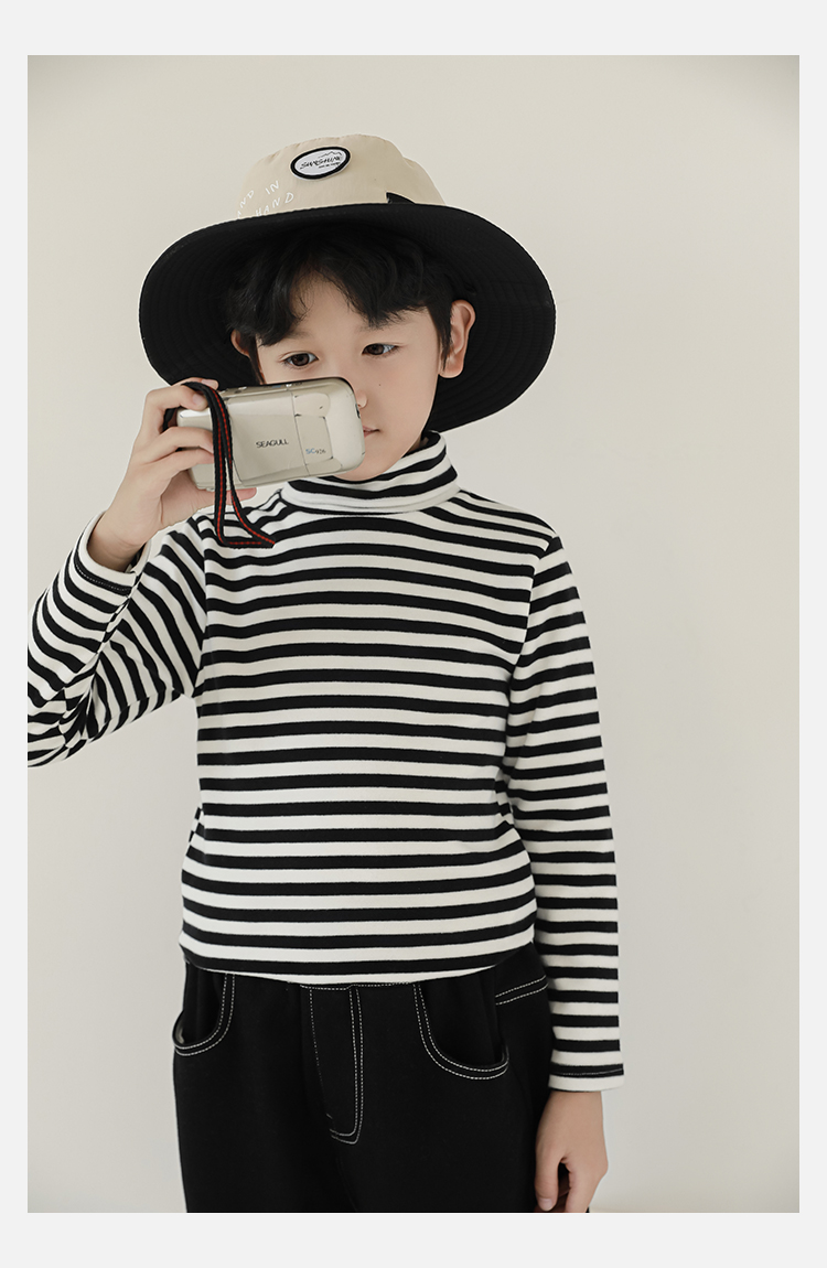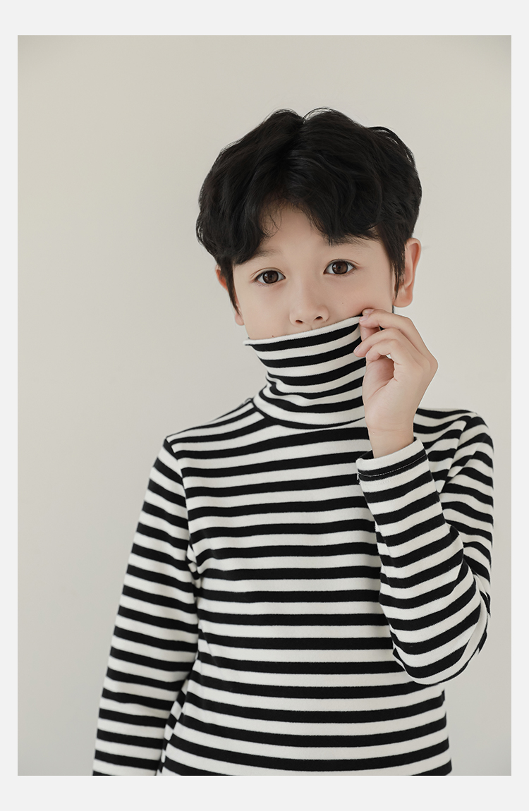 Wulibuyi Boys 2025 새로운 긴팔 터틀넥 양면 벨벳 바닥 셔츠 겨울 패션 캐주얼 다목적 티셔츠스토어 가기