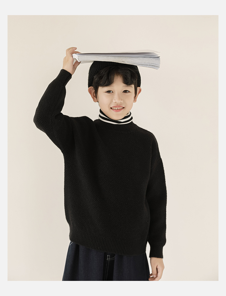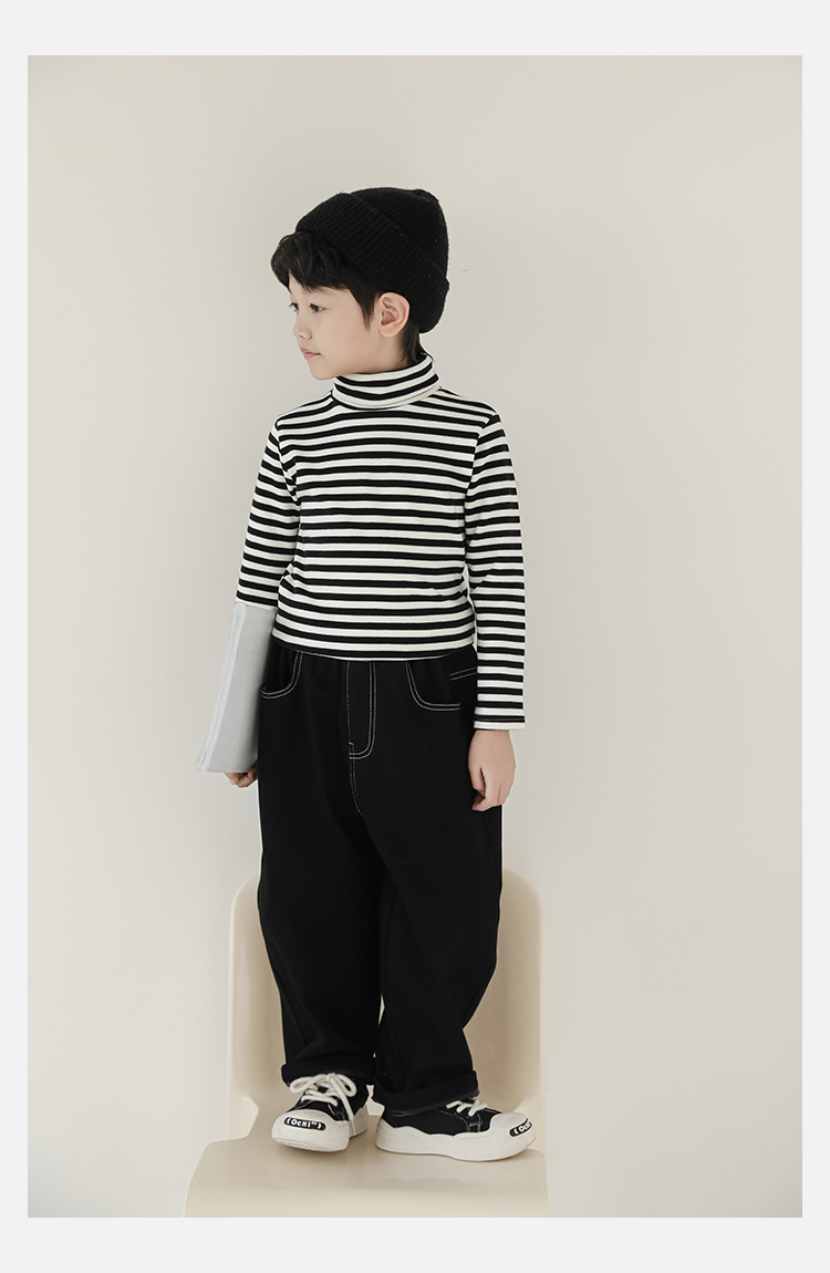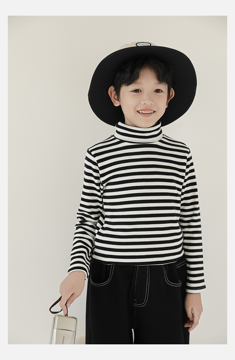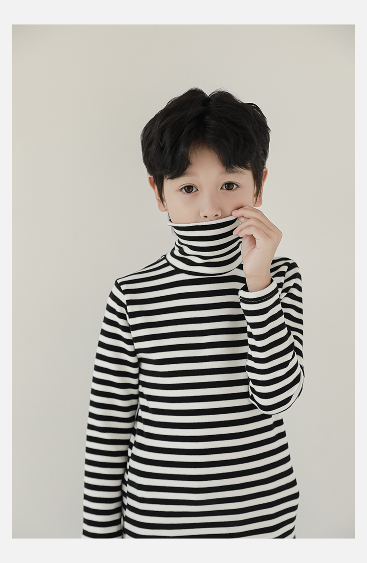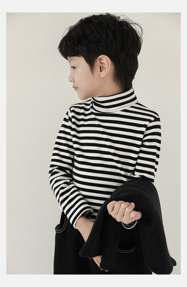 • 터틀넥 밑단 셔츠 블랙 라이스 스트라이프 LQ0027