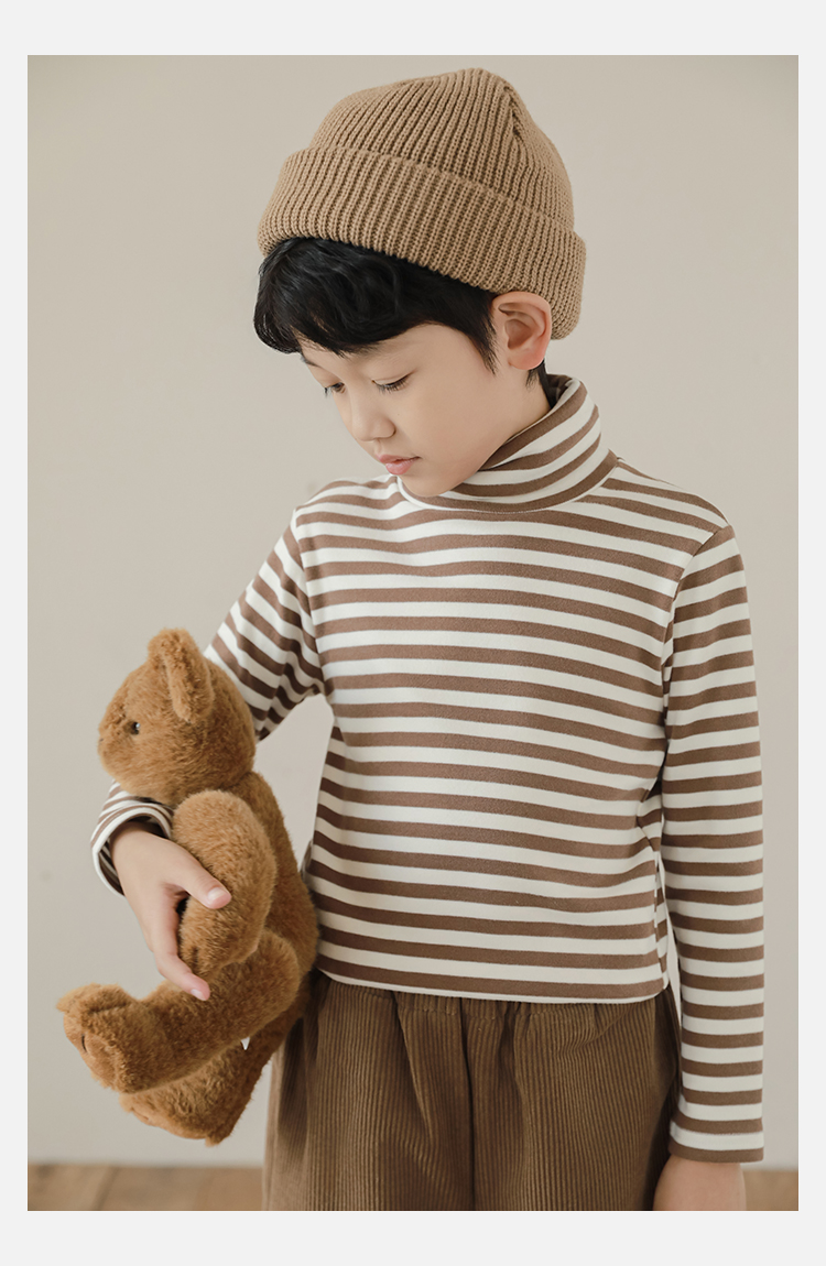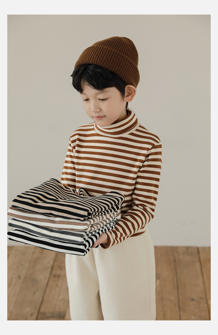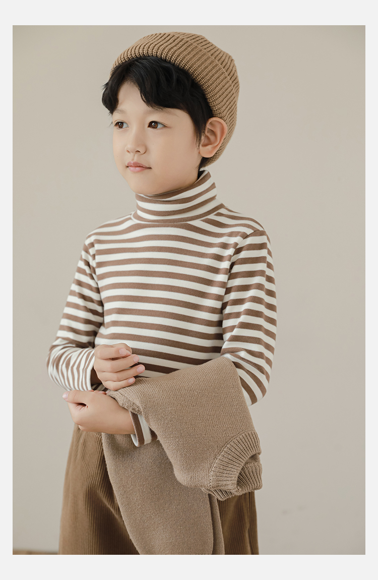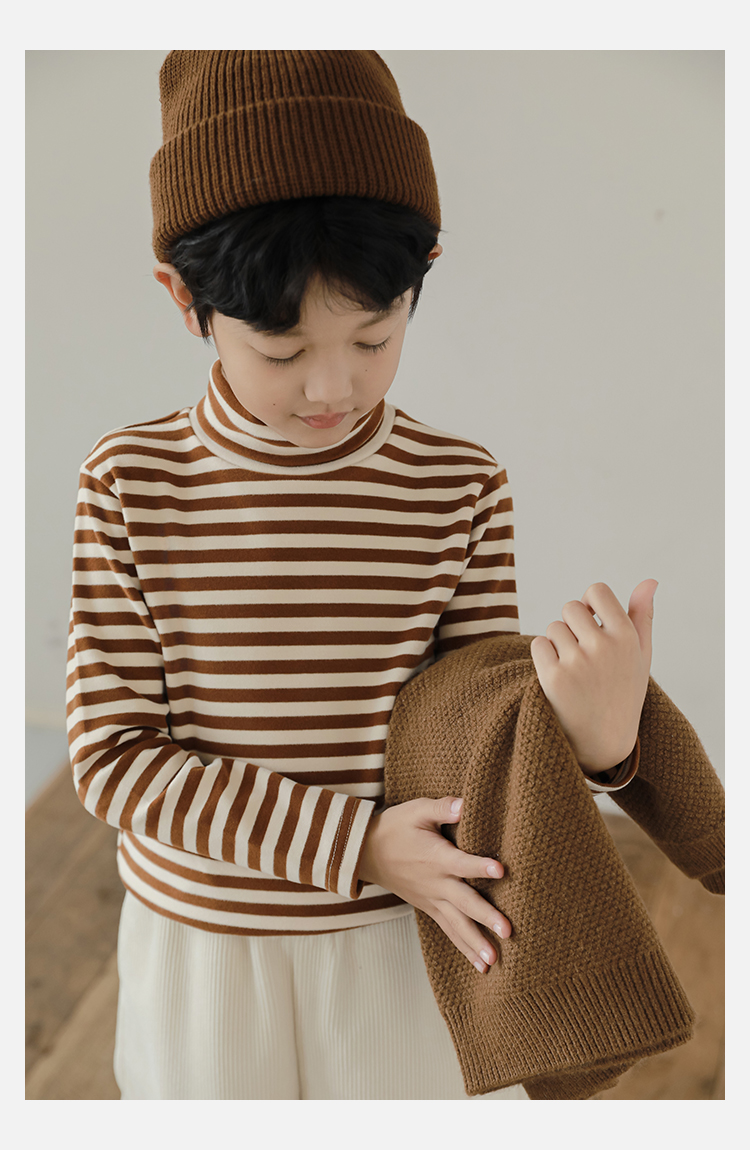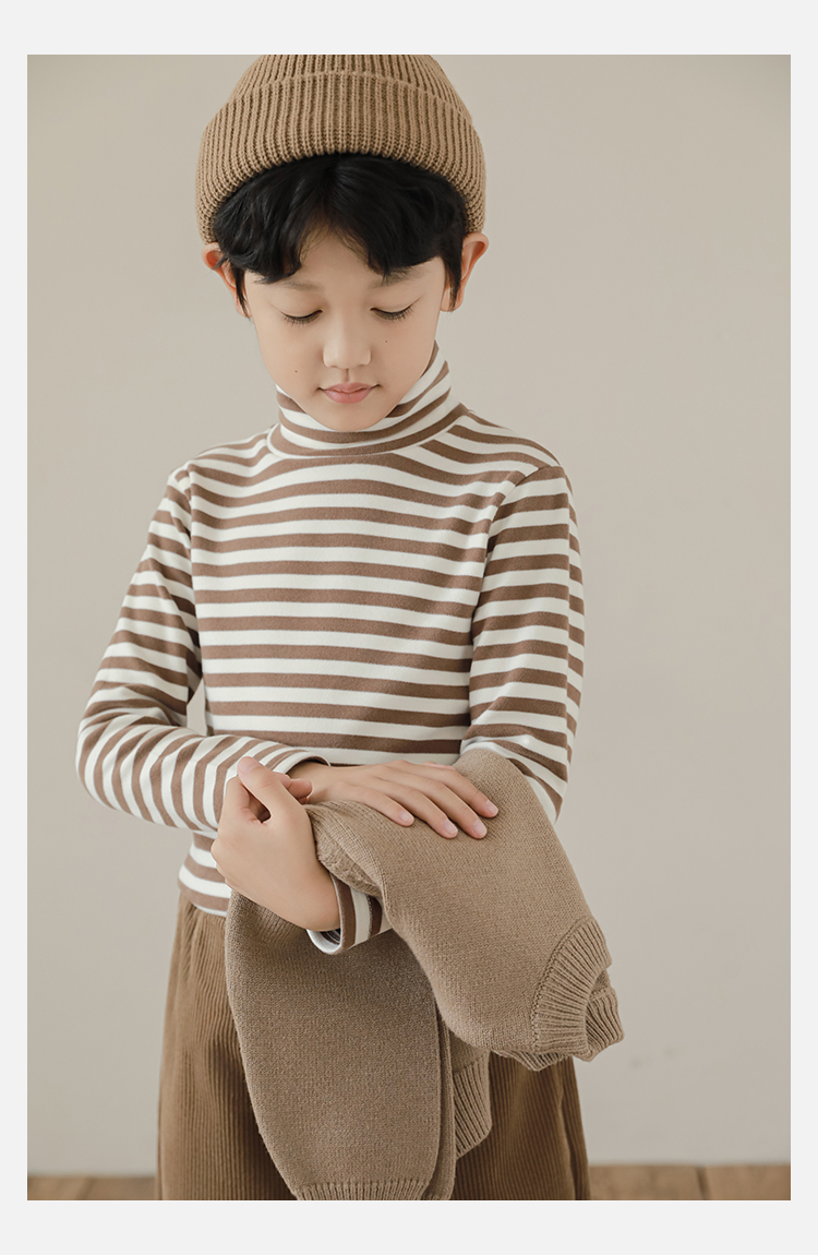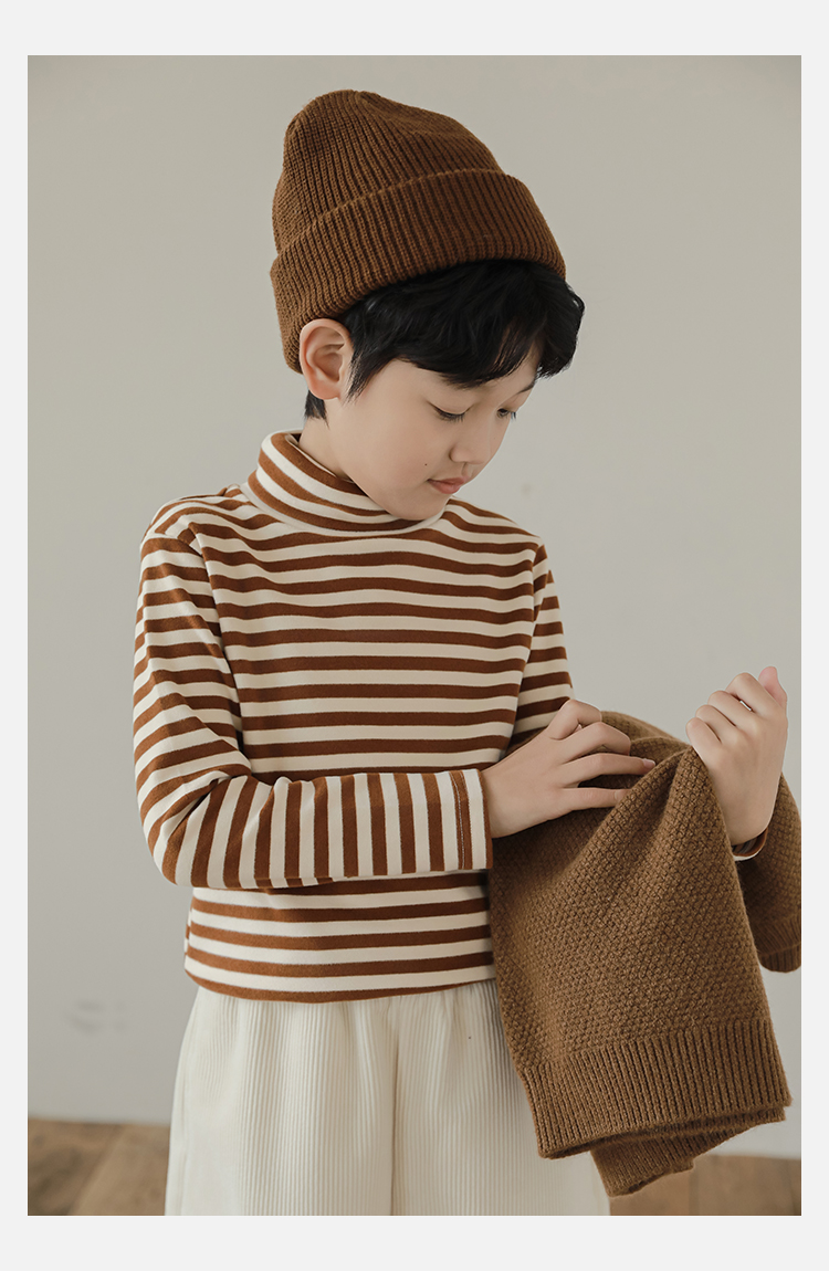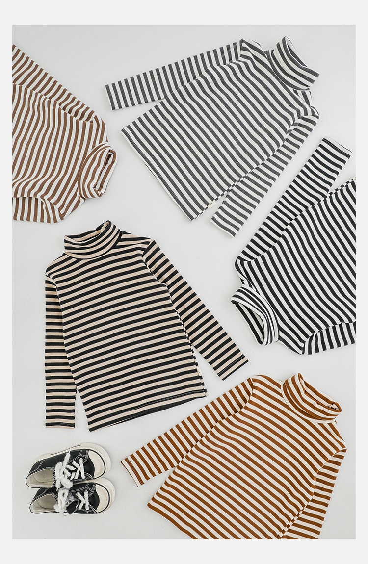 • 터틀넥 밑단 셔츠 커피 스트라이프 LQ0027