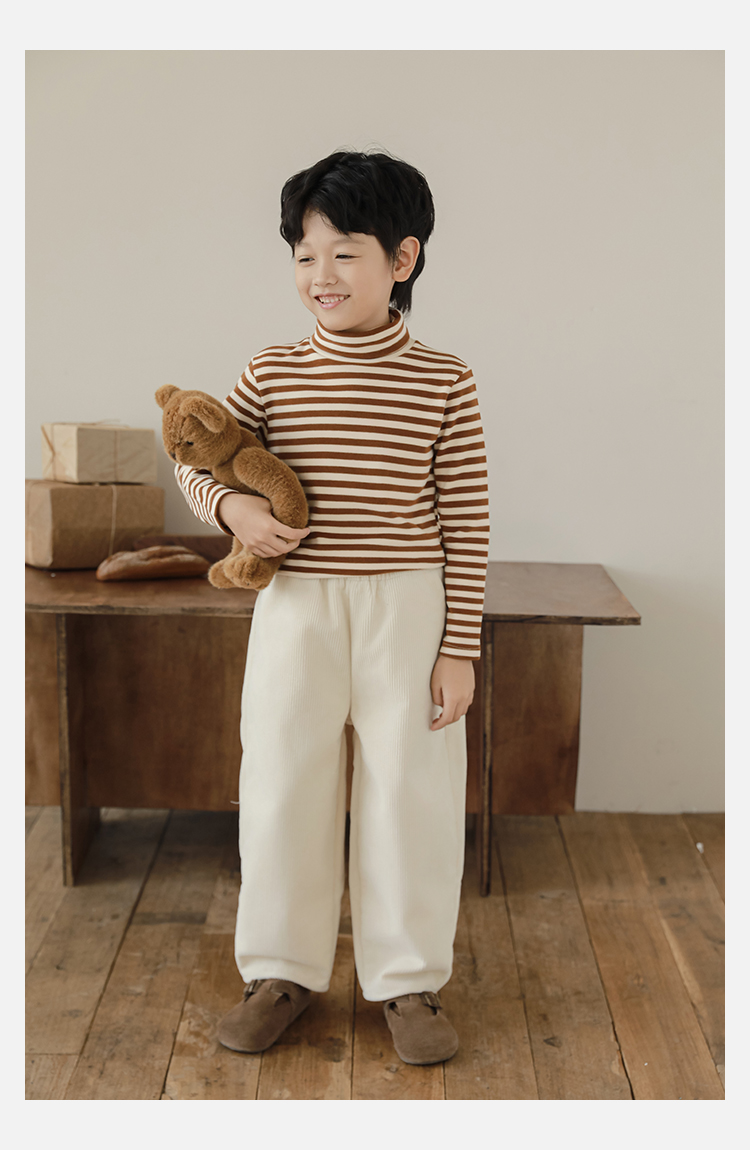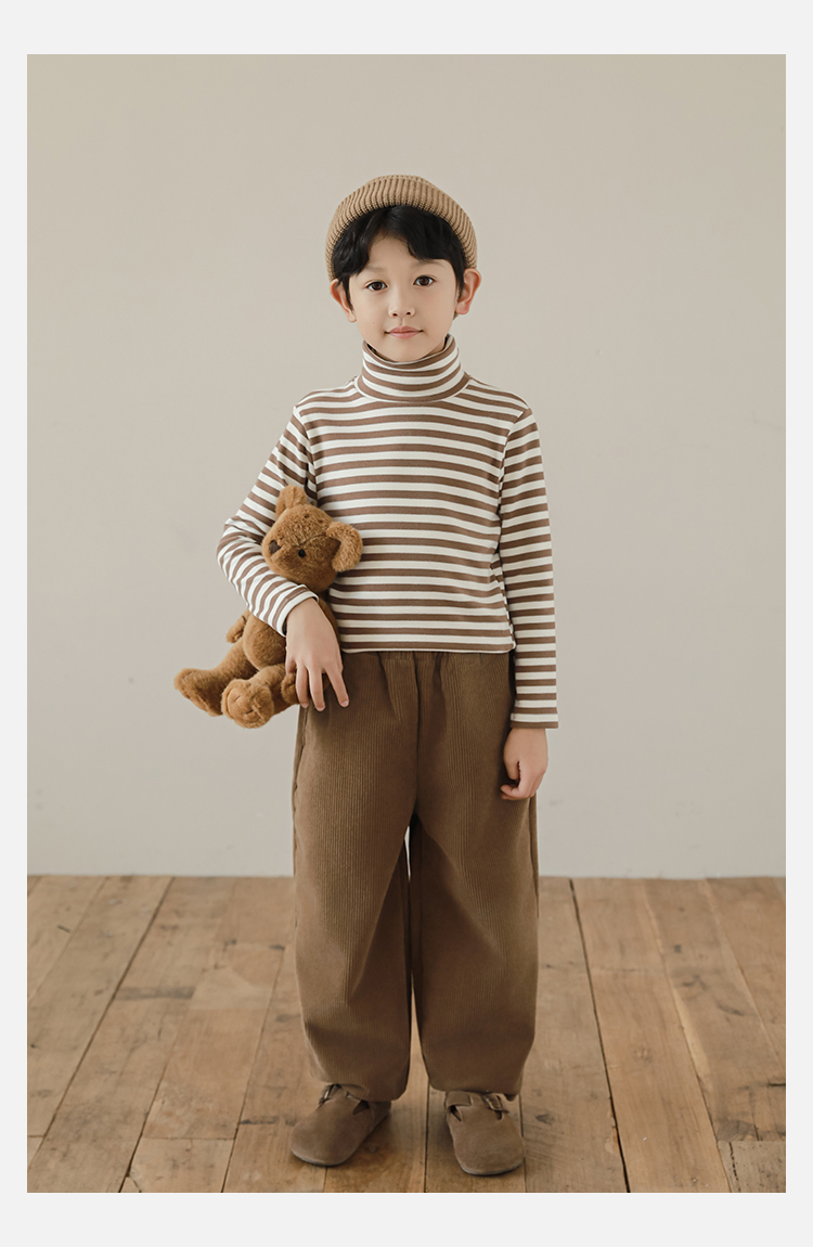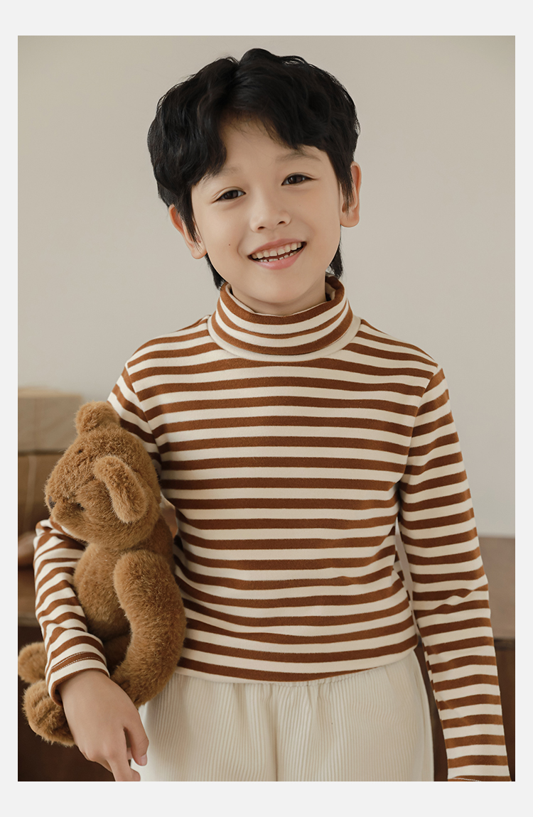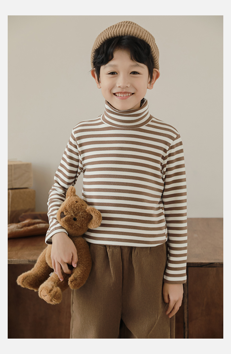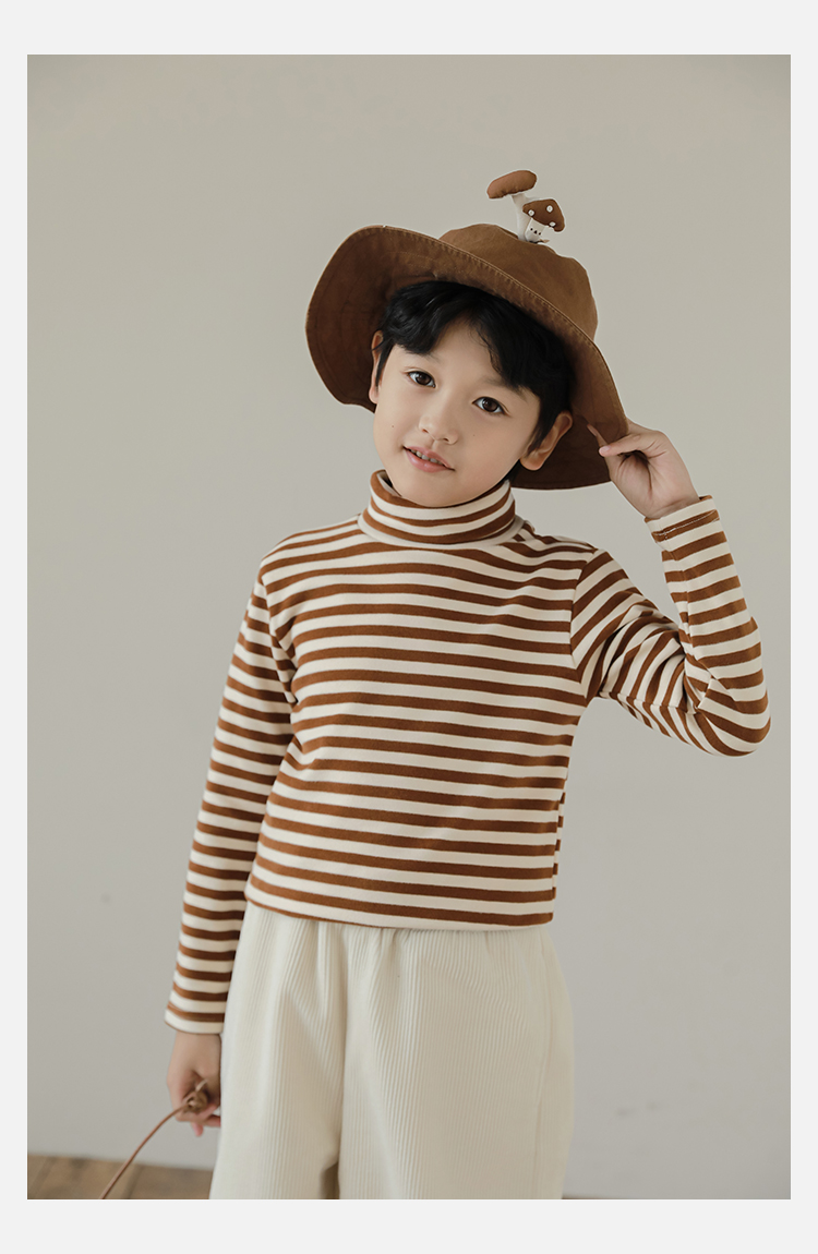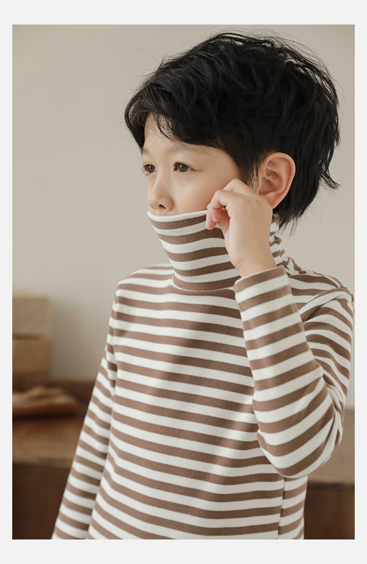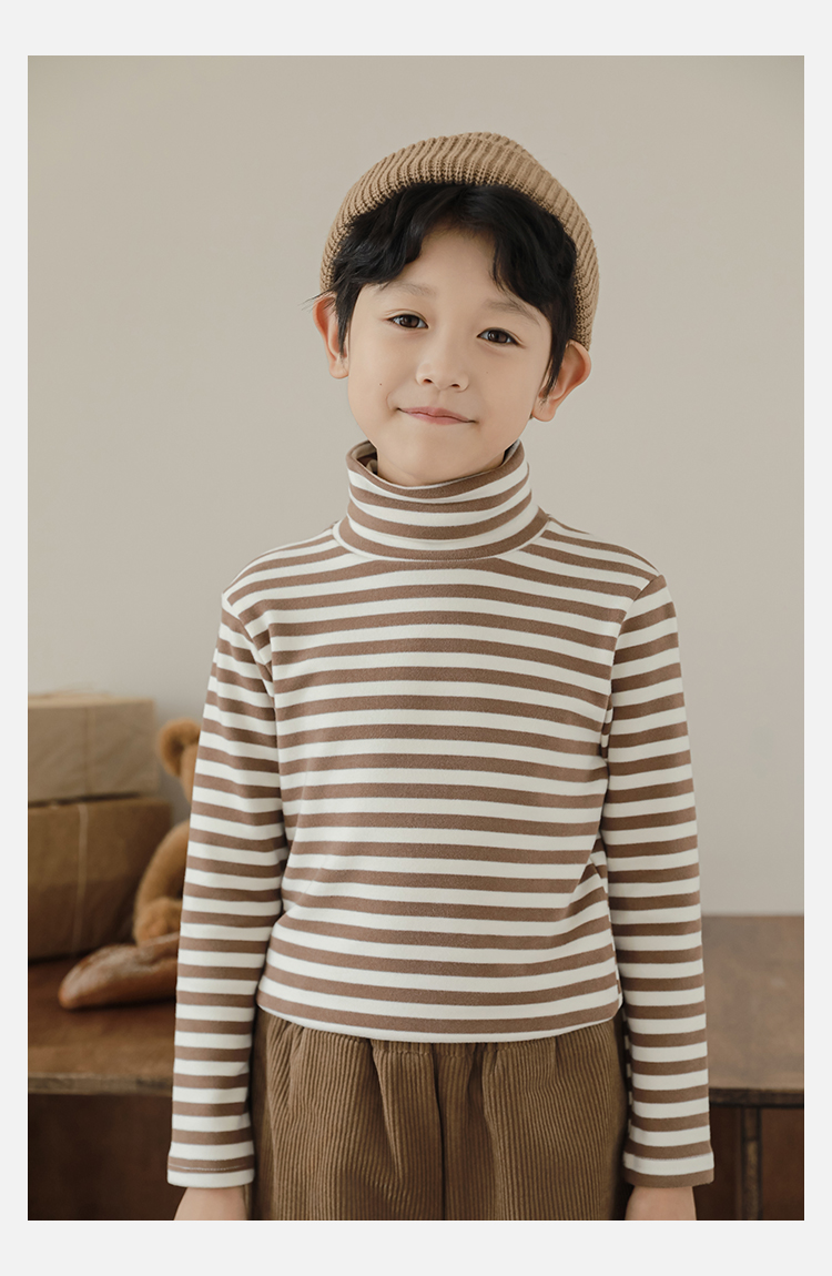 • 터틀넥 밑단 셔츠 커피 스트라이프 LQ0027