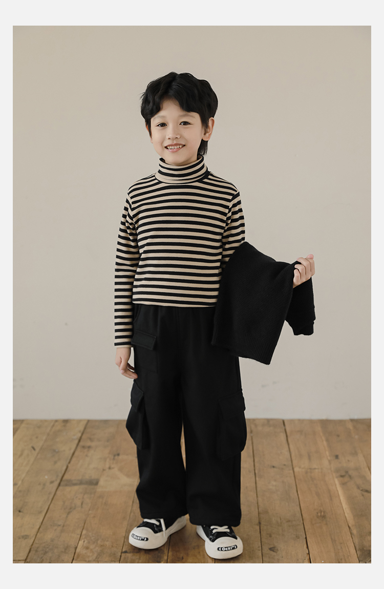 • 터틀넥 밑단 셔츠 카키 블랙 스트라이프 LQ0027