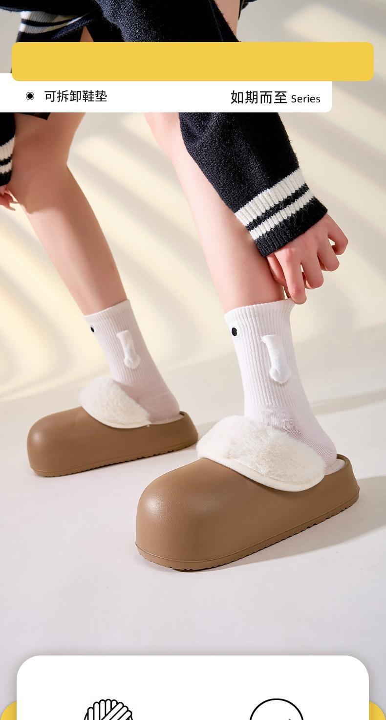 기모 홀 신발 여성 의상 겨울 2024 새로운 두꺼운 솔 증가 따뜻한 분리 가능한 봉제 면 슬리퍼 겨울