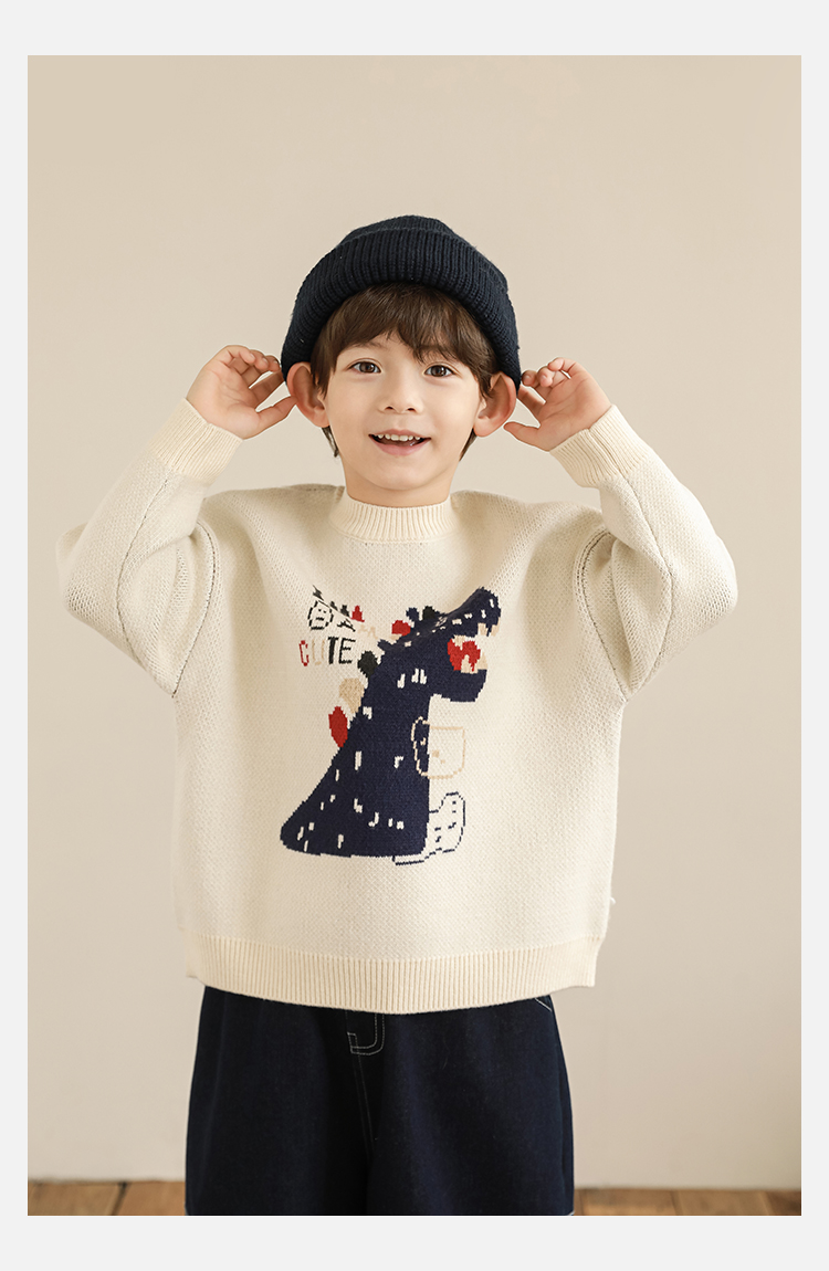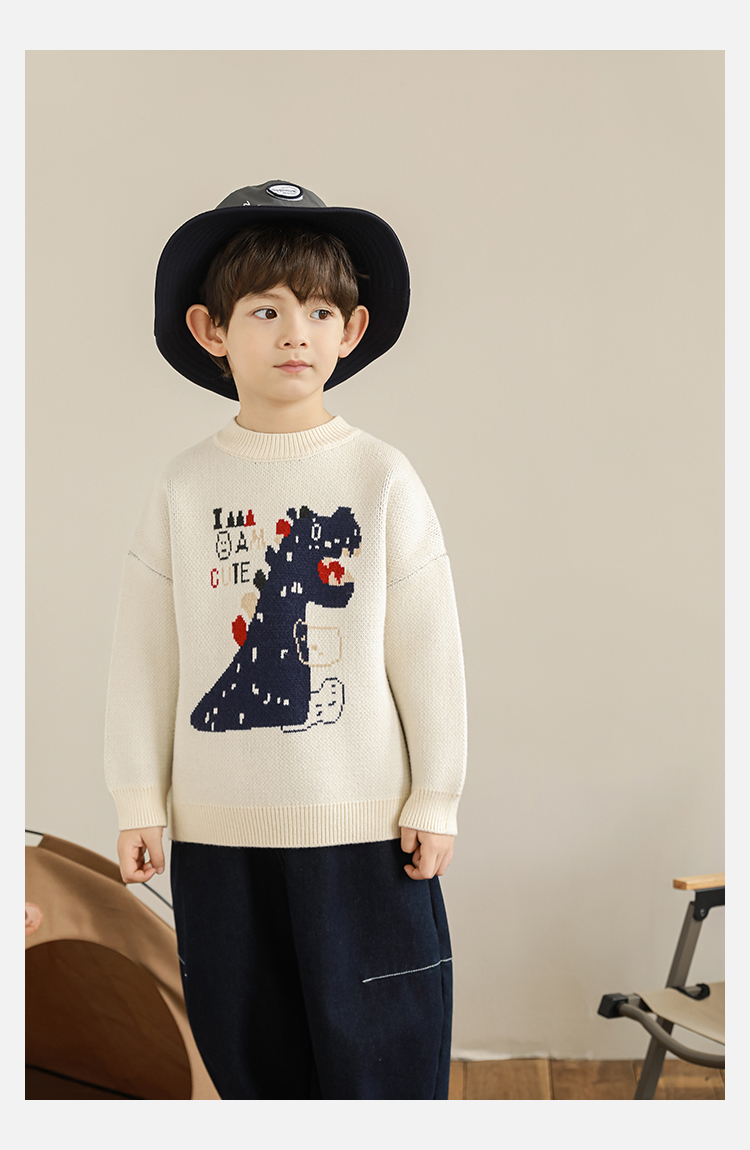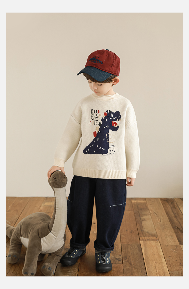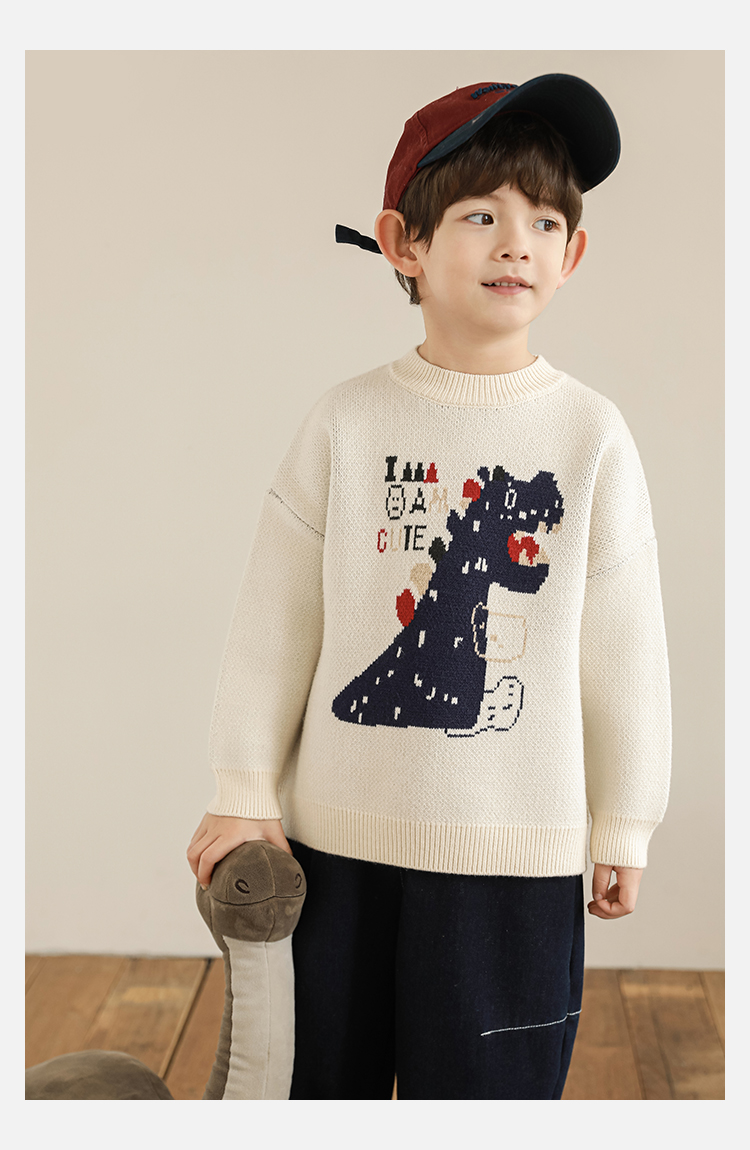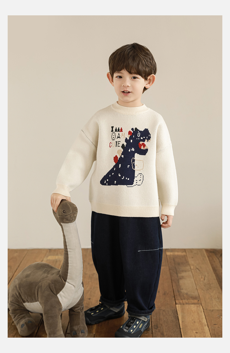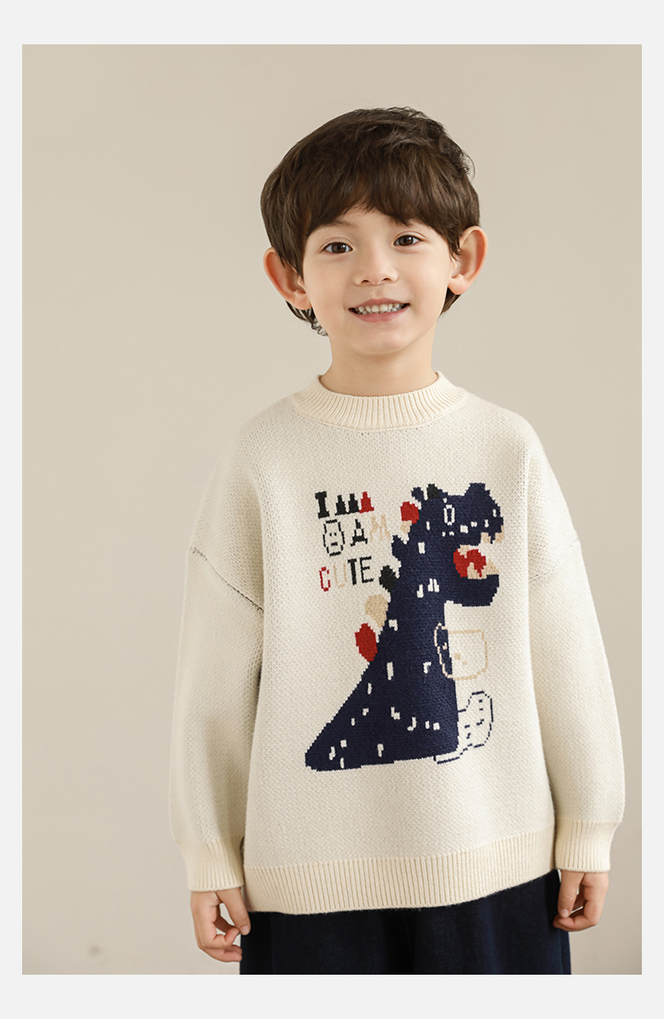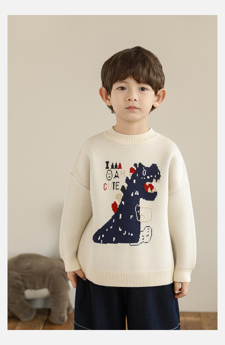 우리부이 남아용 2025 신상 긴팔 공룡 반터틀넥 스웨터 겨울 유행 아동용 따뜻한 니트웨어