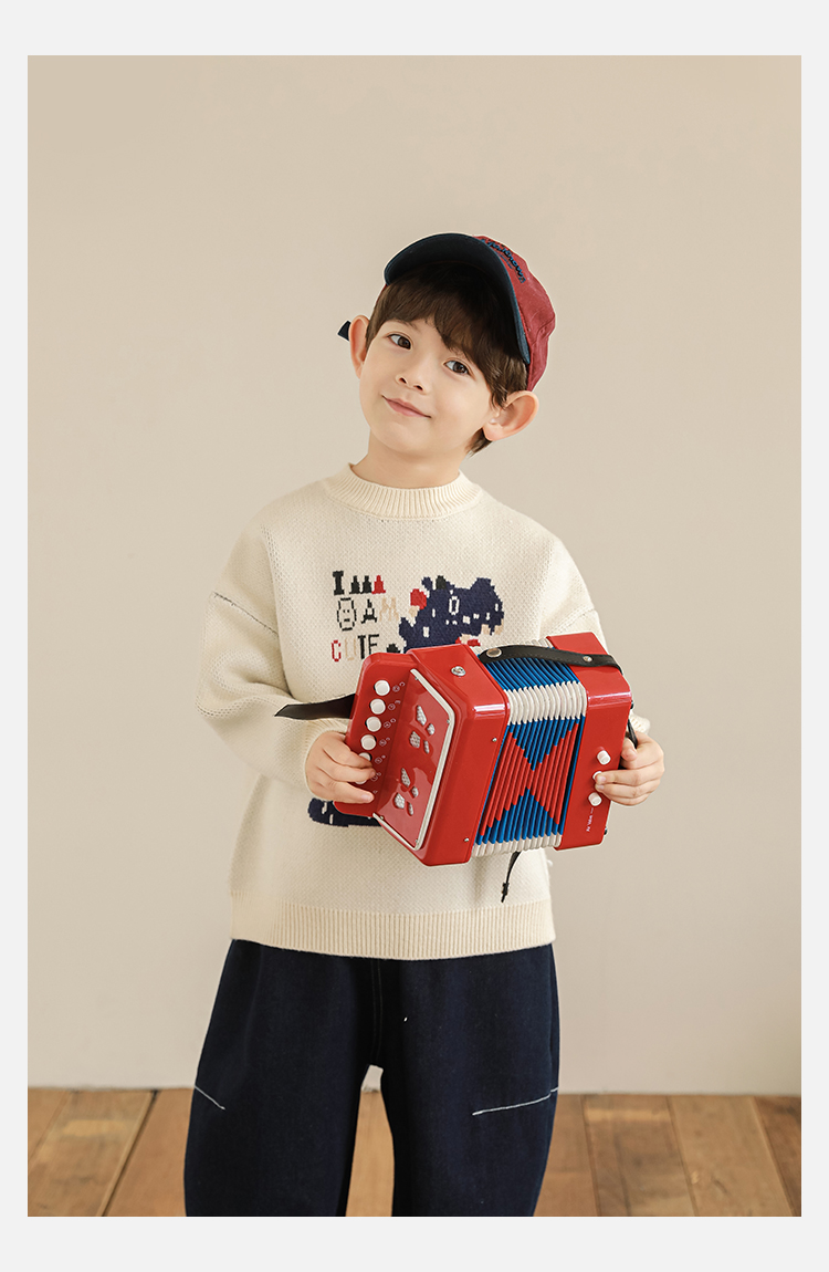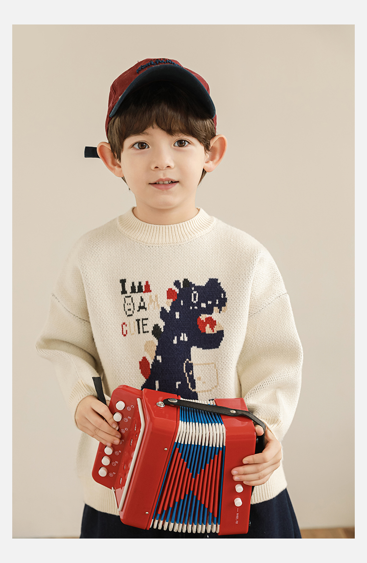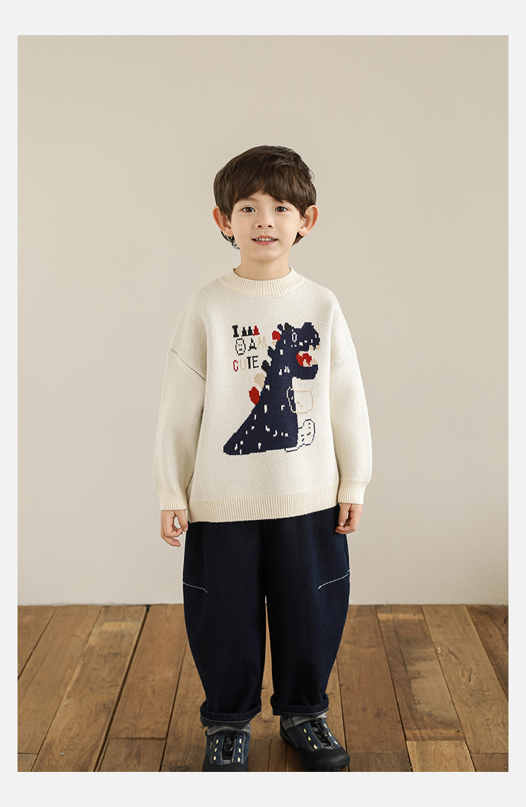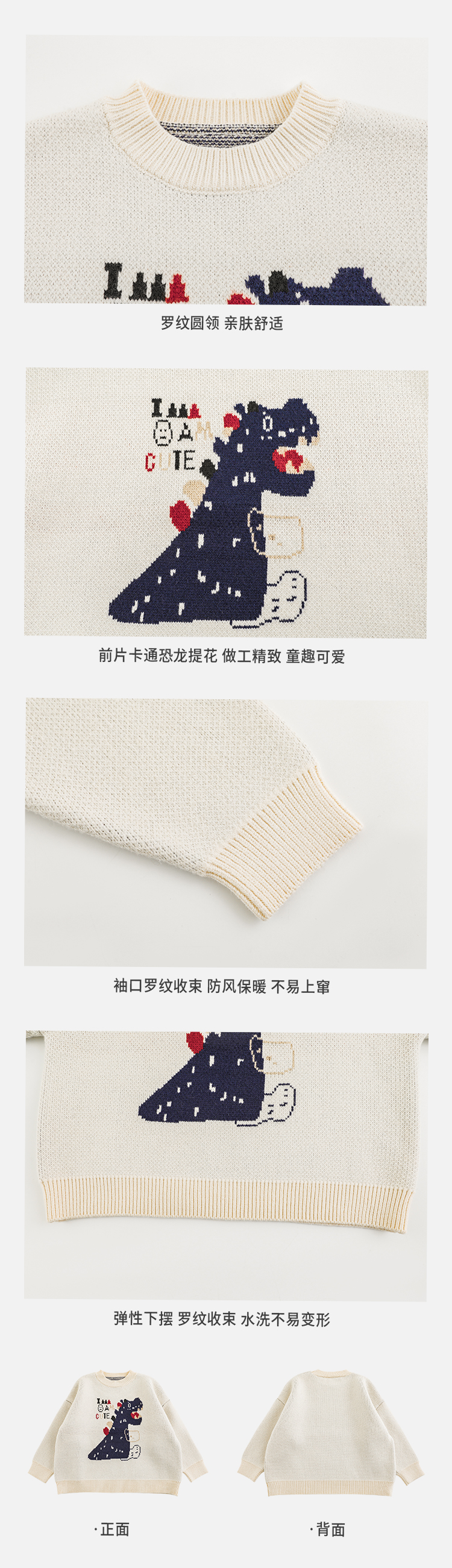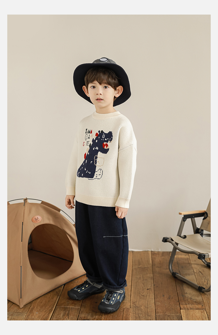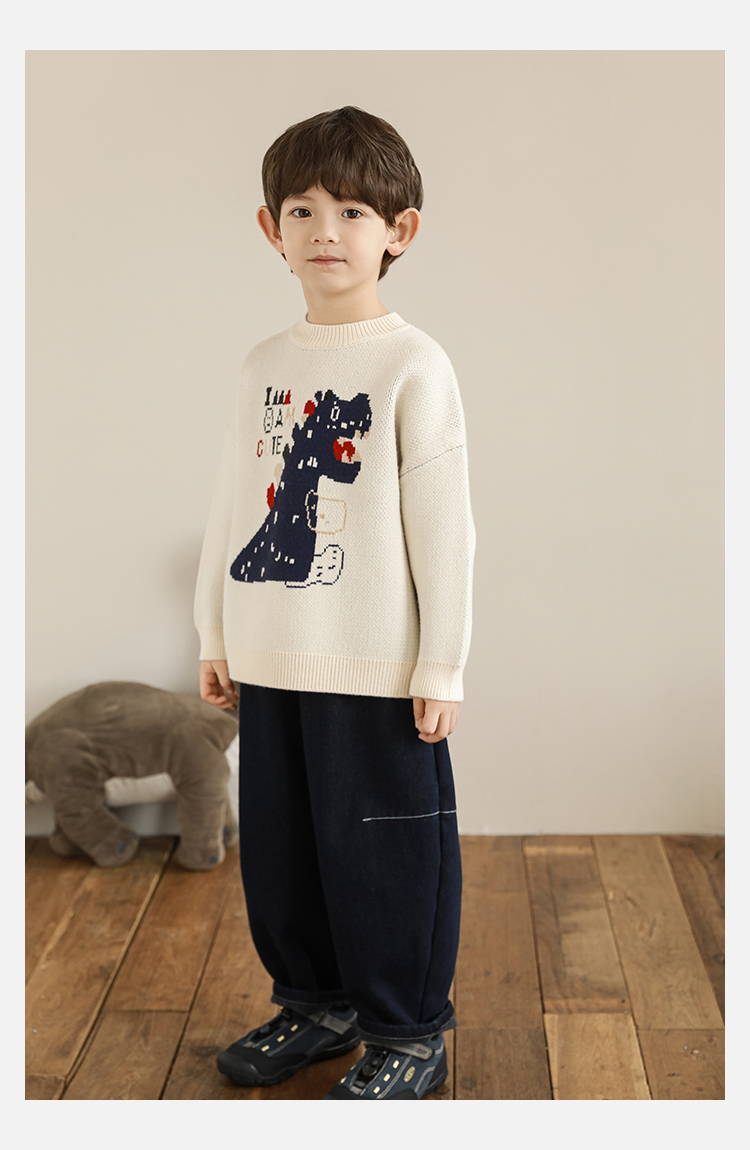 우리부이 남아용 2025 신상 긴팔 공룡 반터틀넥 스웨터 겨울 유행 아동용 따뜻한 니트웨어