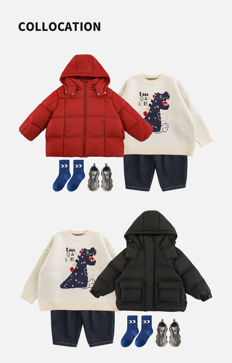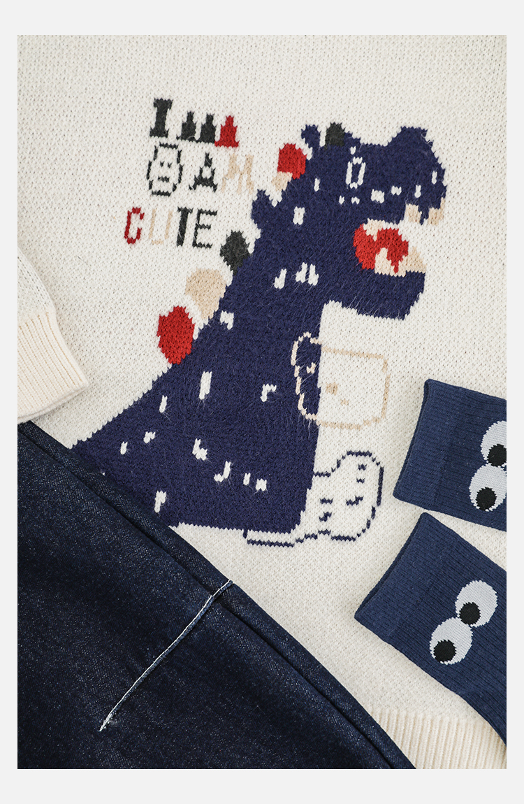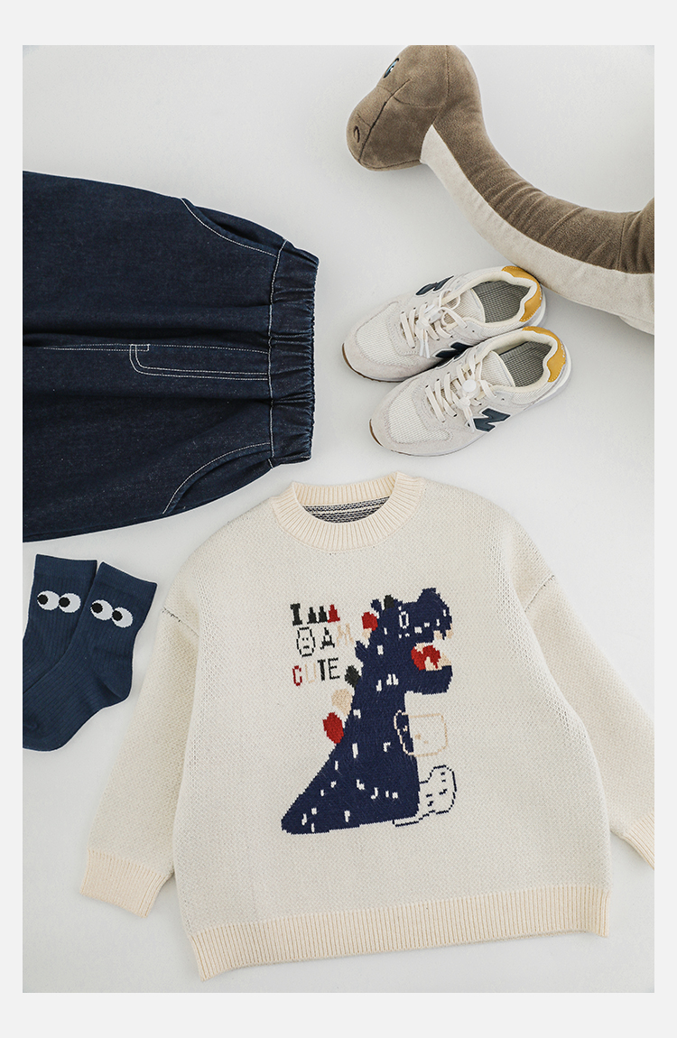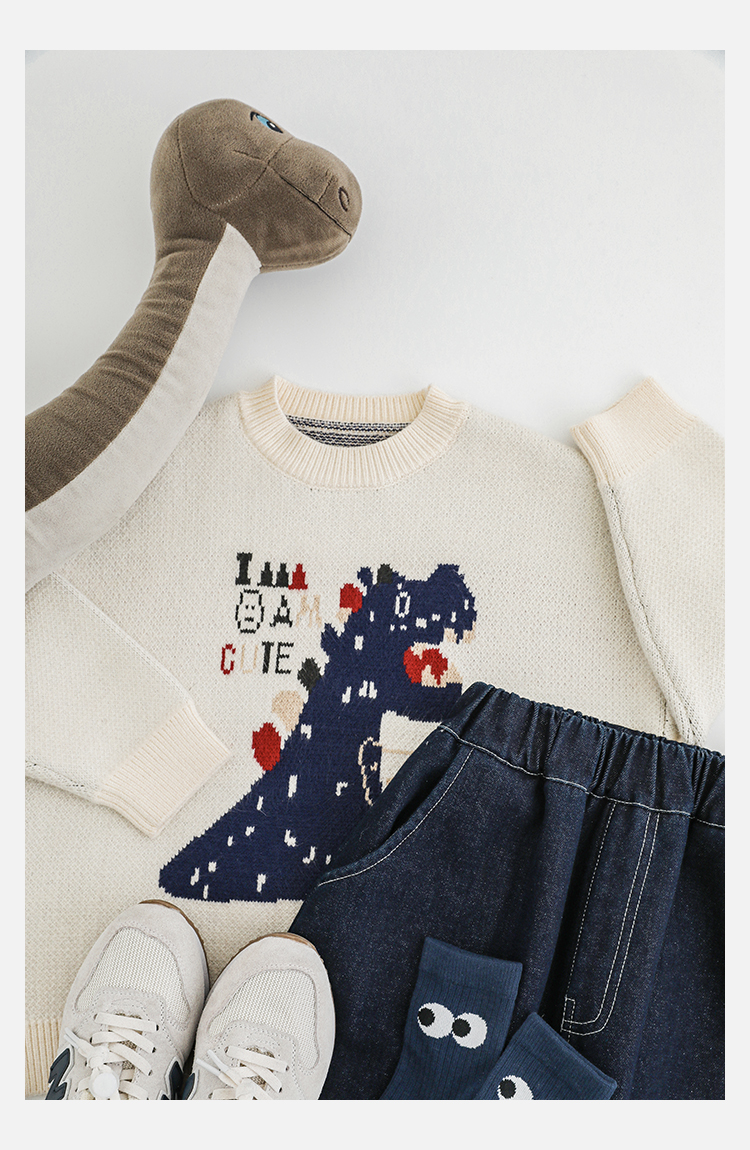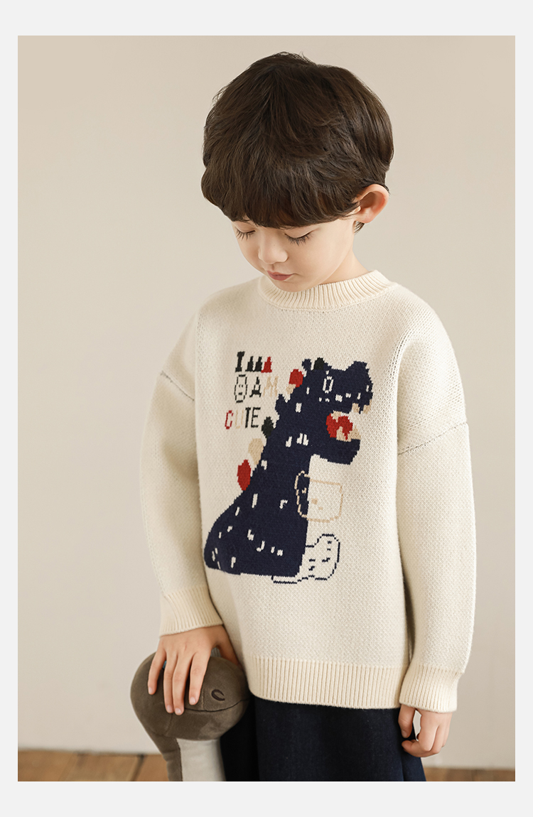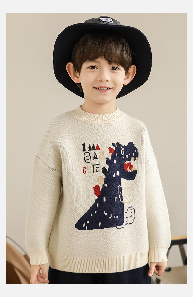 우리부이 남아용 2025 신상 긴팔 공룡 반터틀넥 스웨터 겨울 유행 아동용 따뜻한 니트웨어스토어 가기
