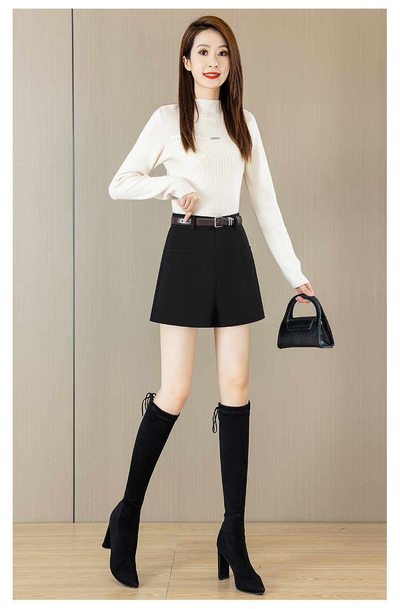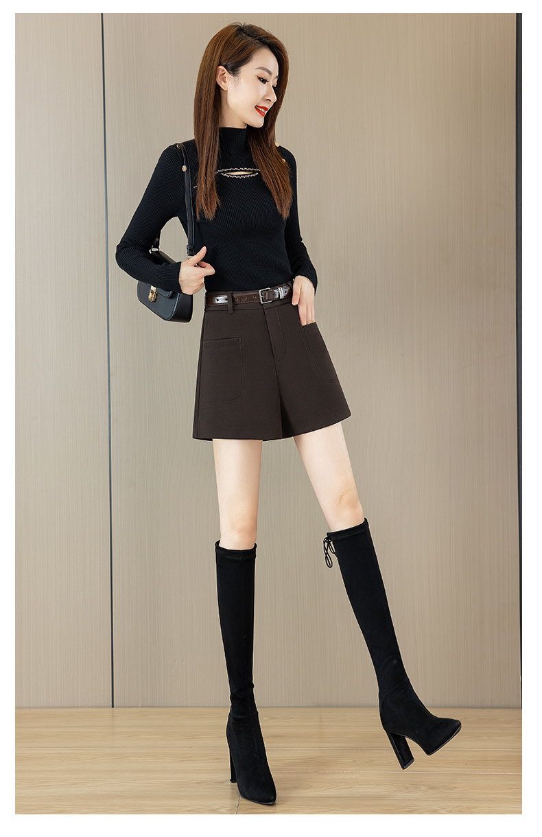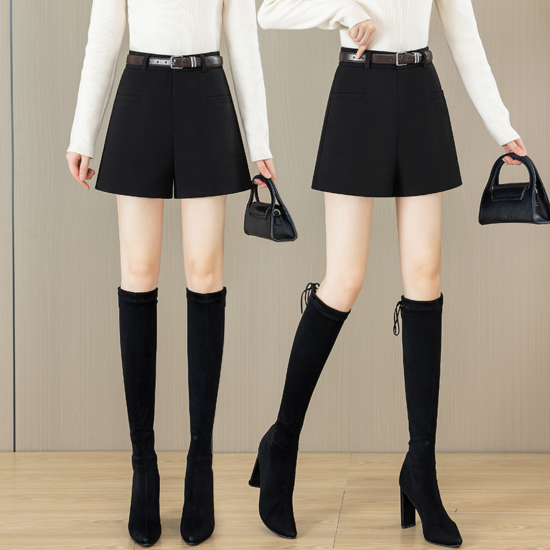 가을과 겨울 반바지 여성용 모직 바지 2024 새로운 두꺼운 캐주얼 와이드 레그 부츠 바지 버전