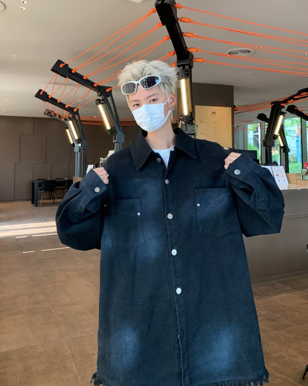 가을 2024 년 새 편지 인쇄 된 술 프린지 파괴 데님 셔츠 재킷 남성과 여성의 느슨한 재킷스토어 가기