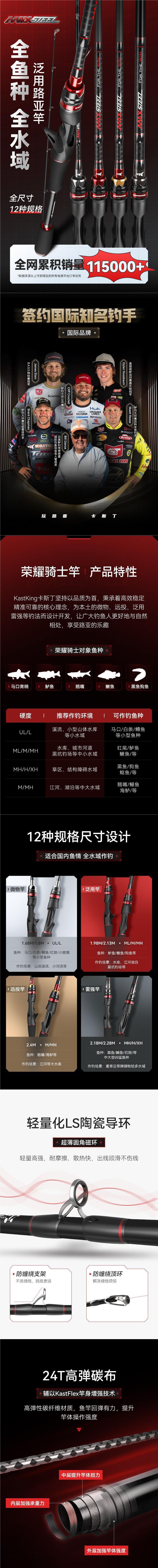 KastKing Luya Rod Single Rod ul Horse Mouth Rod Remote Throat Straight Handle Gun Handle Coil Rod Thunder Strong Black Fishing Rod Sea Rod
