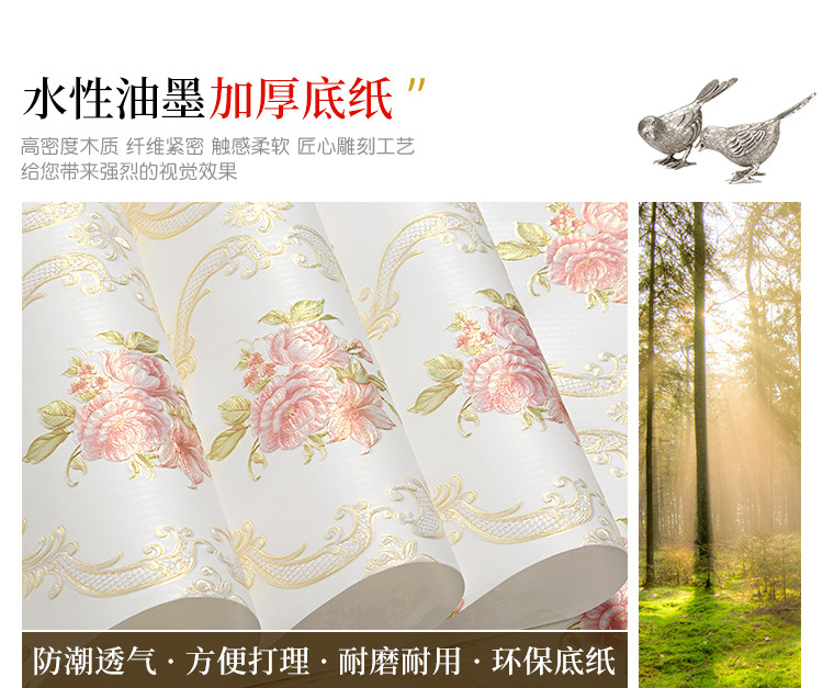 유럽식 3 차원 목가적 인 꽃 침실 거실 웨딩 룸 부직포 벽지 따뜻한 방 비 접착 홈 벽지스토어 가기